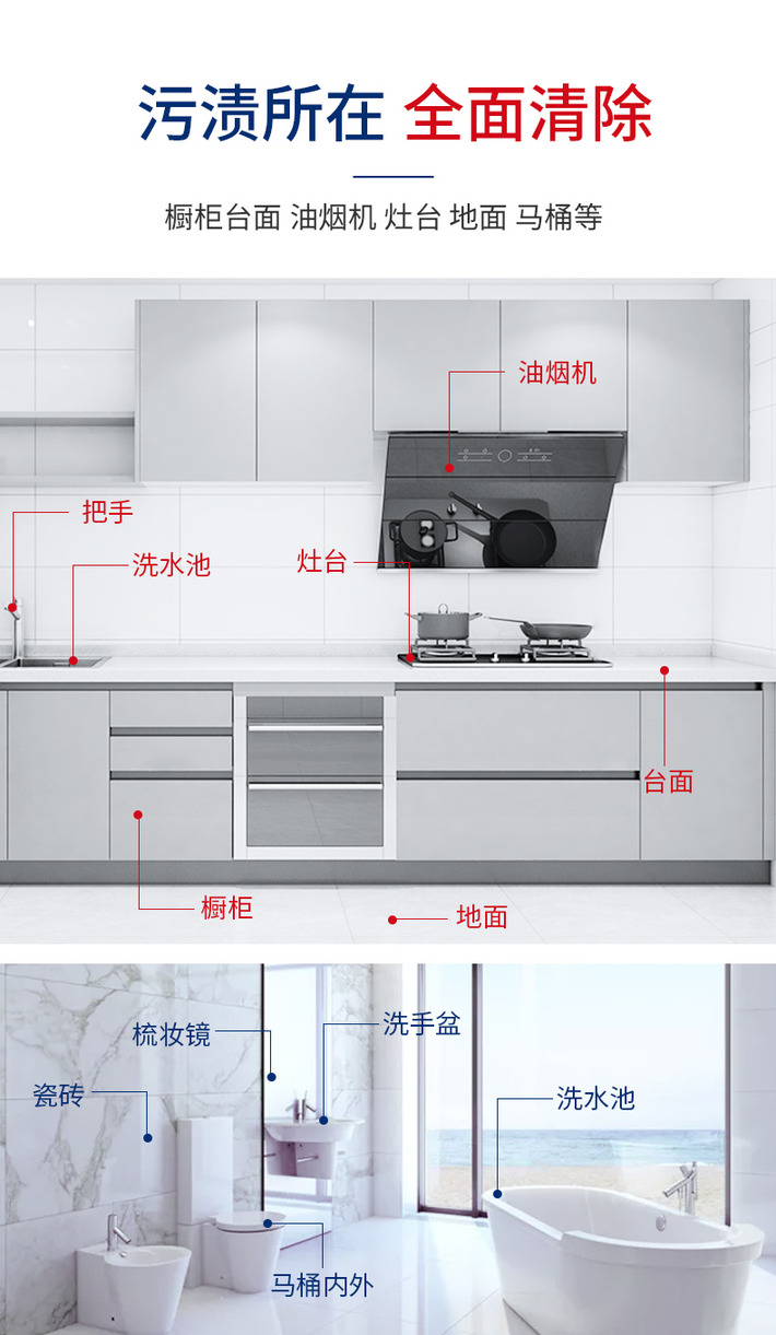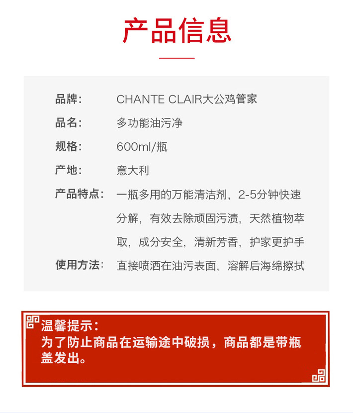 【2瓶装】大公鸡管家 多功能厨房重油污清洁剂小白鞋清洁喷雾600ml/瓶