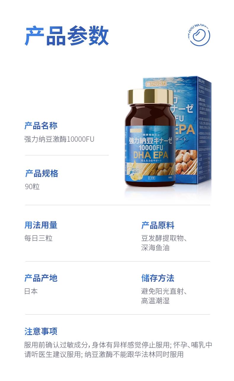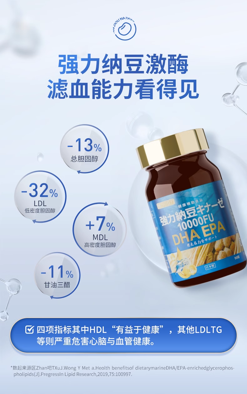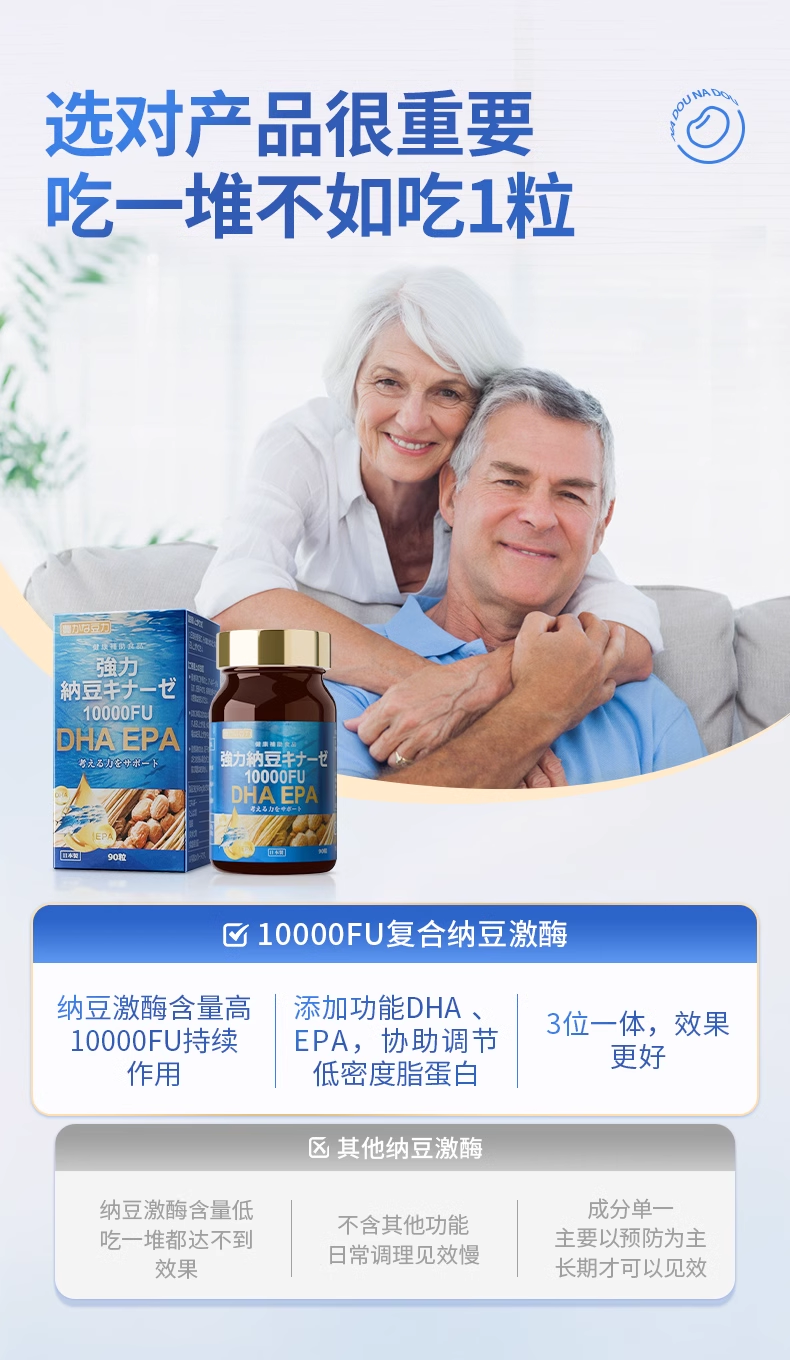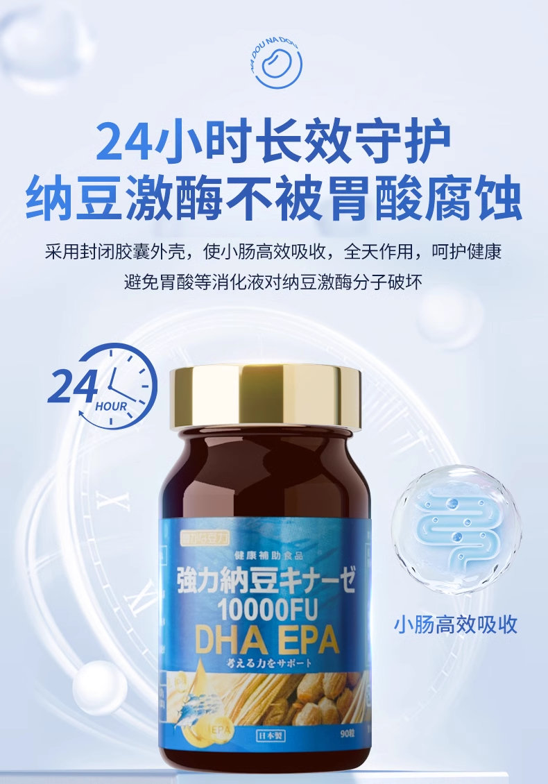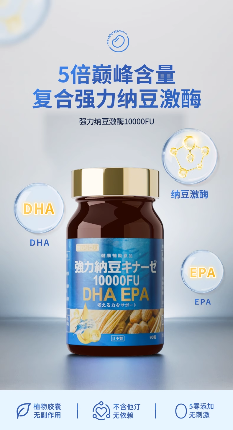 nattokinaze 丰富的豆力 10000FU+DHA EPA强力纳豆 90粒/瓶