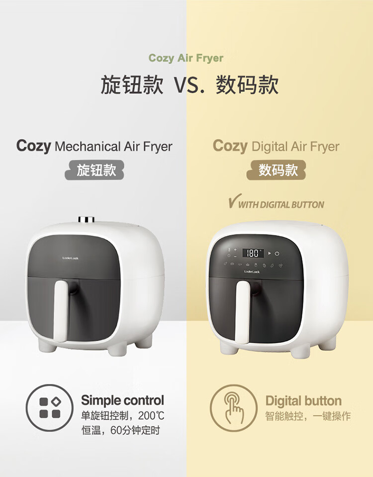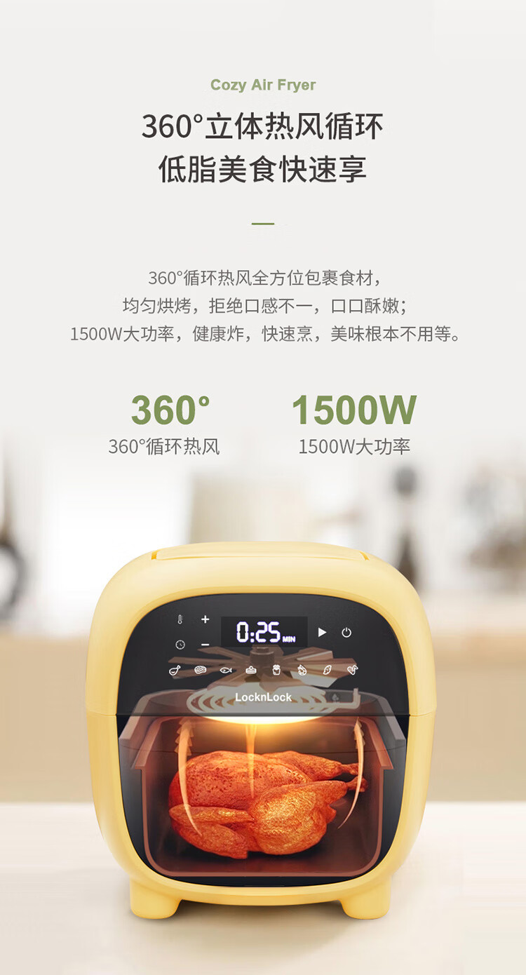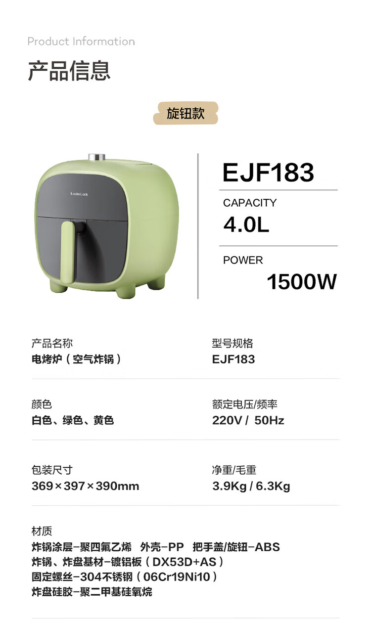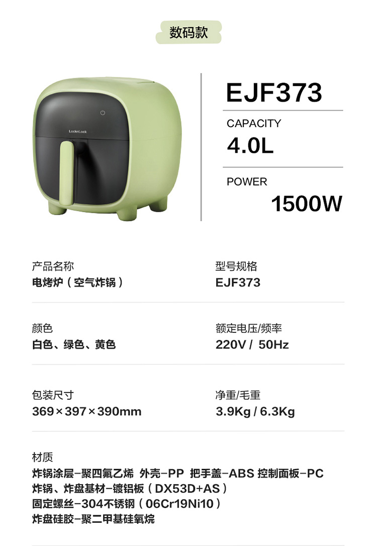Lock&Lock乐扣乐扣空气炸锅家用4升大容量EJF183旋钮款/EJF373数码款