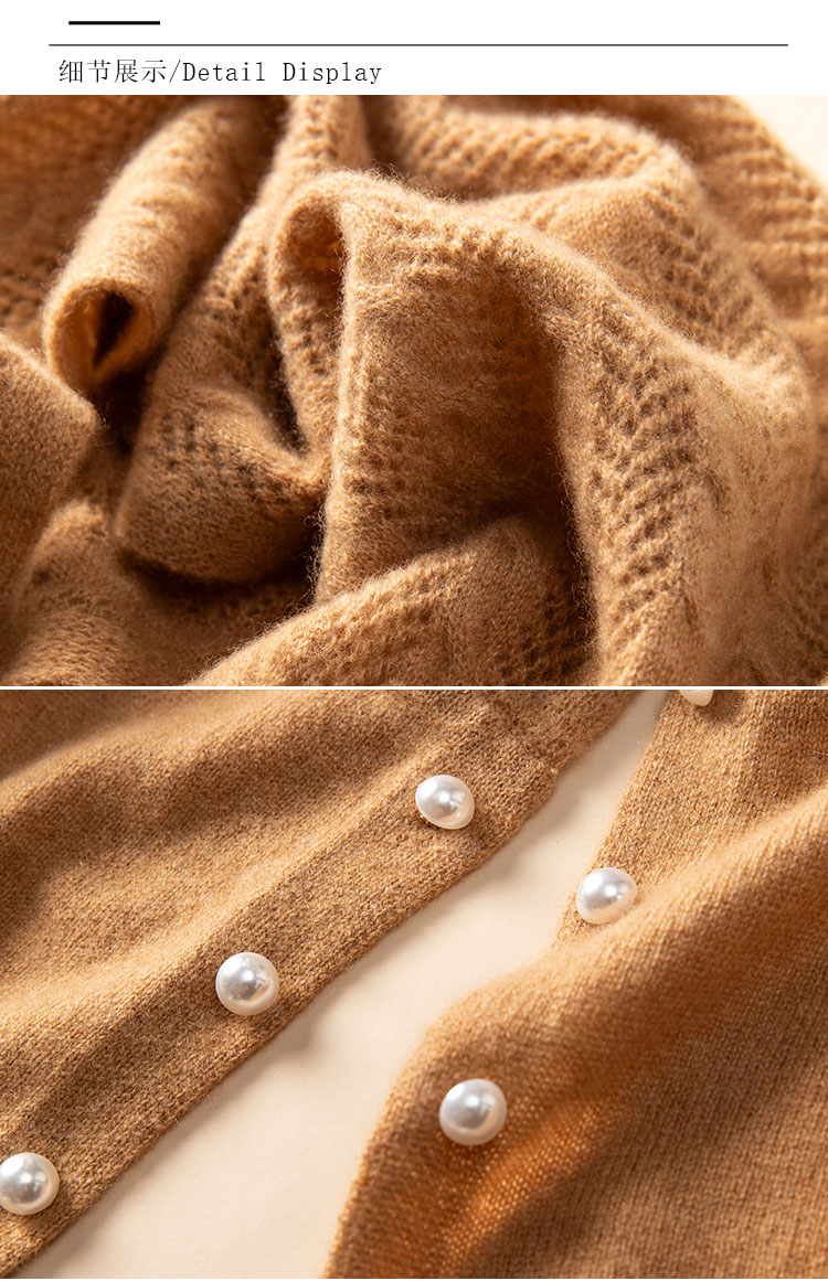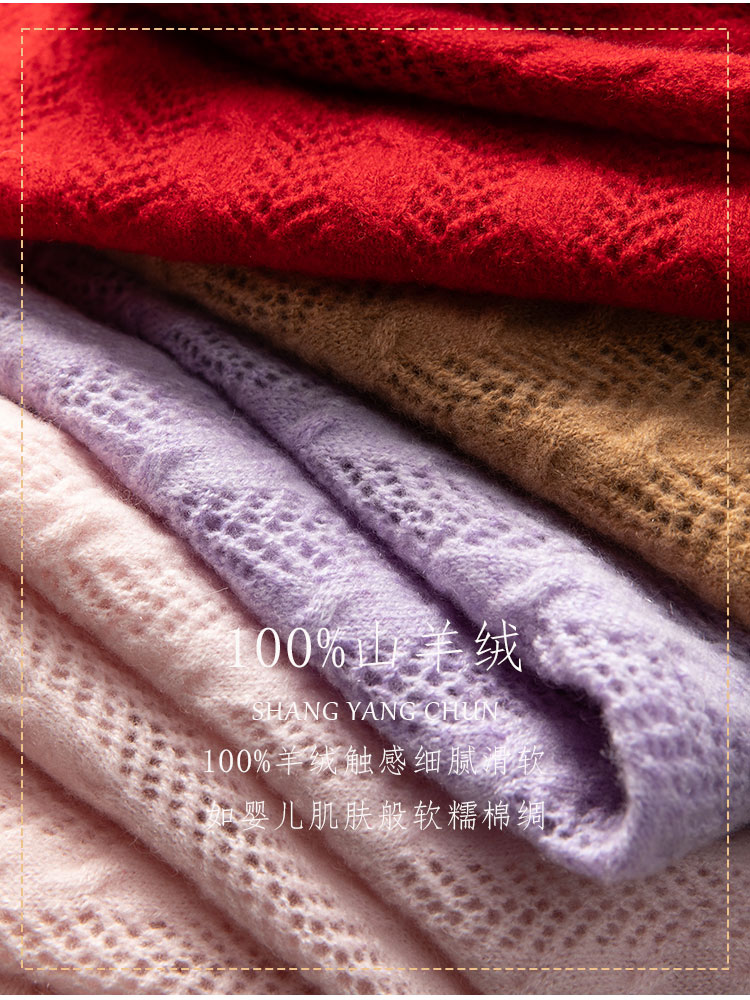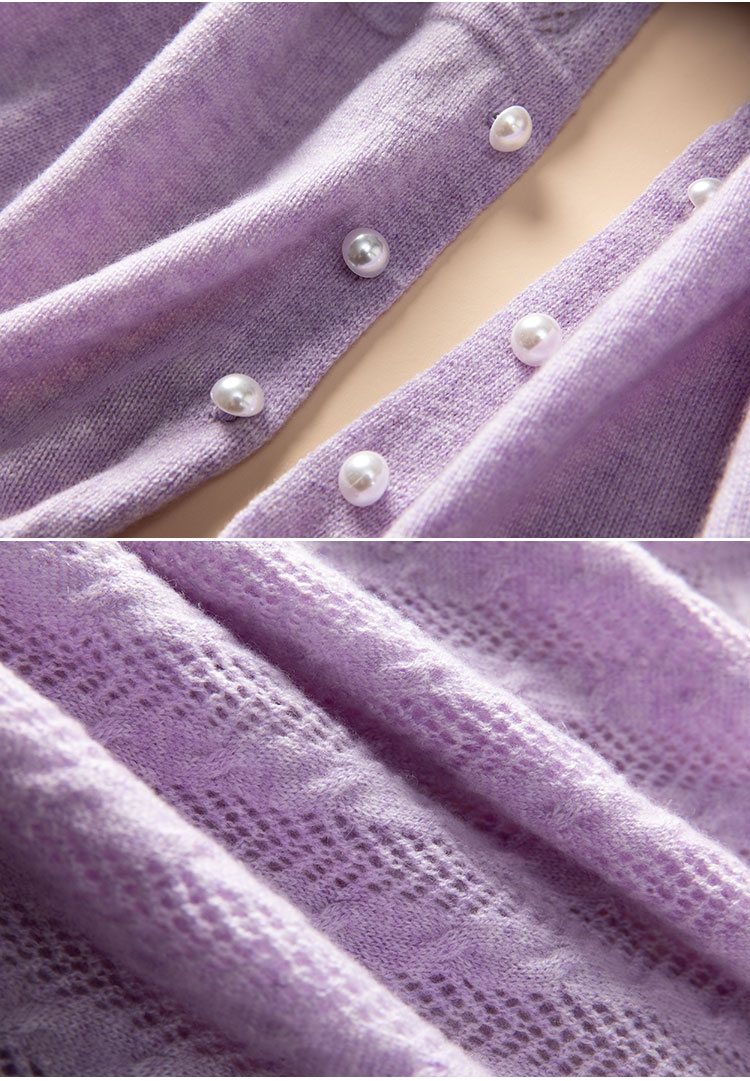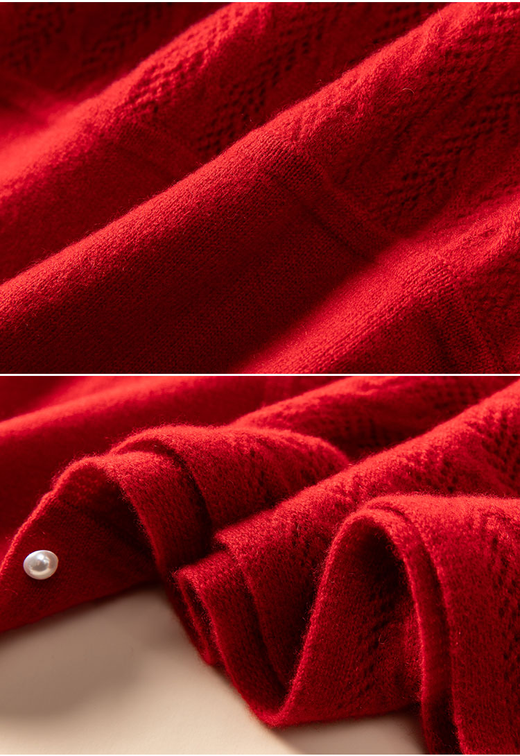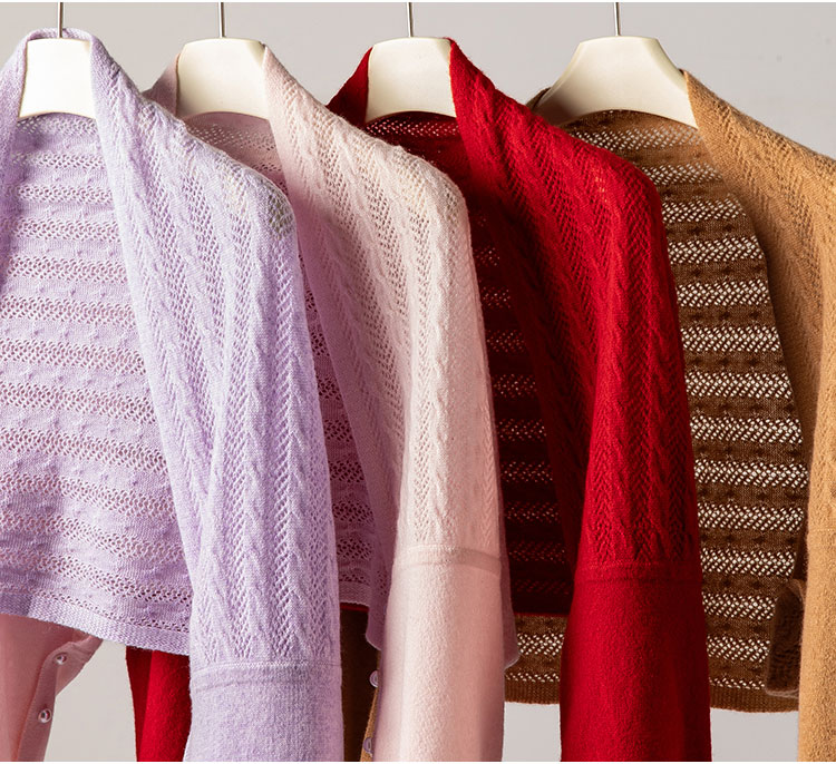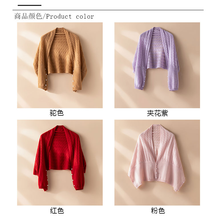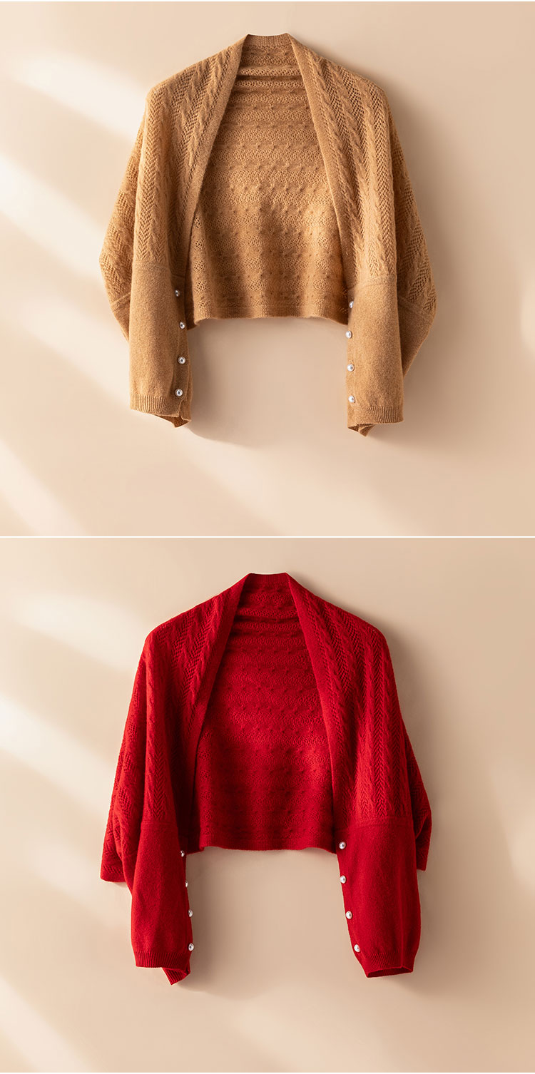 时刻优雅~100纯山羊绒披肩围巾两用镂空珍珠扣针织开衫女CYR25143