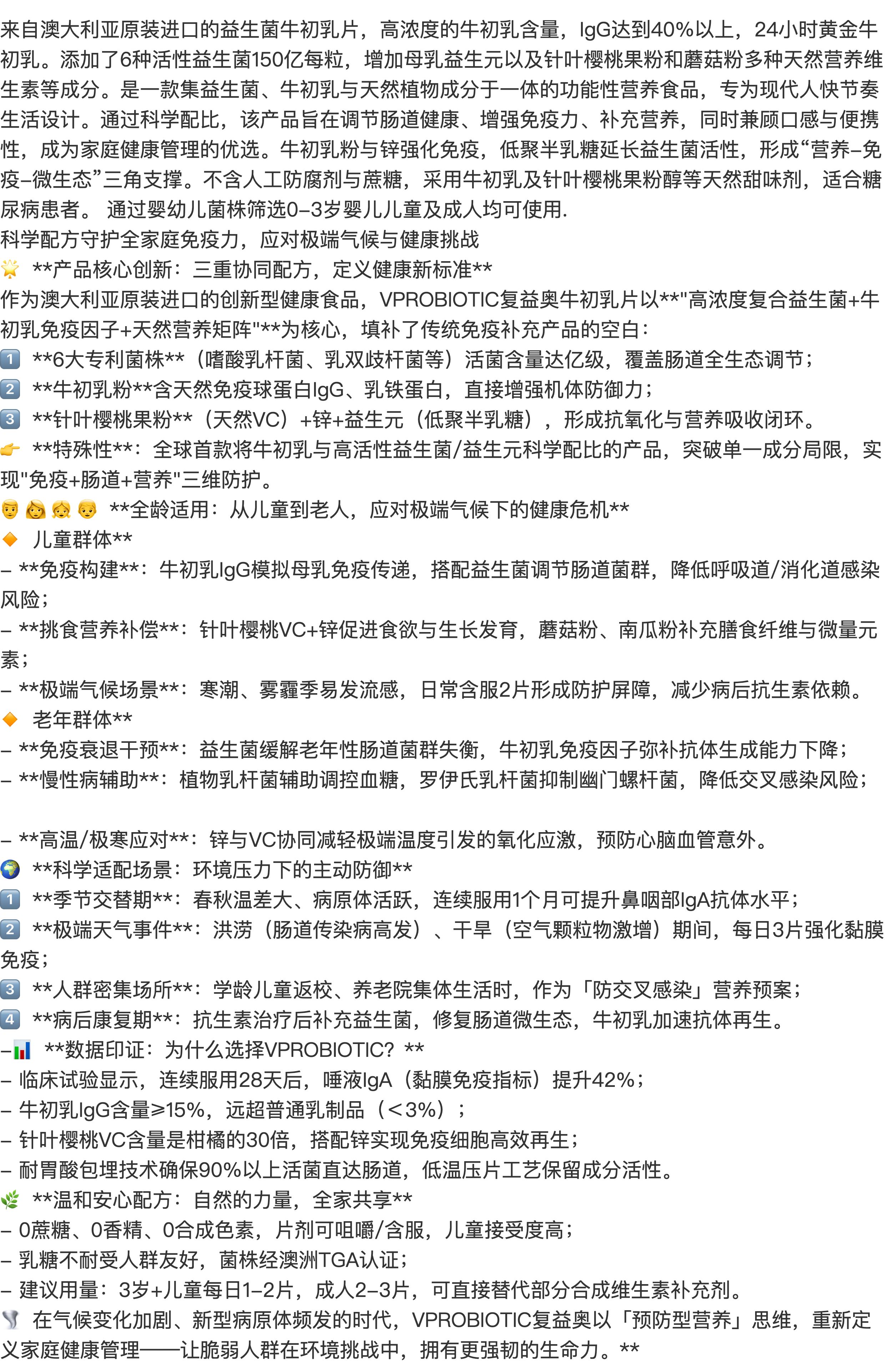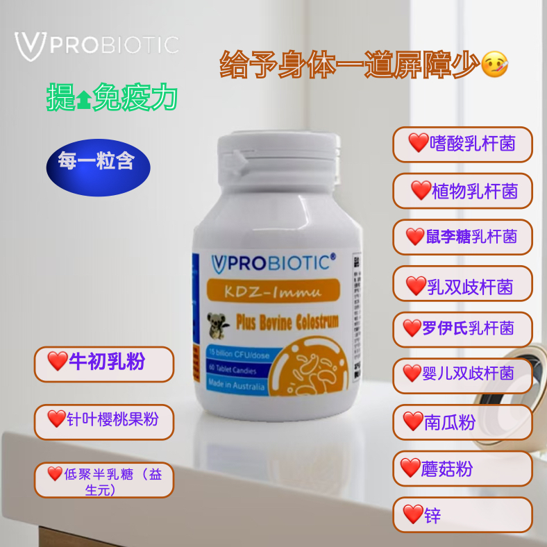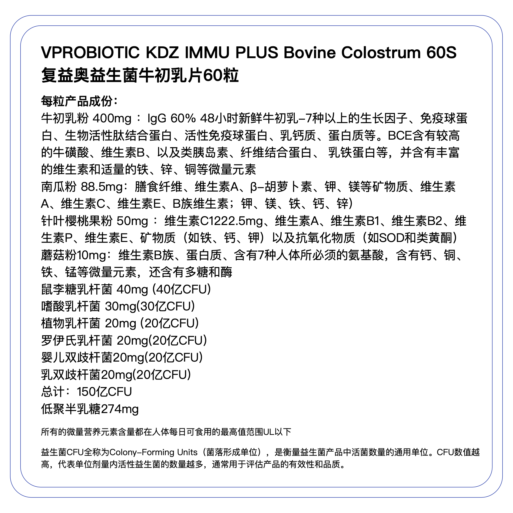 【礼想心动】【买一送一】VPROBIOTIC 复益奥 益生菌牛初乳片压片糖果 60粒/瓶(不可用券,用券默认无赠品)