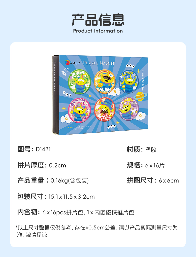 96片 磁铁塑料拼图 D1431 玩具总动员系列-三眼仔的比萨星球