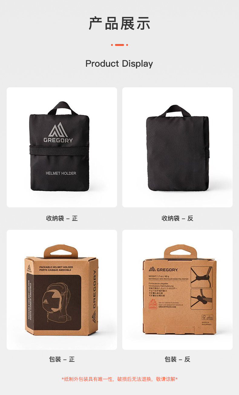 GREGORY格里高利Packable Helmet Holder可折叠骑行头盔支架网兜