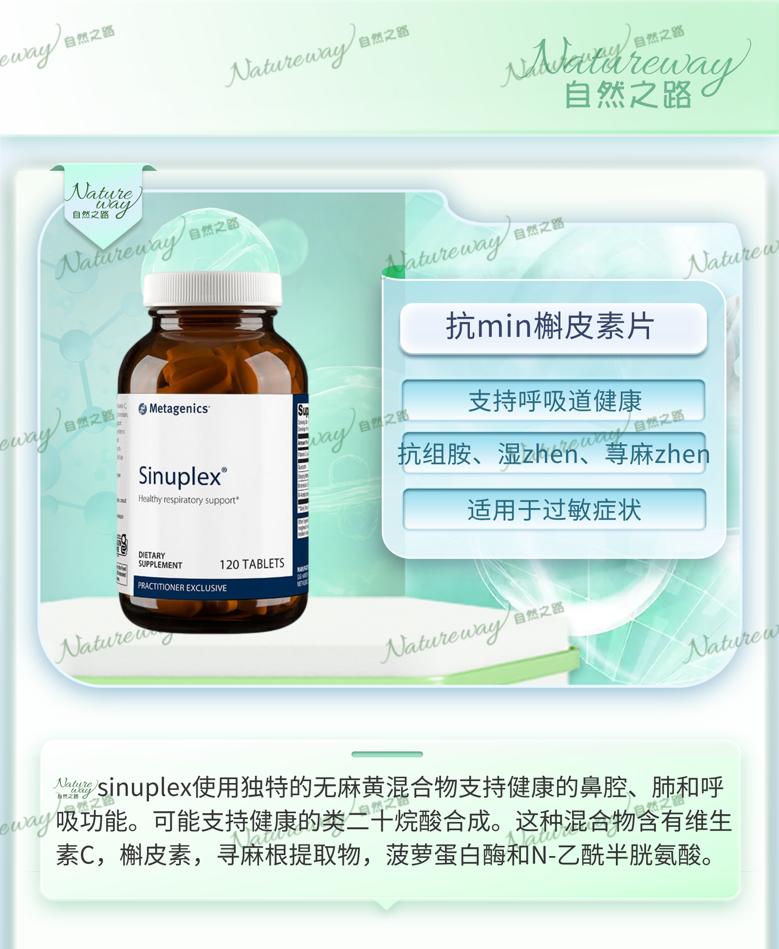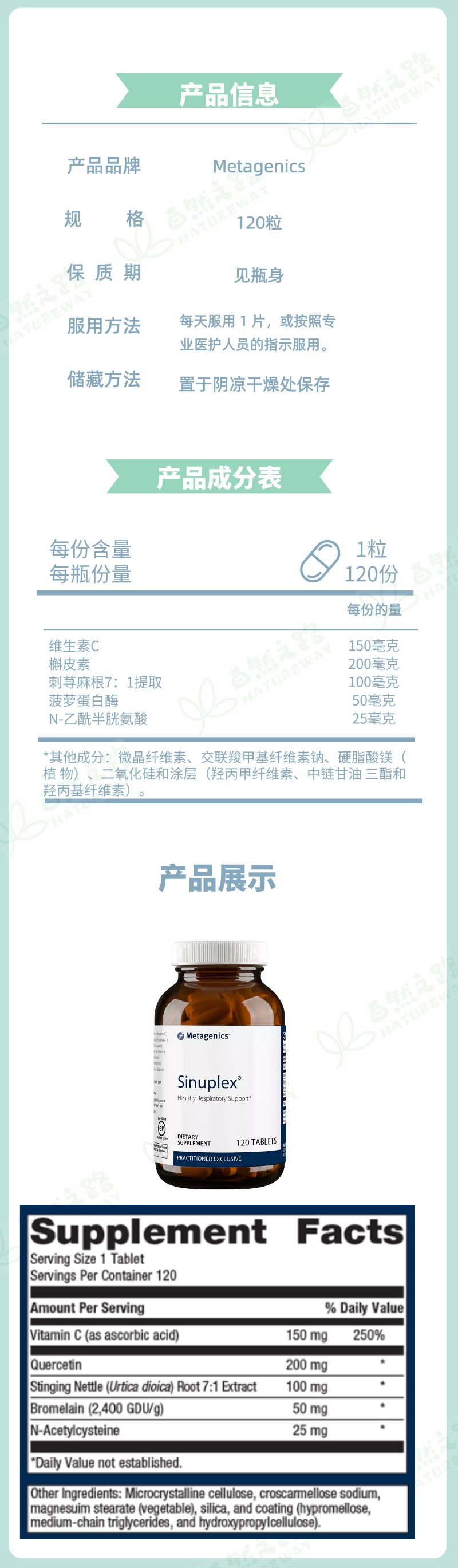 自然之路Metagenics槲皮素抗敏片Sinuplex支持健康呼吸道 120粒