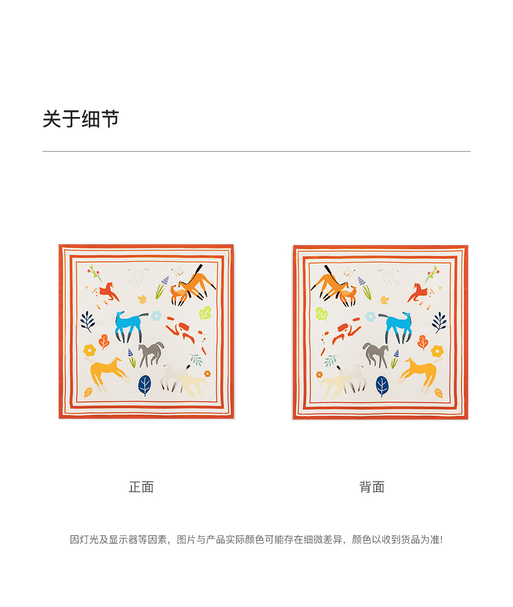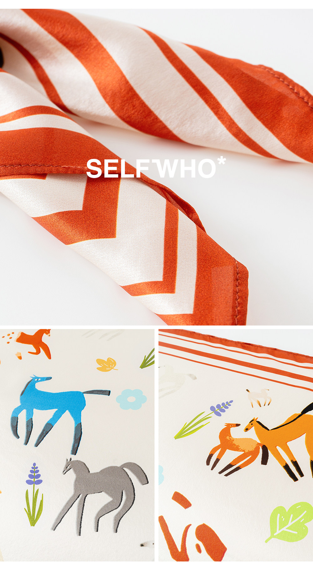 SELFWHO100%桑蚕丝童趣小马印花丝巾女2026春季新款真丝包包配饰
