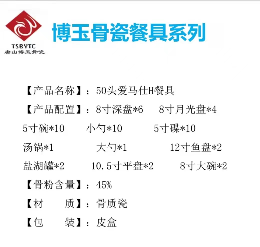 康巴赫生活馆博玉骨瓷餐具系列50头爱马仕H餐具