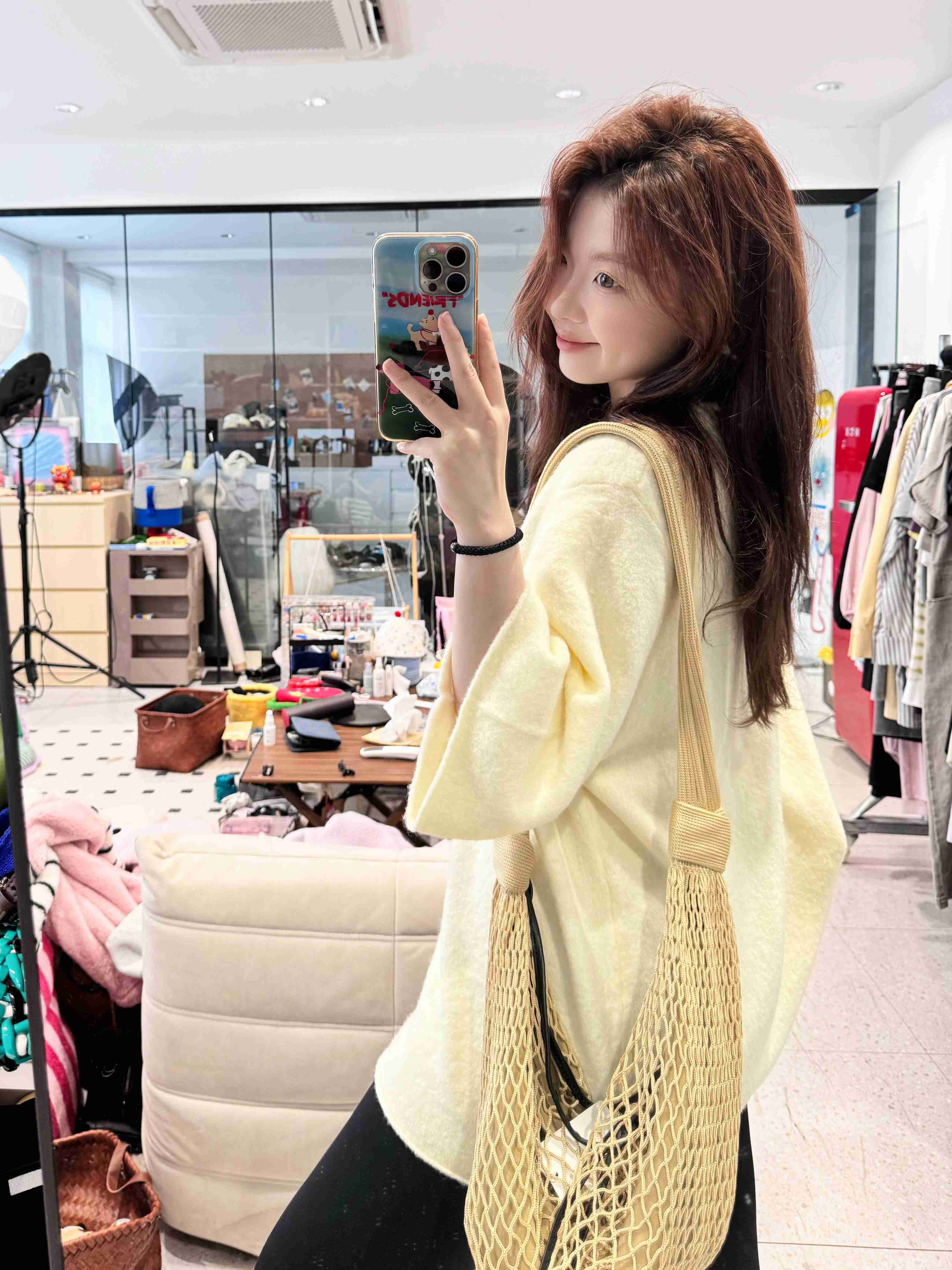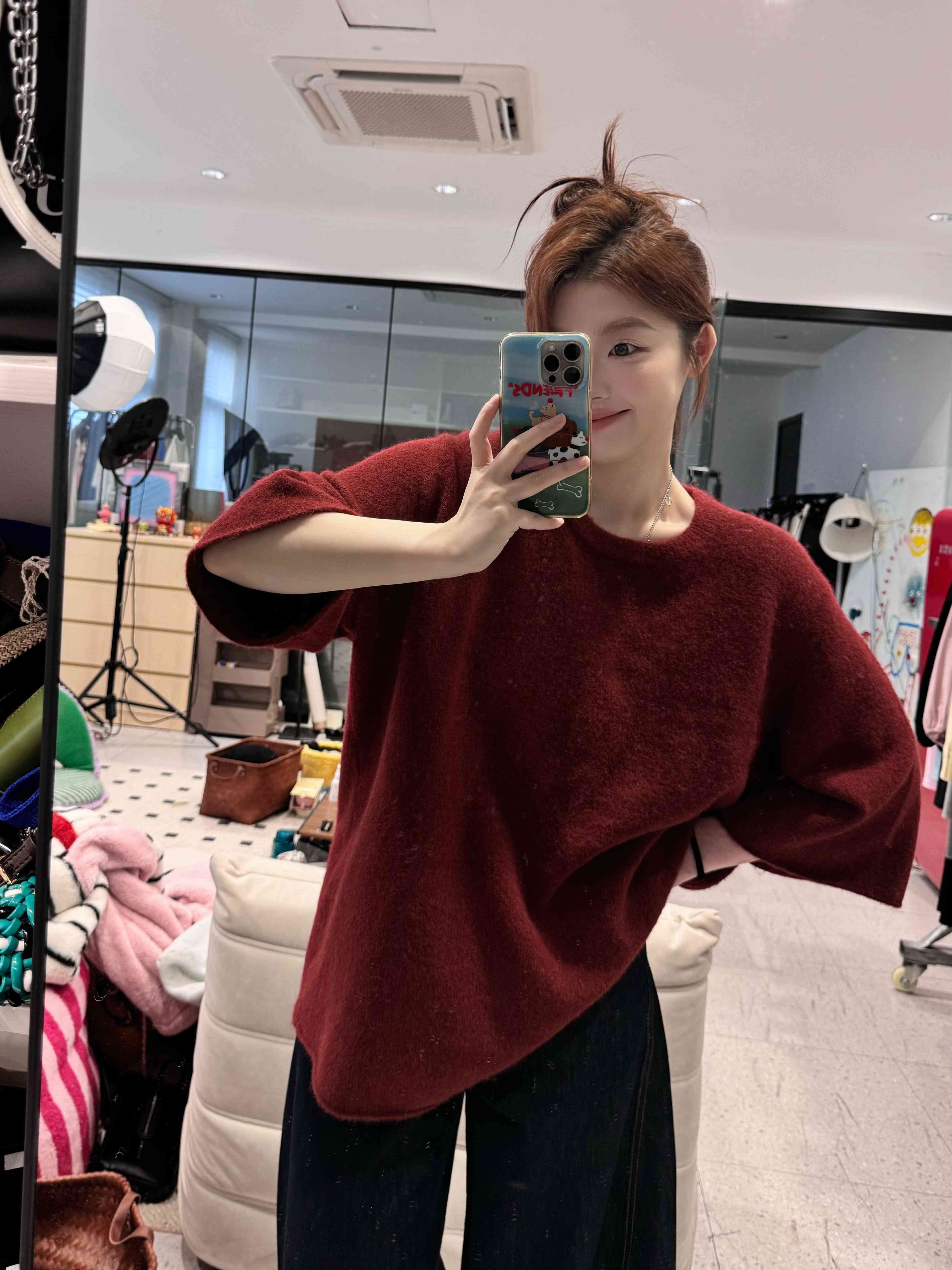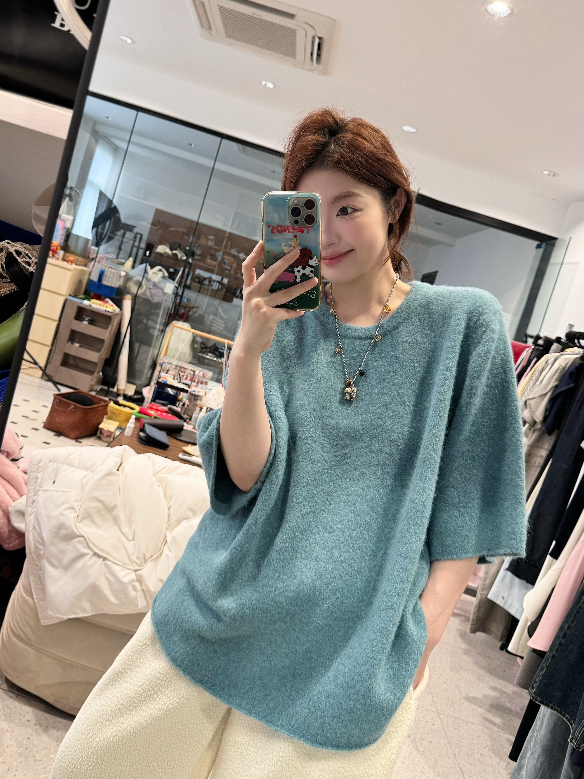 25AW上新【现货折上95折】 蕾蕾同款【慵懒自洽】韩版百搭亲肤圆领毛针织衫六分短袖上衣