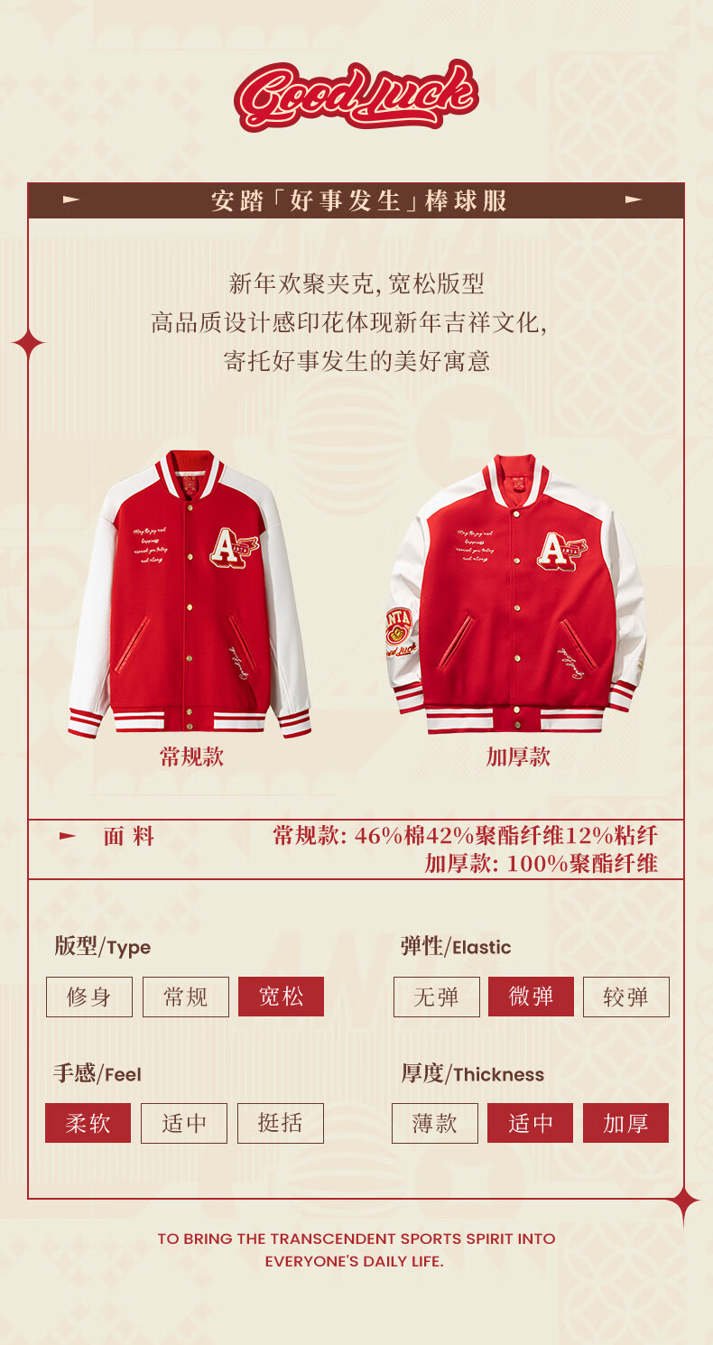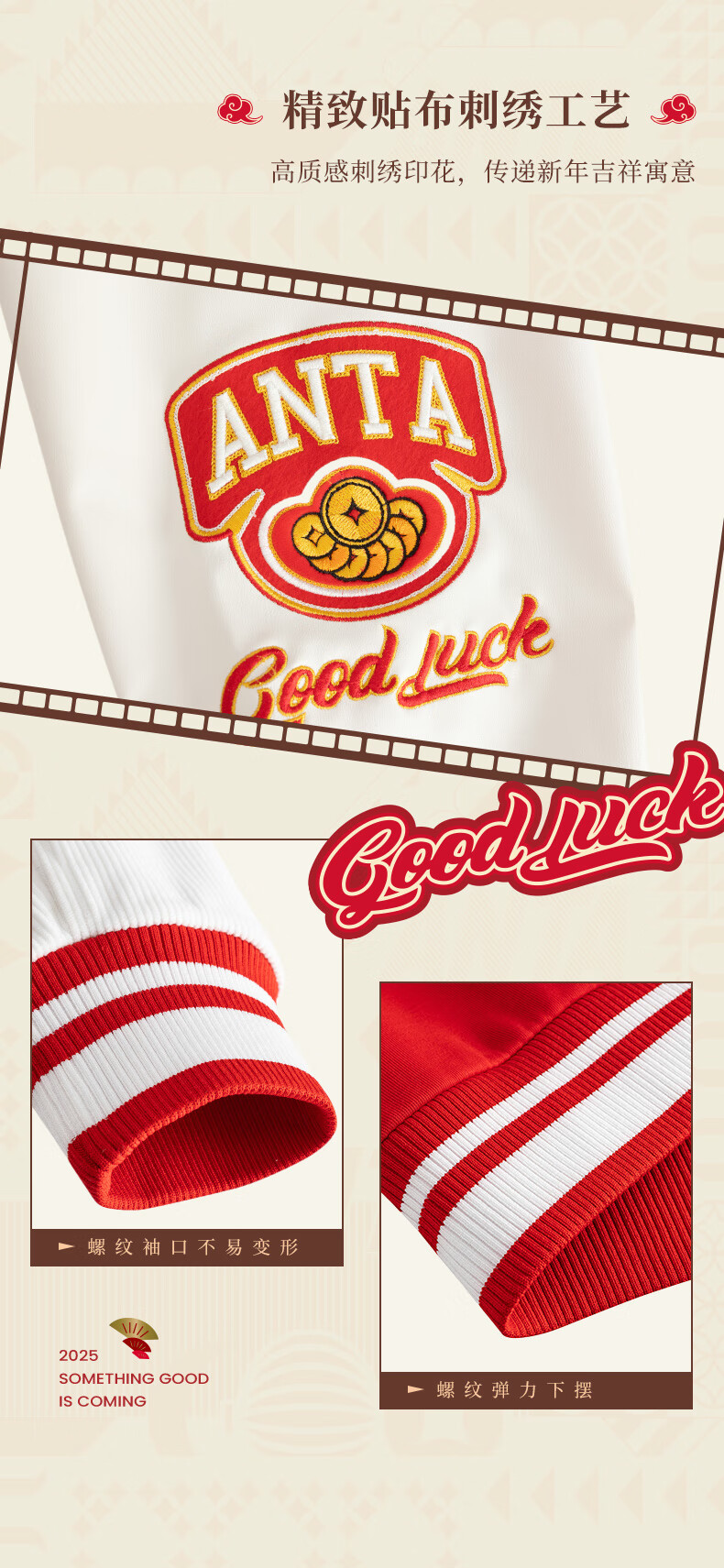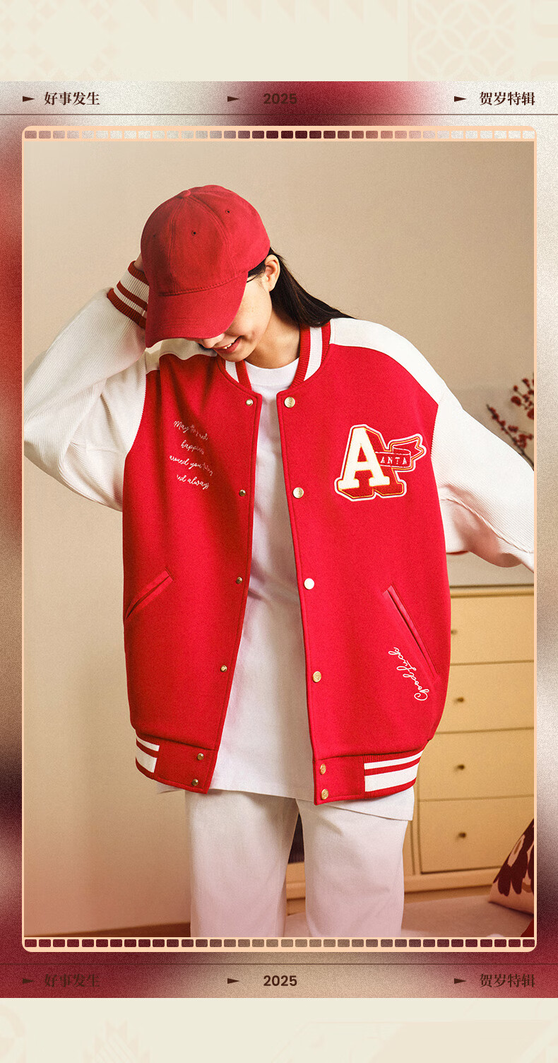 安踏(ANTA)樊振东同款丨好事发生新年款男女加绒棒球服冬潮流外套152518701N