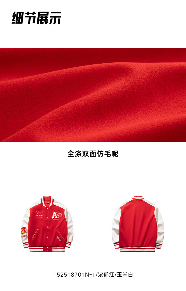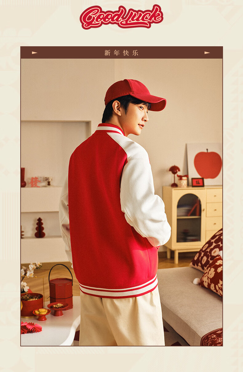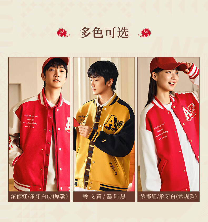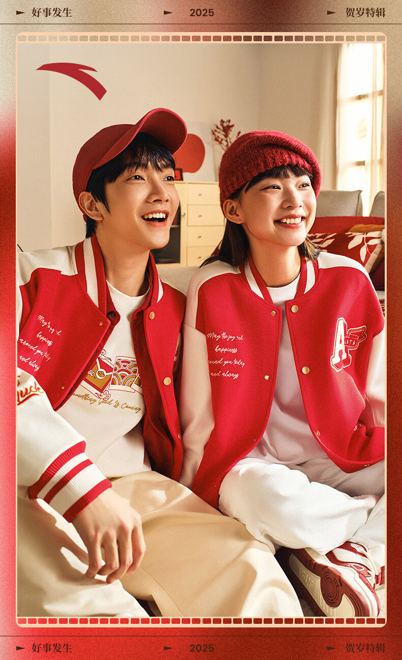 安踏(ANTA)樊振东同款丨好事发生新年款男女加绒棒球服冬潮流外套152518701N