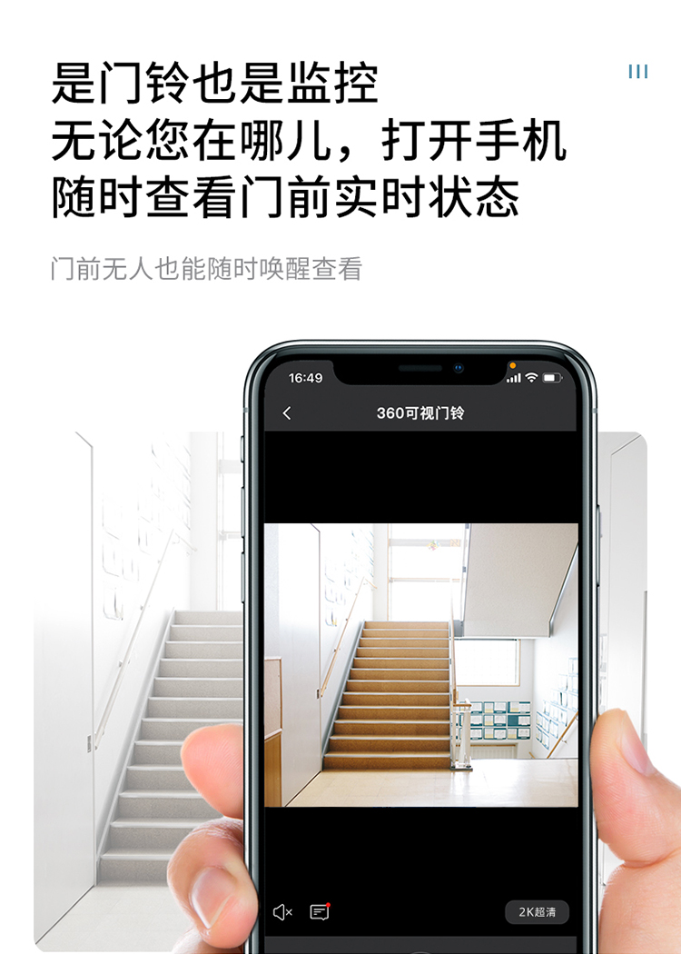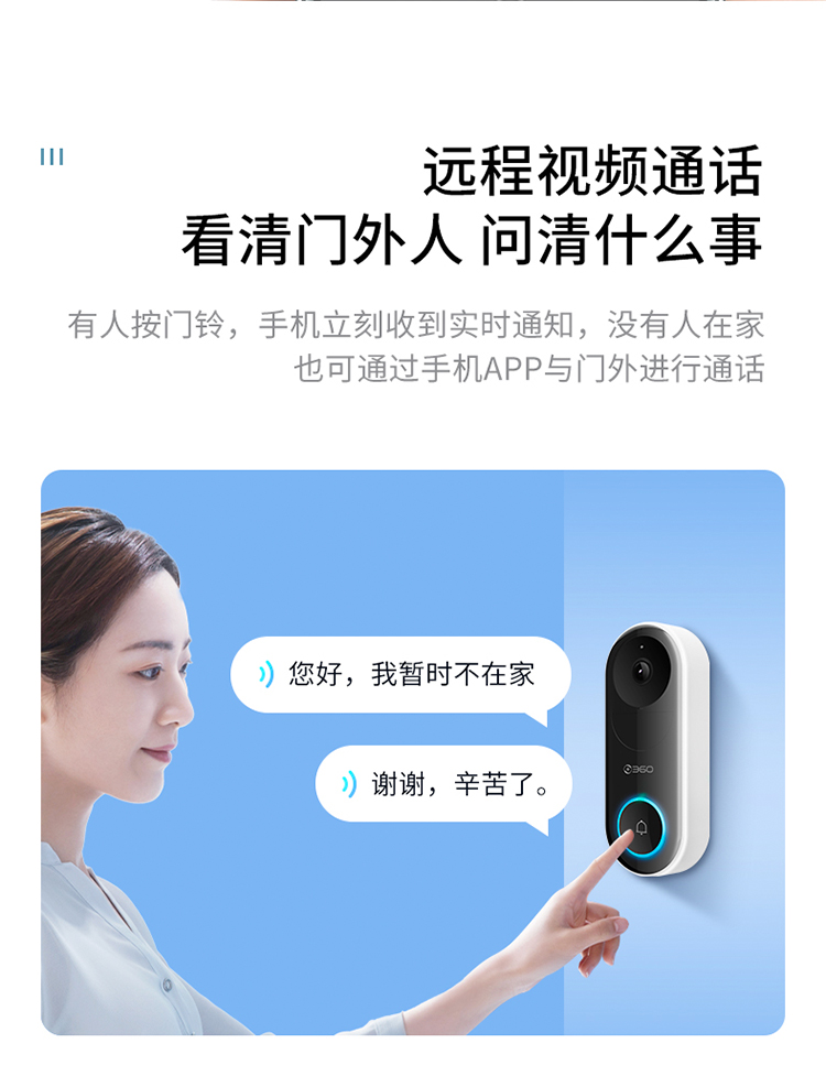 【专属】360 可视门铃5 Pro摄像头家用监控摄像头智能摄像机 2K智能门铃电子猫眼 无线wifi 300W超清夜视AR1C