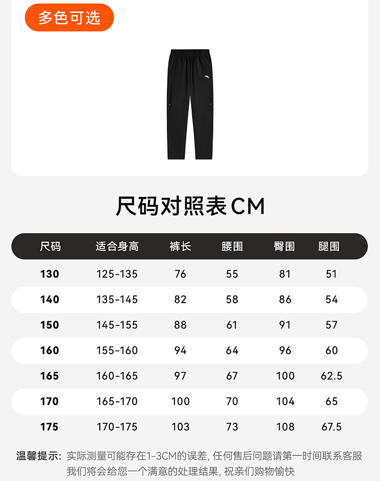 安踏儿童男大童运动长裤2025秋季新款透气舒适中大童速干运动裤子T52537501