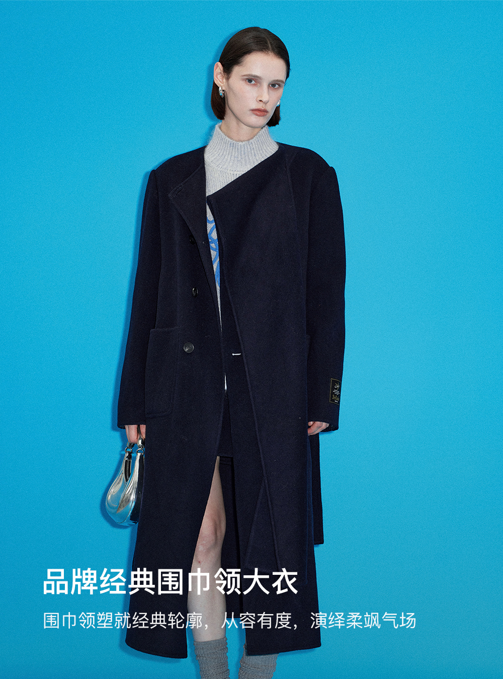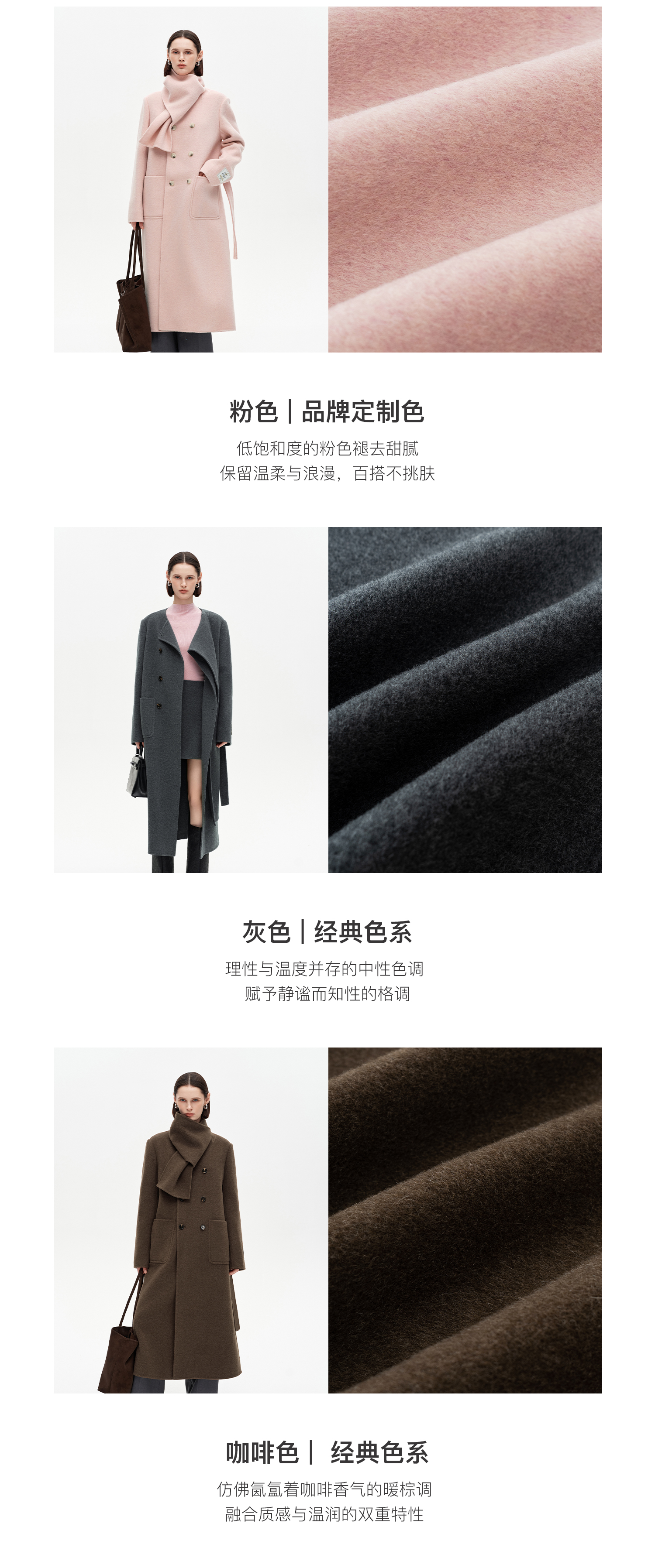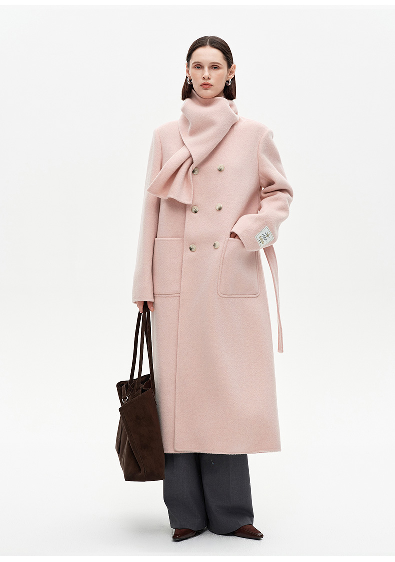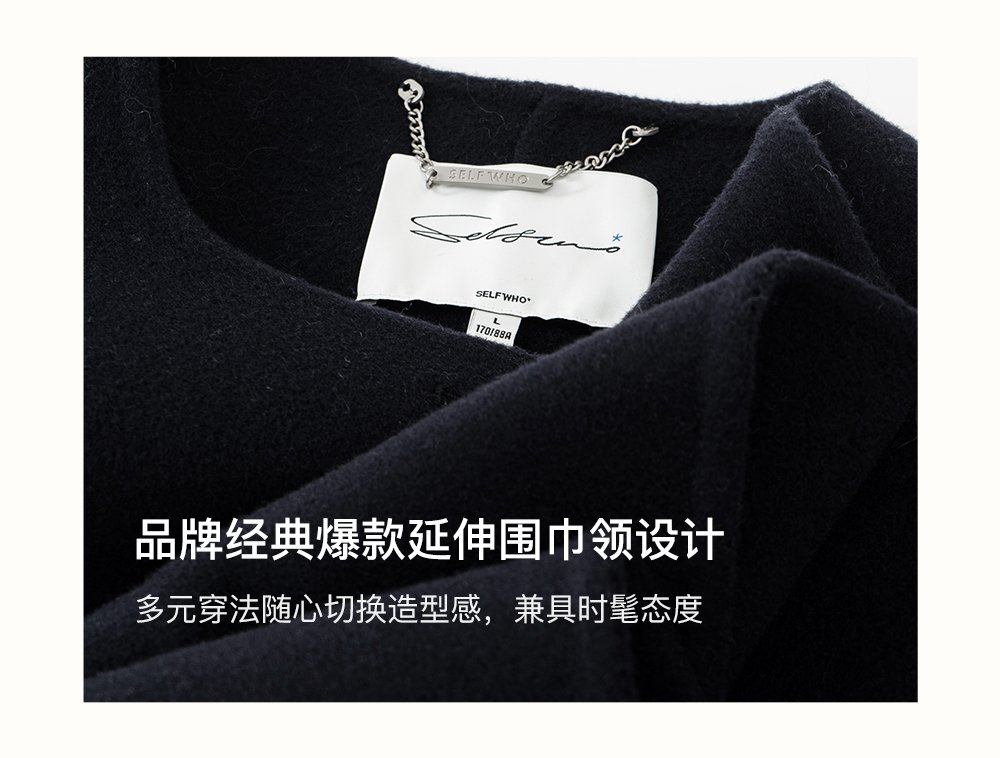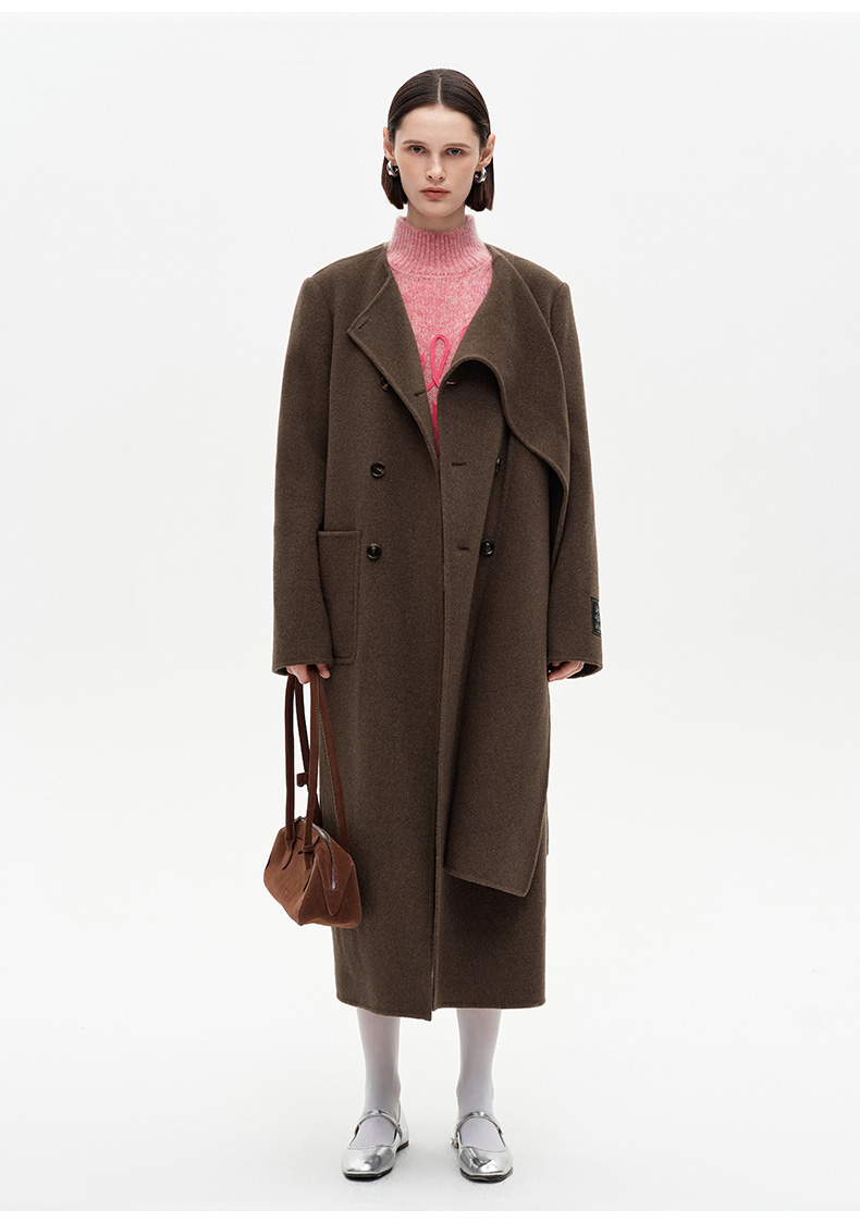 SELFWHO高支高密绵羊毛长款围巾领毛呢外套女2025冬新款保暖大衣
