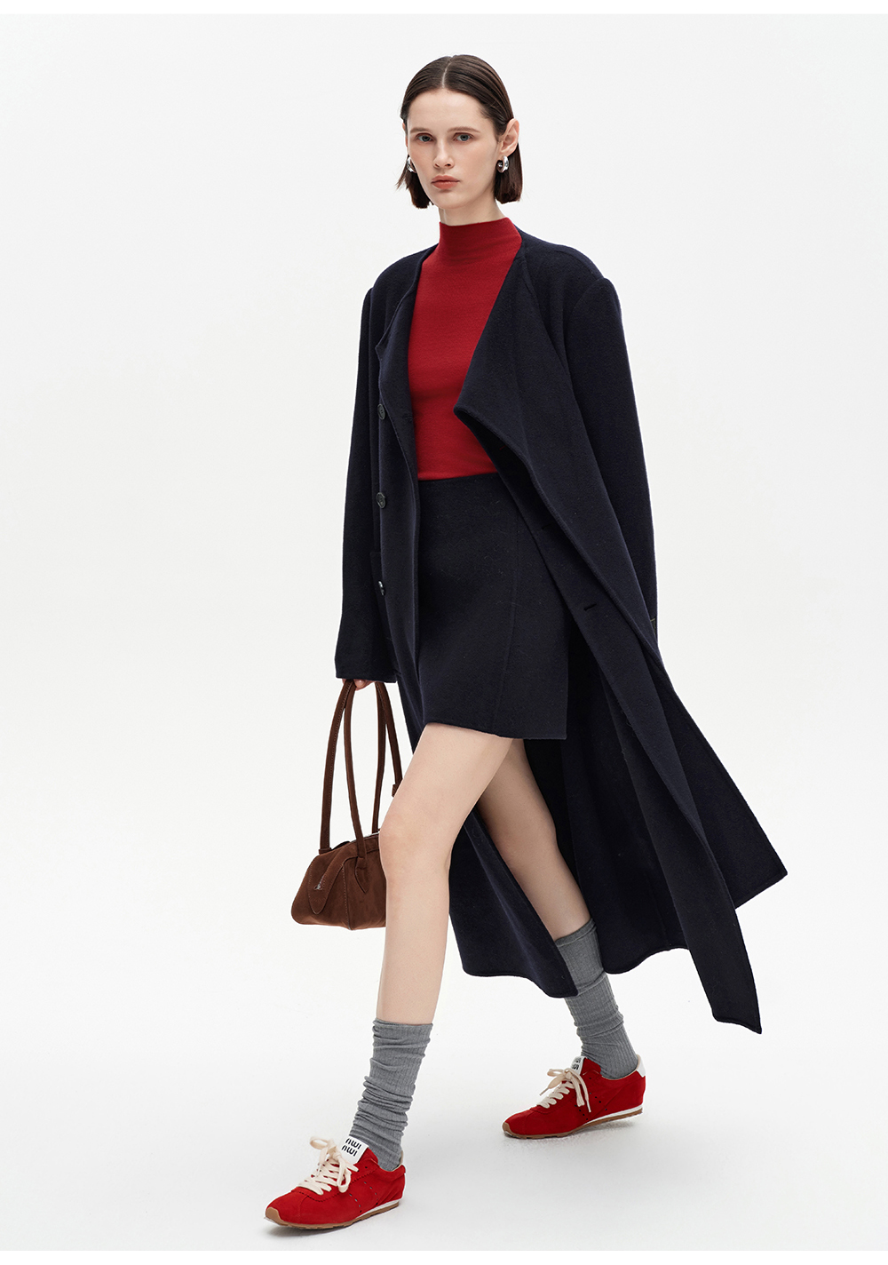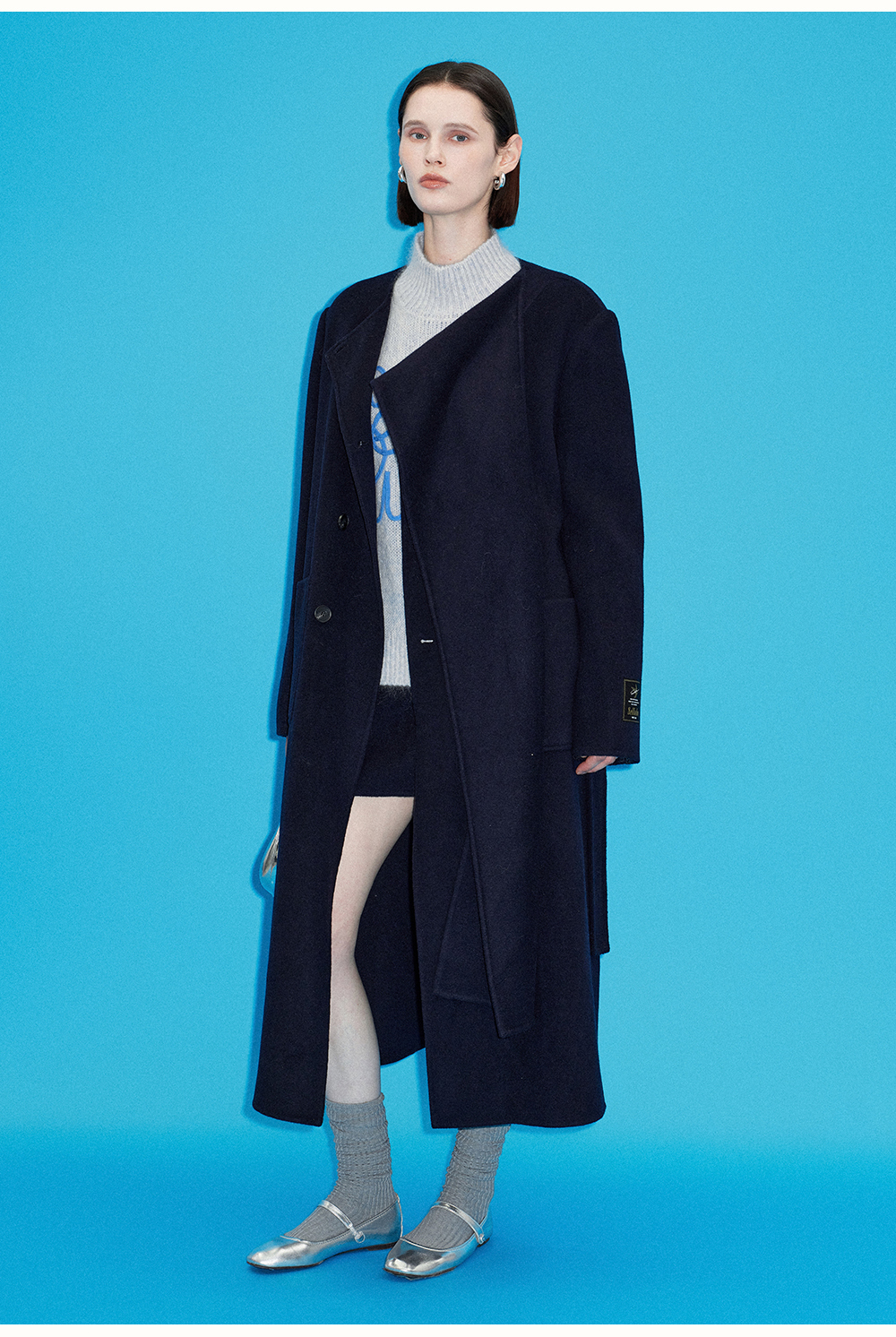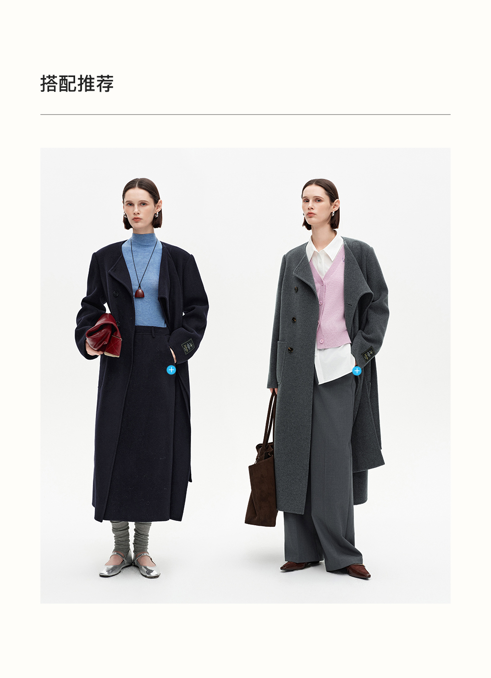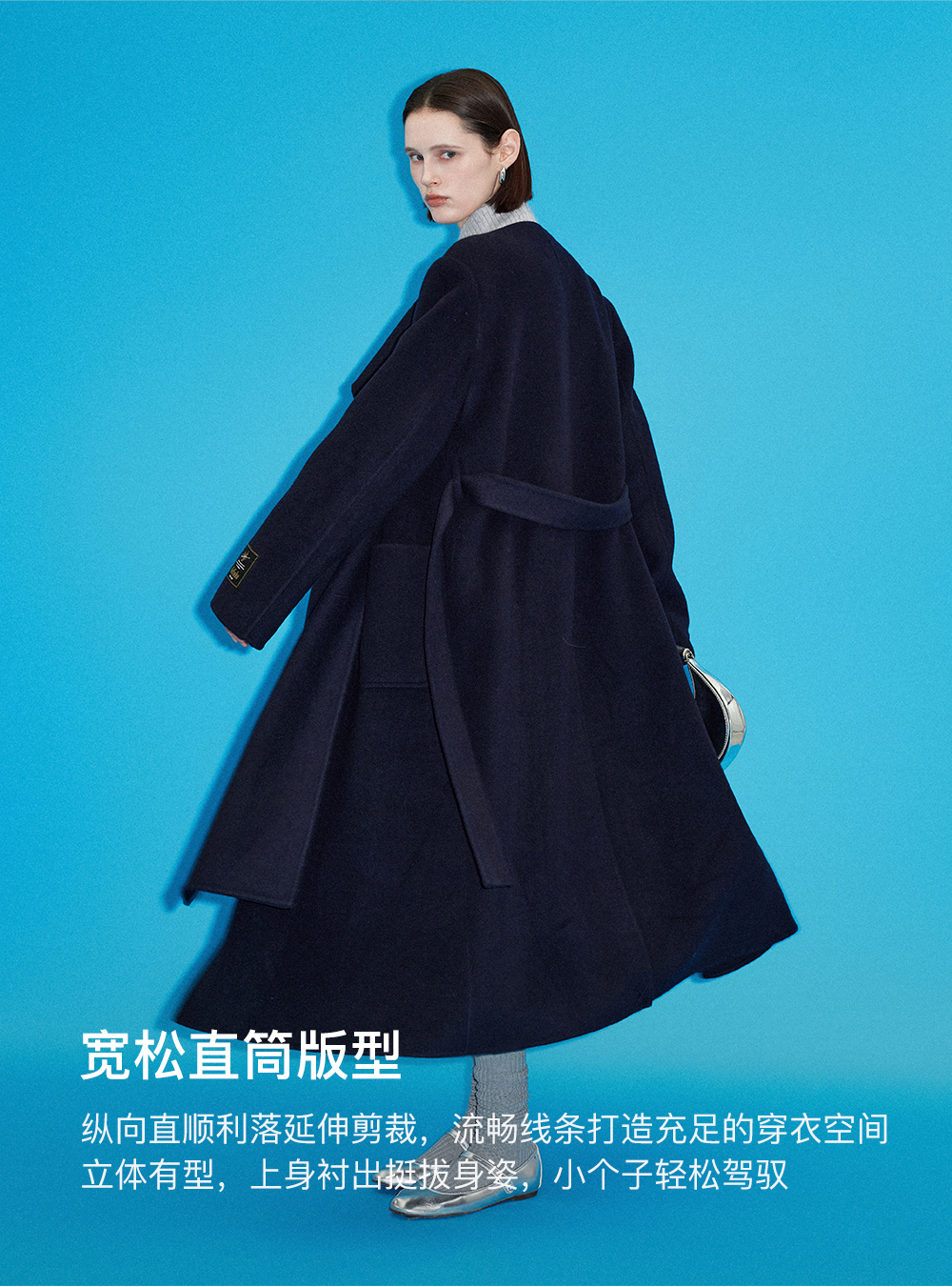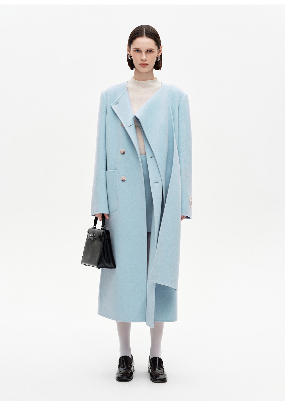 SELFWHO高支高密绵羊毛长款围巾领毛呢外套女2025冬新款保暖大衣