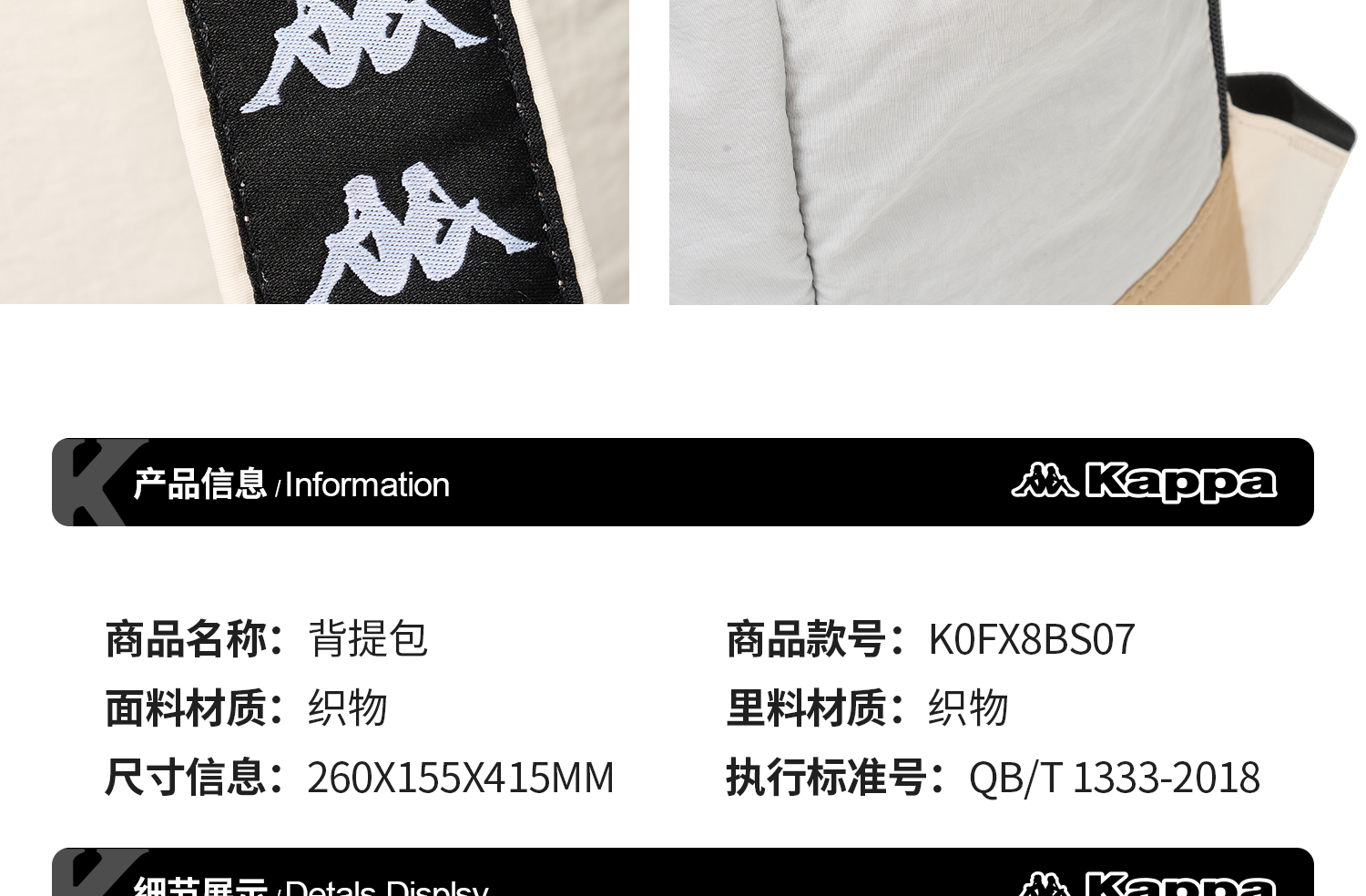 Kappa卡帕背靠背新款运动休闲包双肩背包男女款大容量旅行登山包K0FX8BS07