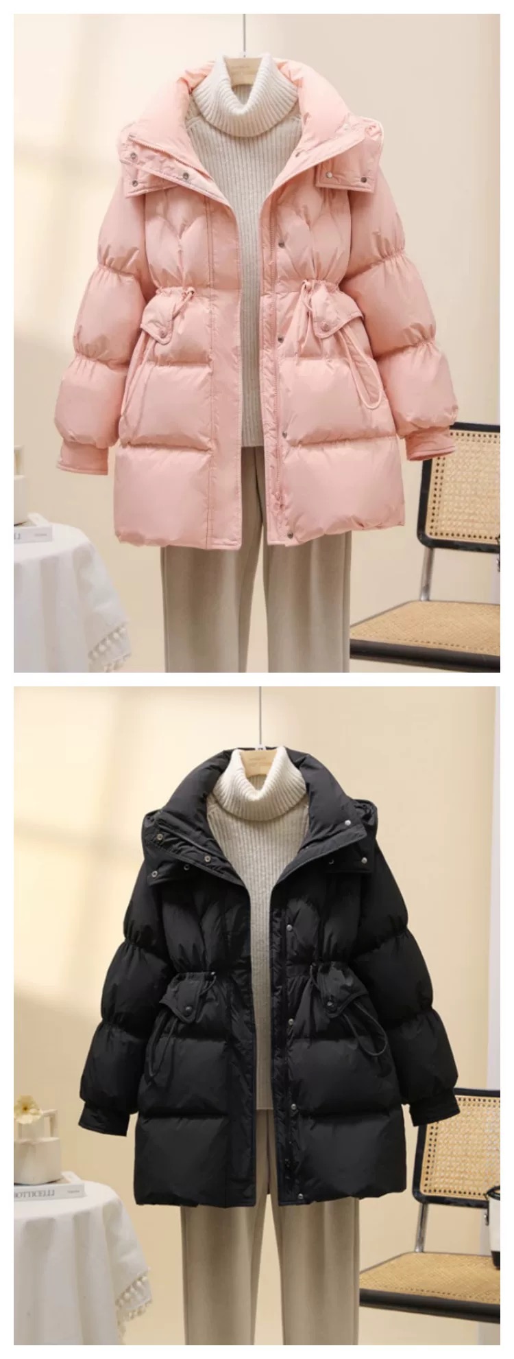 爆款连帽韩版时尚收腰中长款白鸭绒羽绒服女 HY-27 商品图3