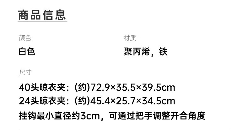 纯白防滑塑料可折叠40头晾衣夹40P NW