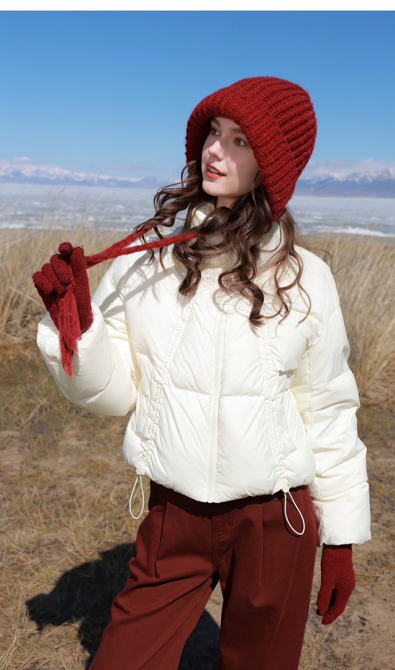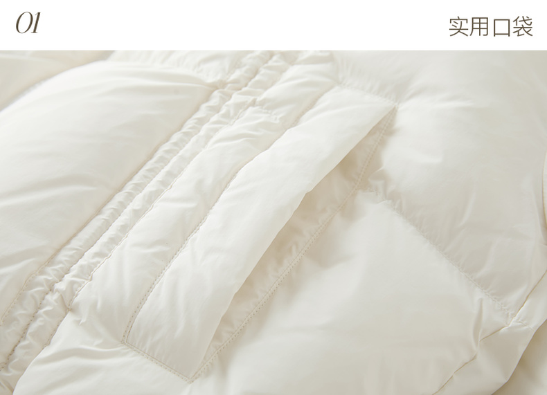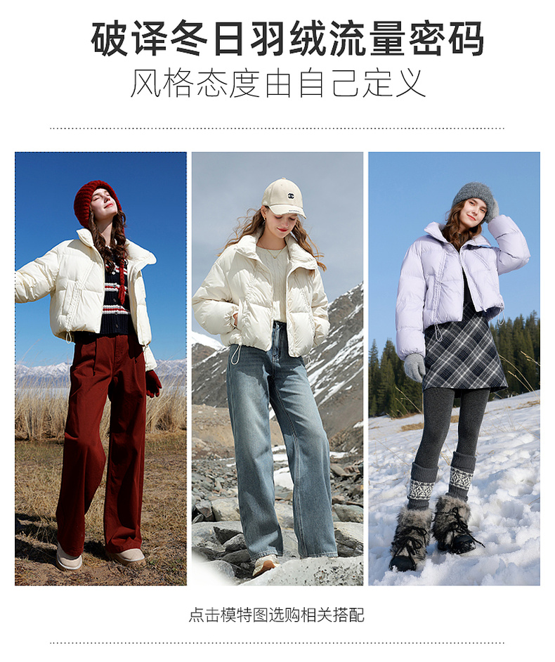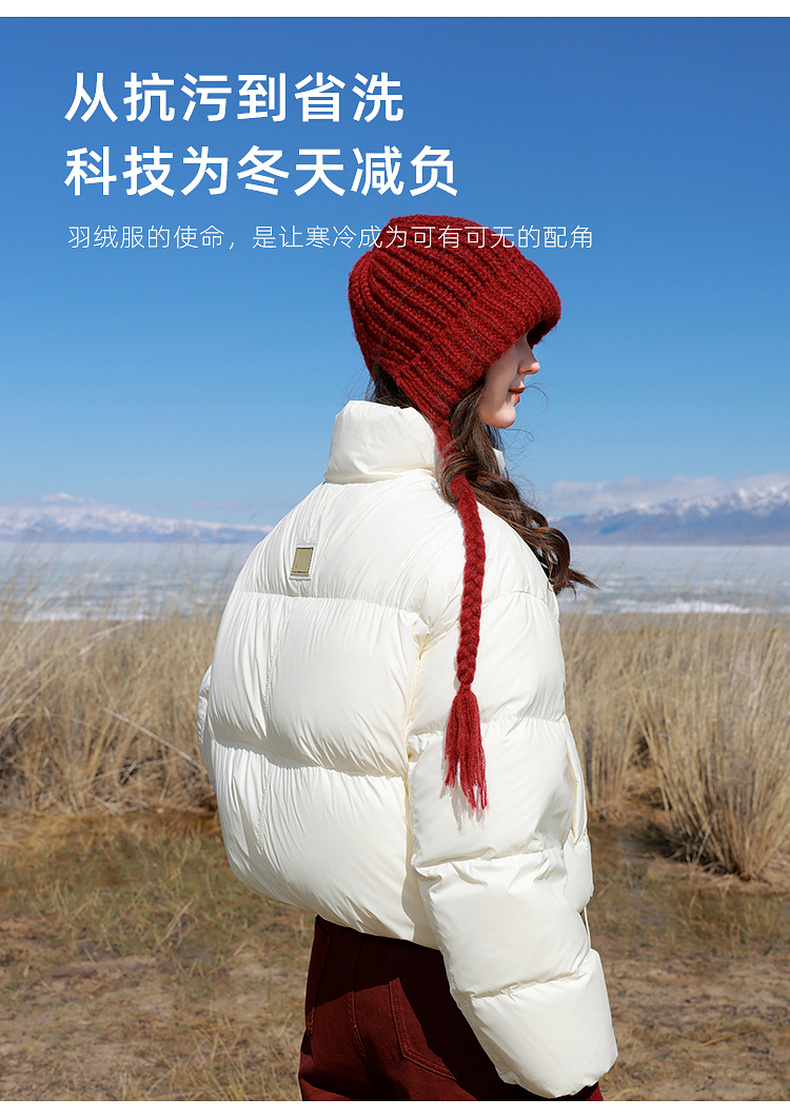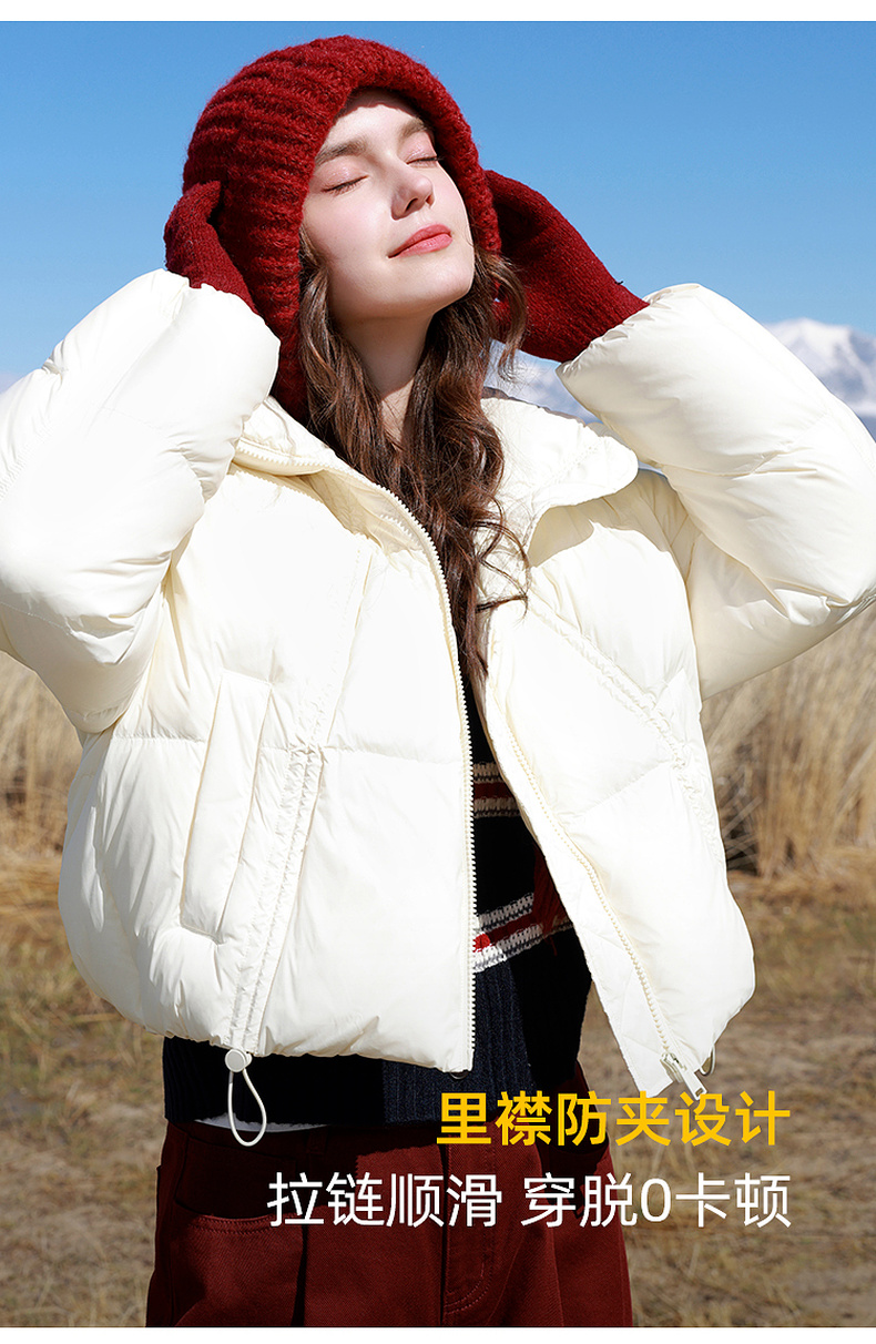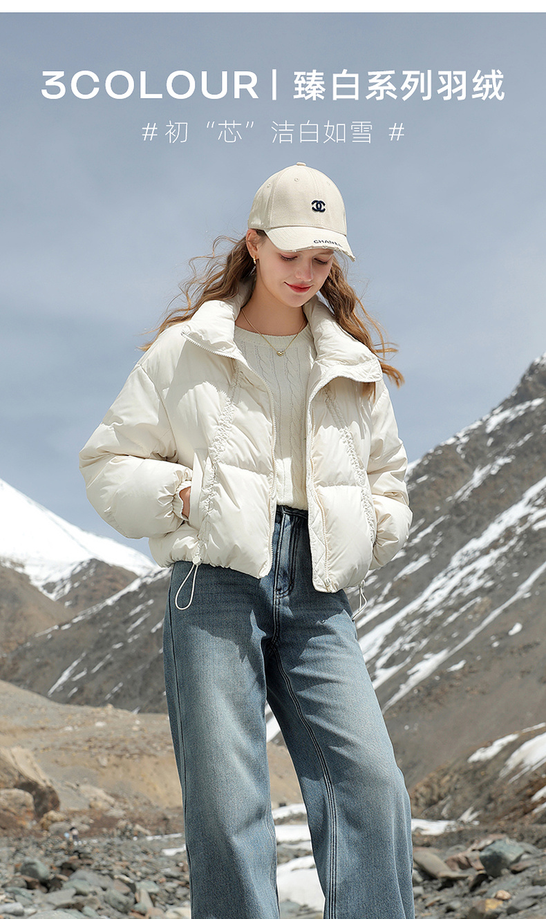 【防水易打理】三彩2025冬季新款立领羽绒服90白鸭绒面包服M
