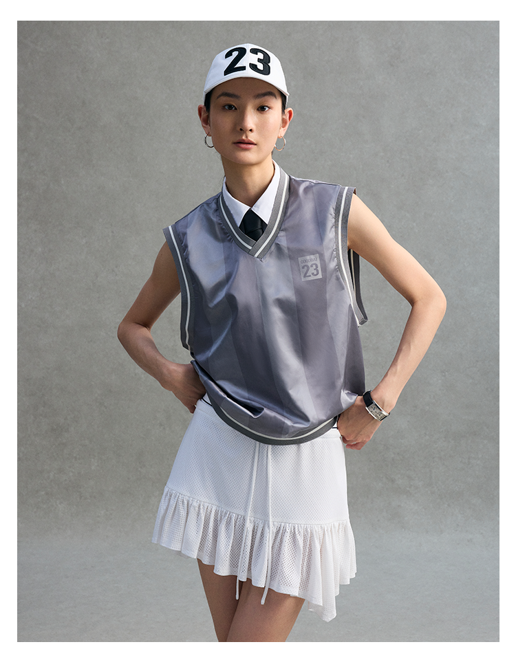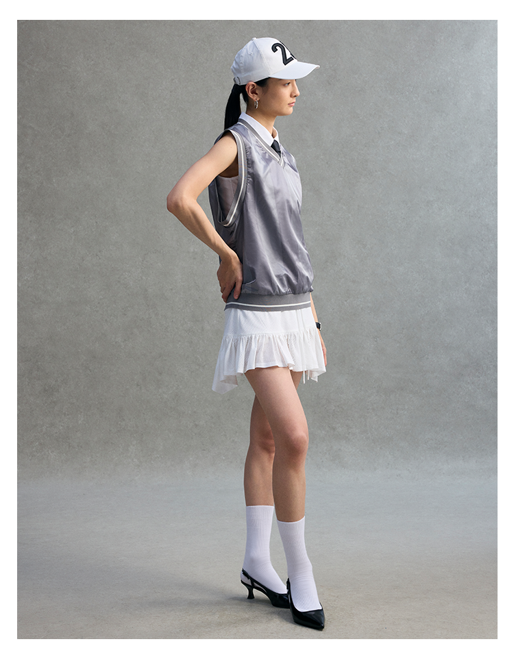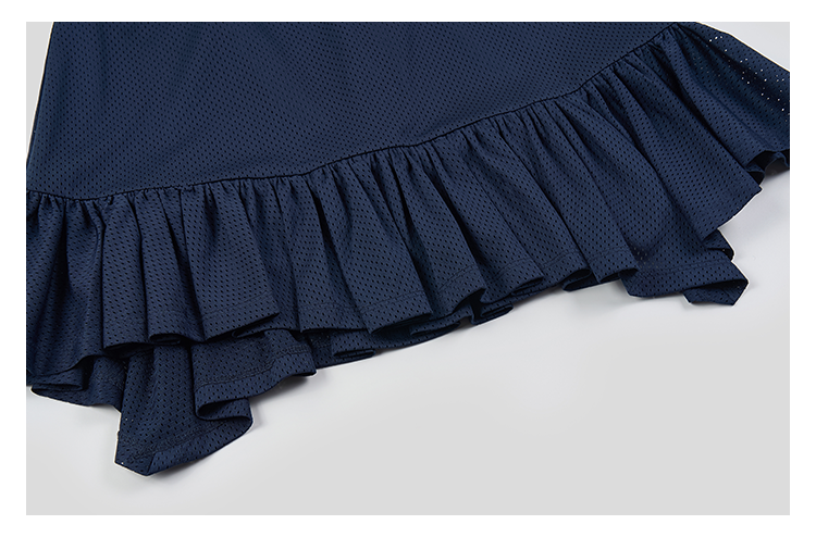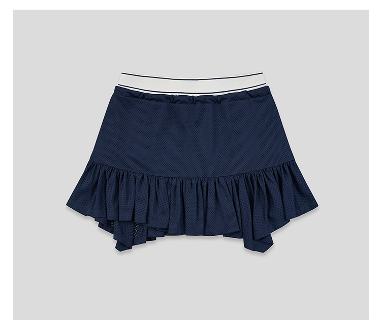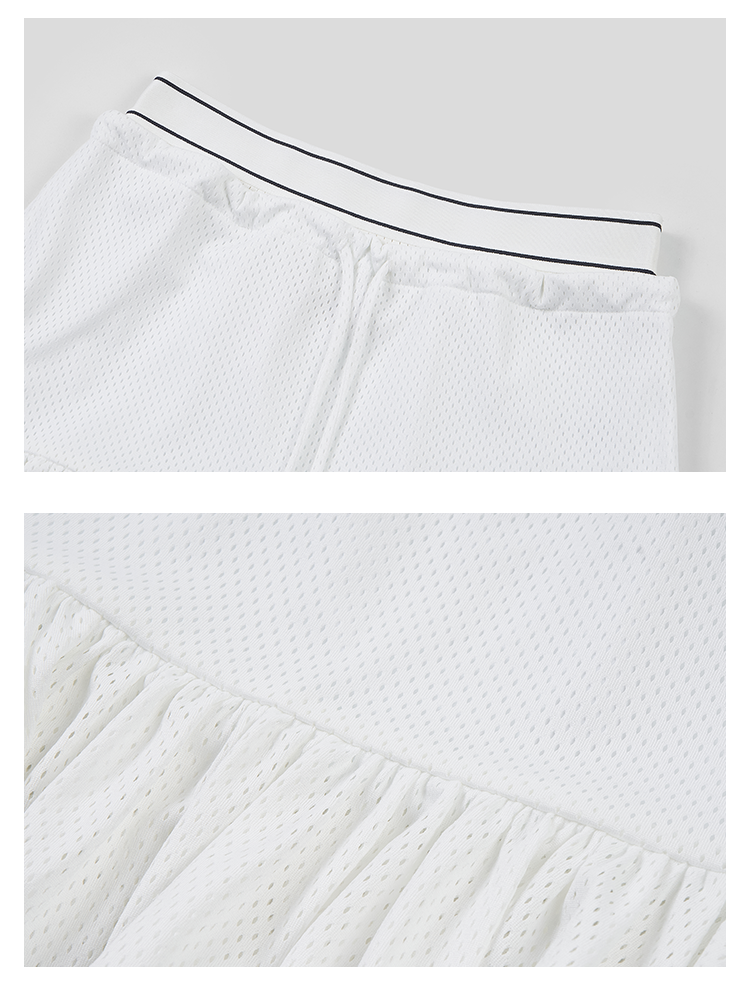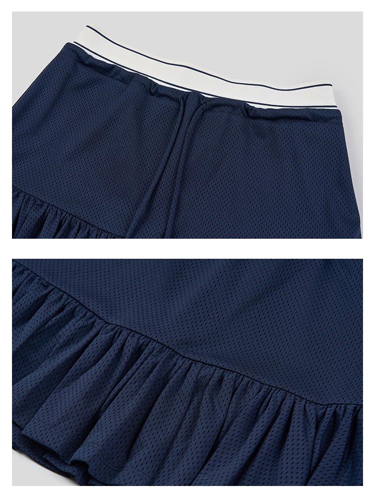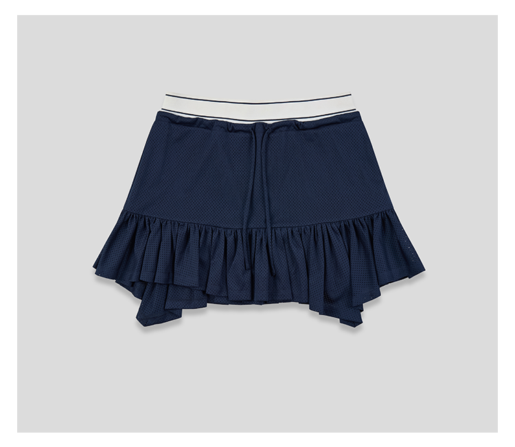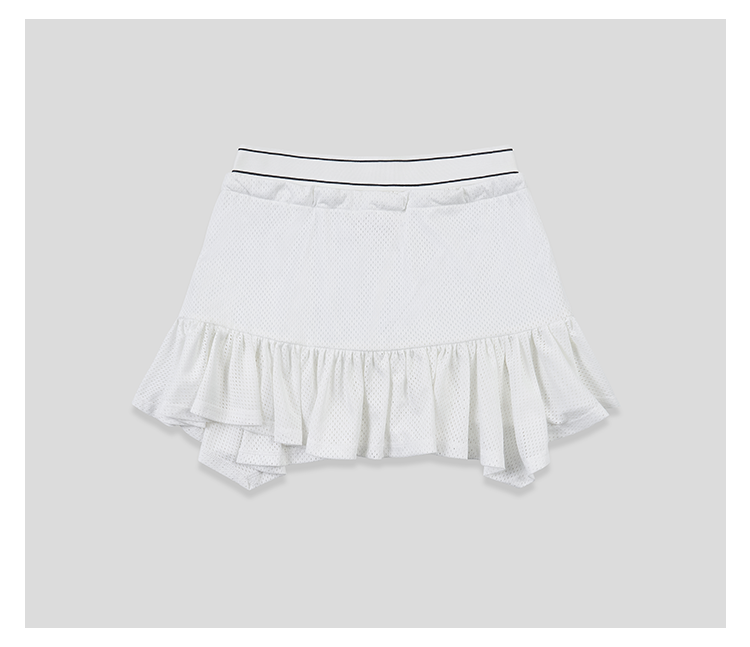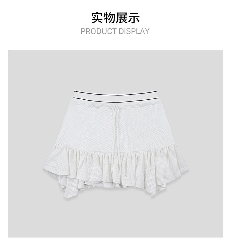 GOODBAI logo腰带抽绳拼接不规则下摆网面双层半身短裙