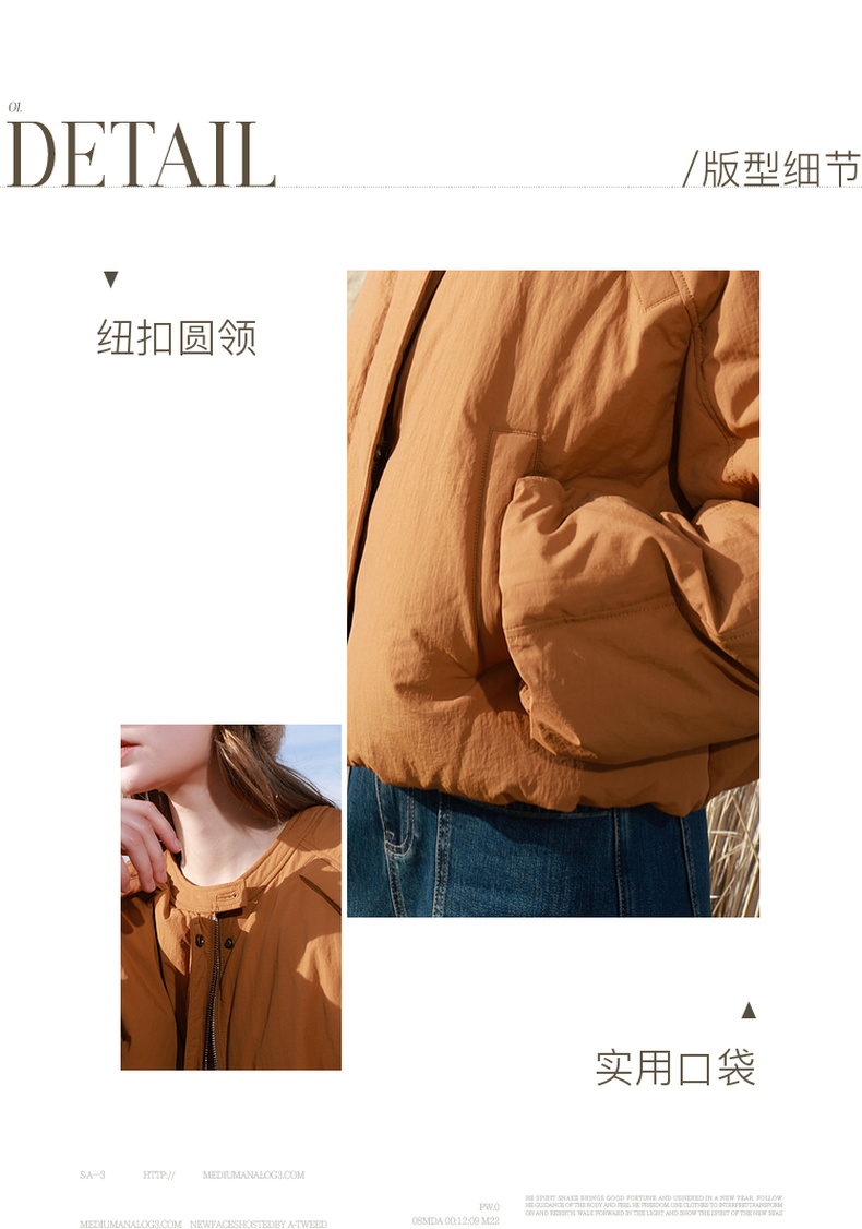 【90白鹅绒】三彩2025冬季新款防水易打理羽绒服宽松短款外套M