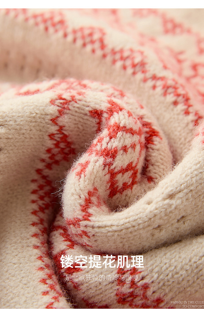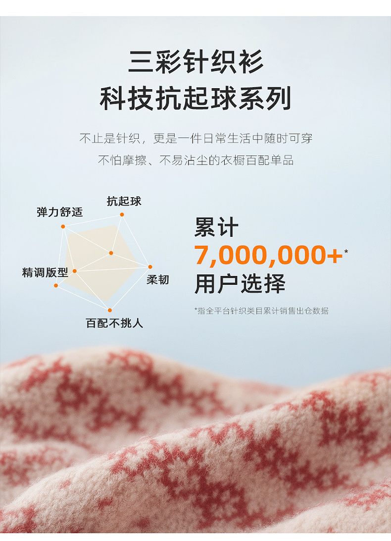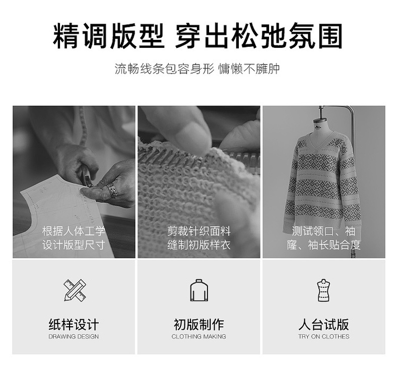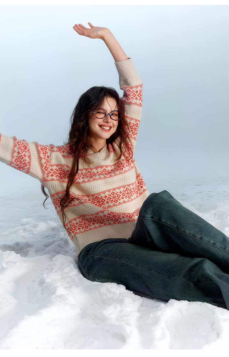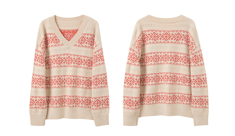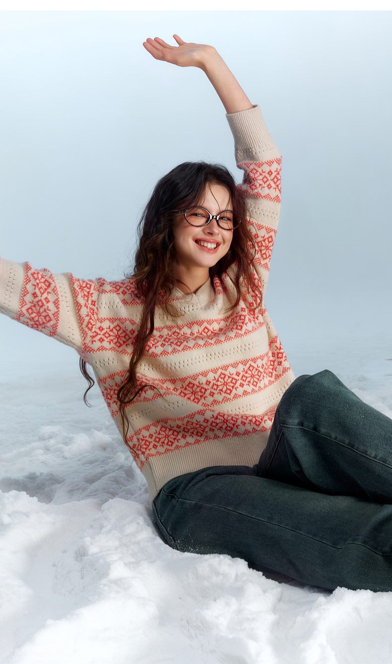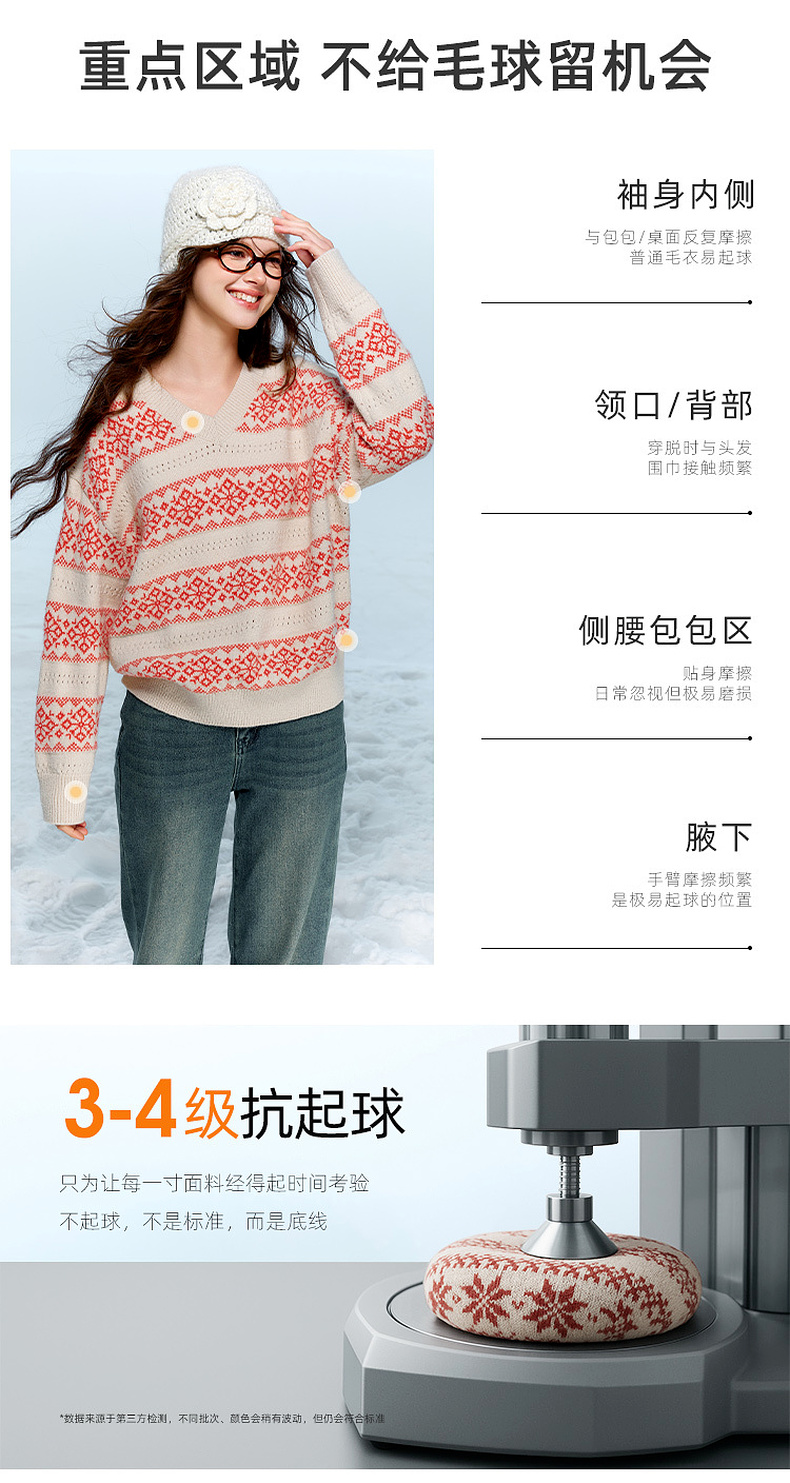 【抗起球】三彩独醒2025冬季新款V领提花针织衫长袖套头衫宽松F