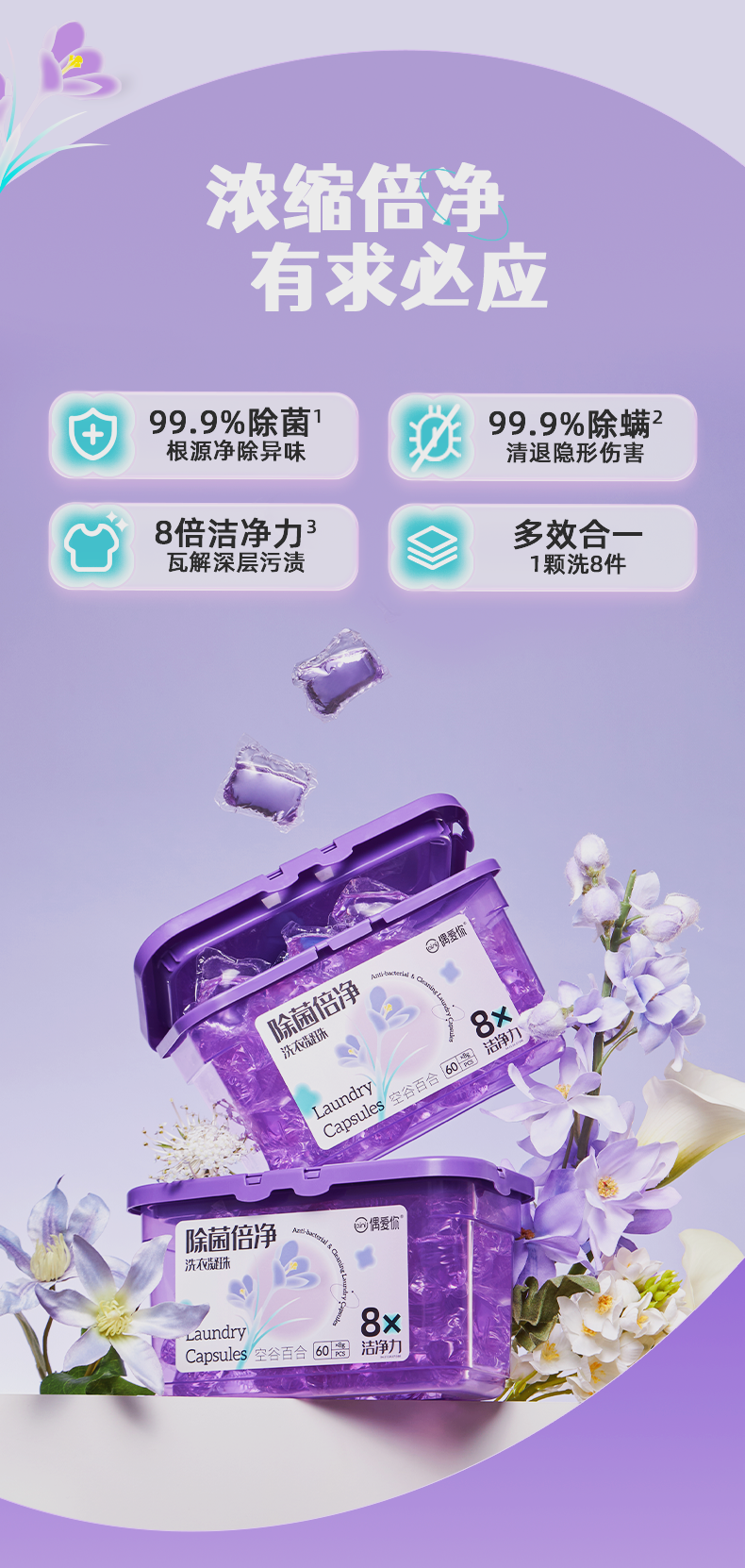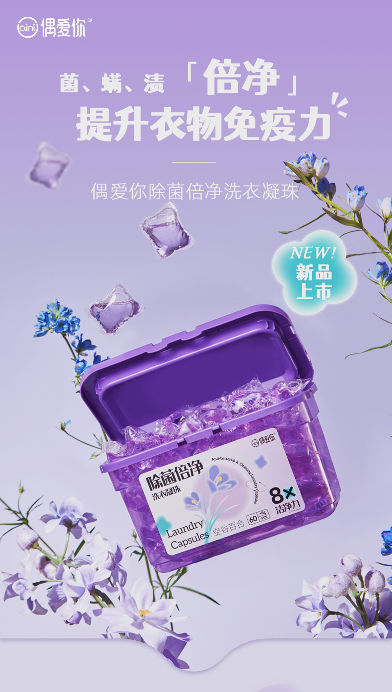 【抑菌留香】偶爱你除菌倍净空谷百合洗衣凝珠8g*60颗