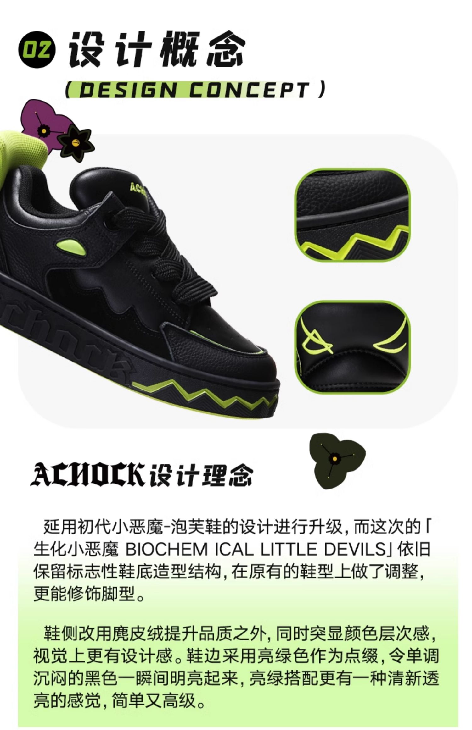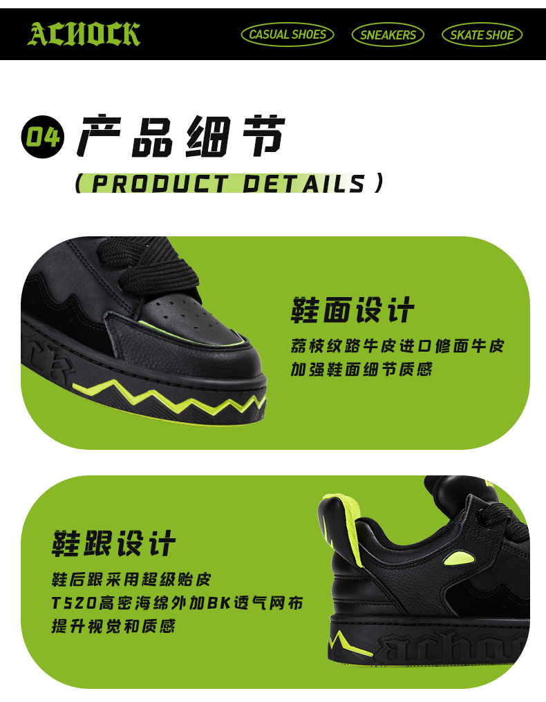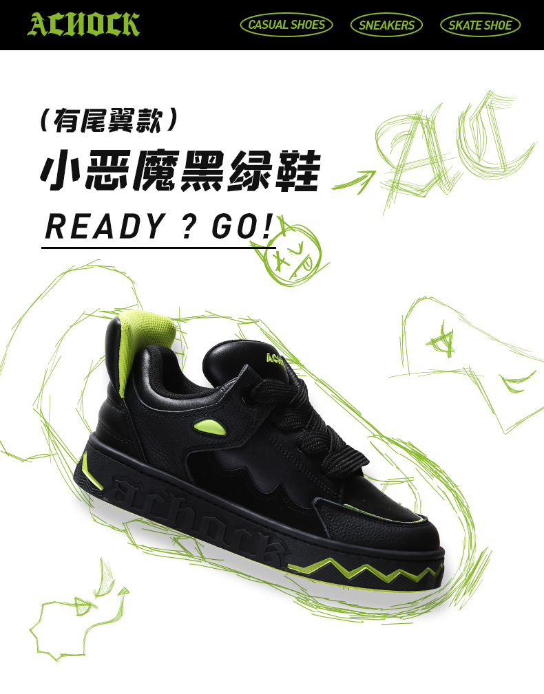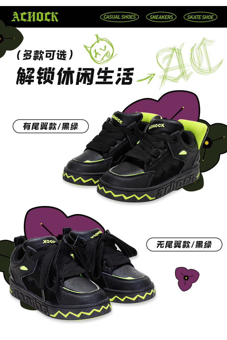 【Achock官方店】“变异小恶魔”国潮泡芙鞋黑色尾翼运动情侣板鞋