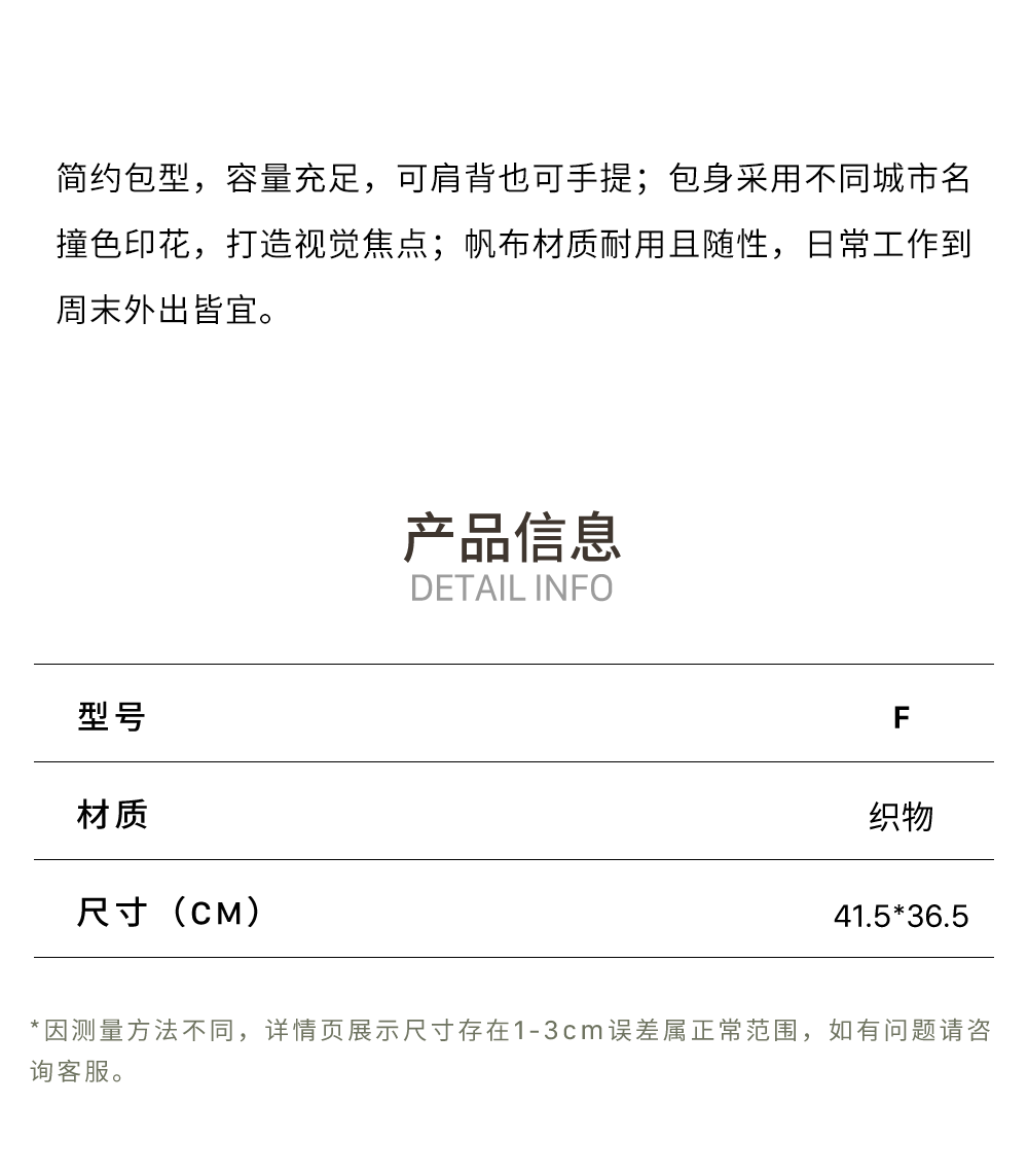 GOODBAI 新款城市系列时尚撞色印花通勤外出休闲帆布包