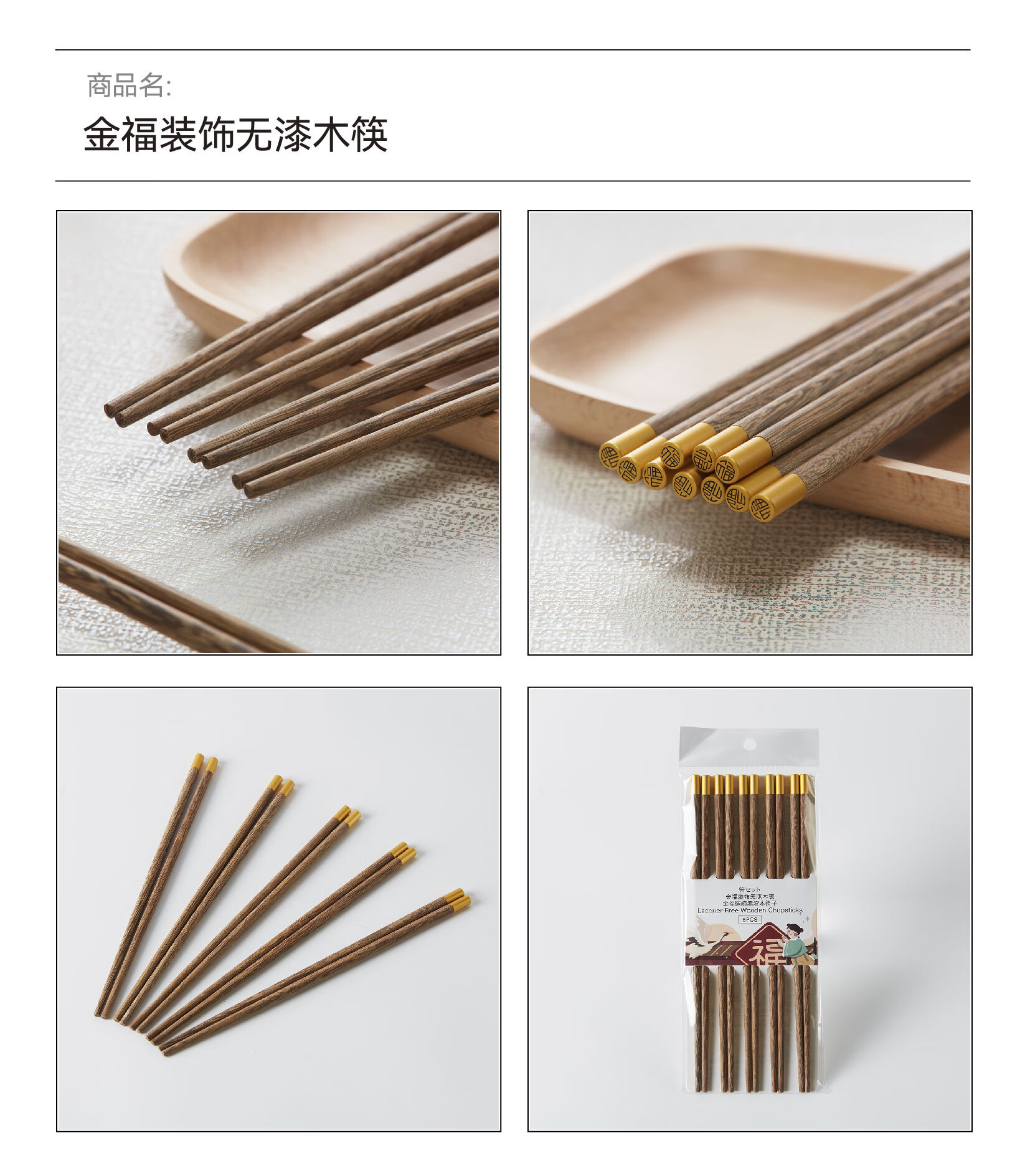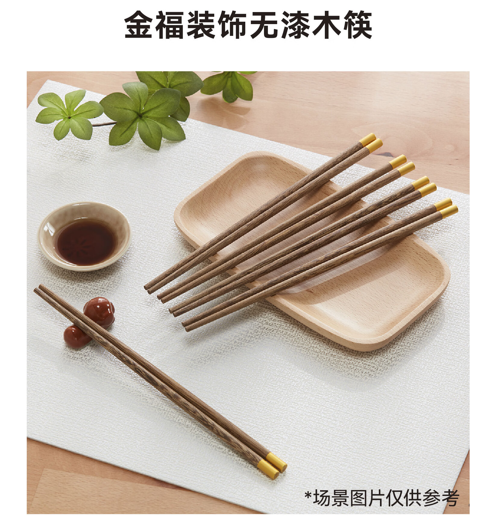 NITORI宜得利家居 厨房餐厅筷子金福装饰无漆木筷5双