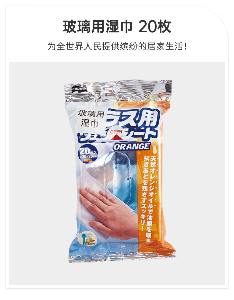 多功能清洁湿纸巾雨浴室水垢家用擦玻璃玻璃湿巾 白色 20枚