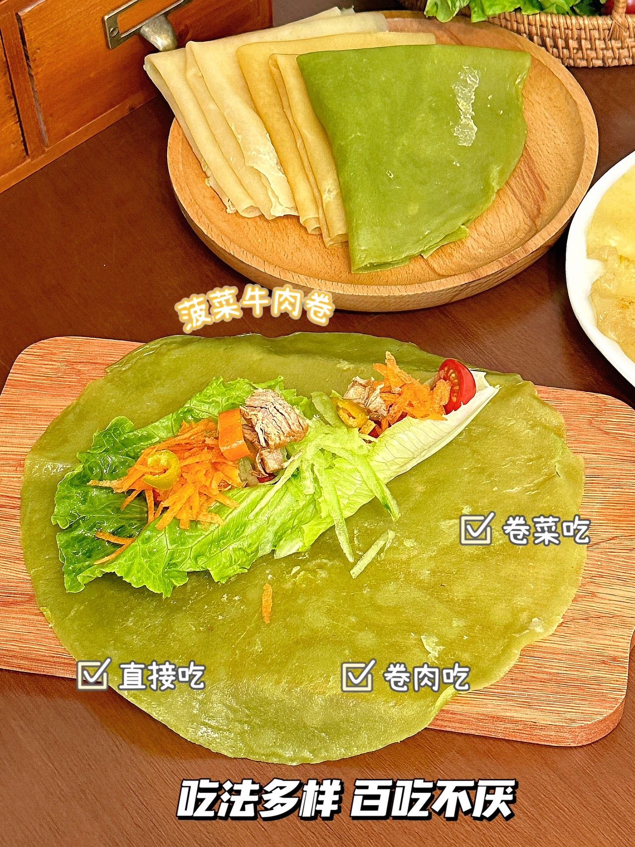 【午后轻甜粗粮卷饼】健康粗粮🔰✅全麦粉+蔬菜粉和面,配料健康✅饼体又薄又劲道💯口感Q弹,😋✅万物皆可卷,蛋/肉/蔬菜/