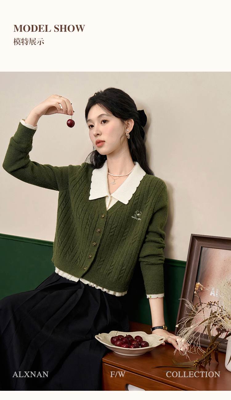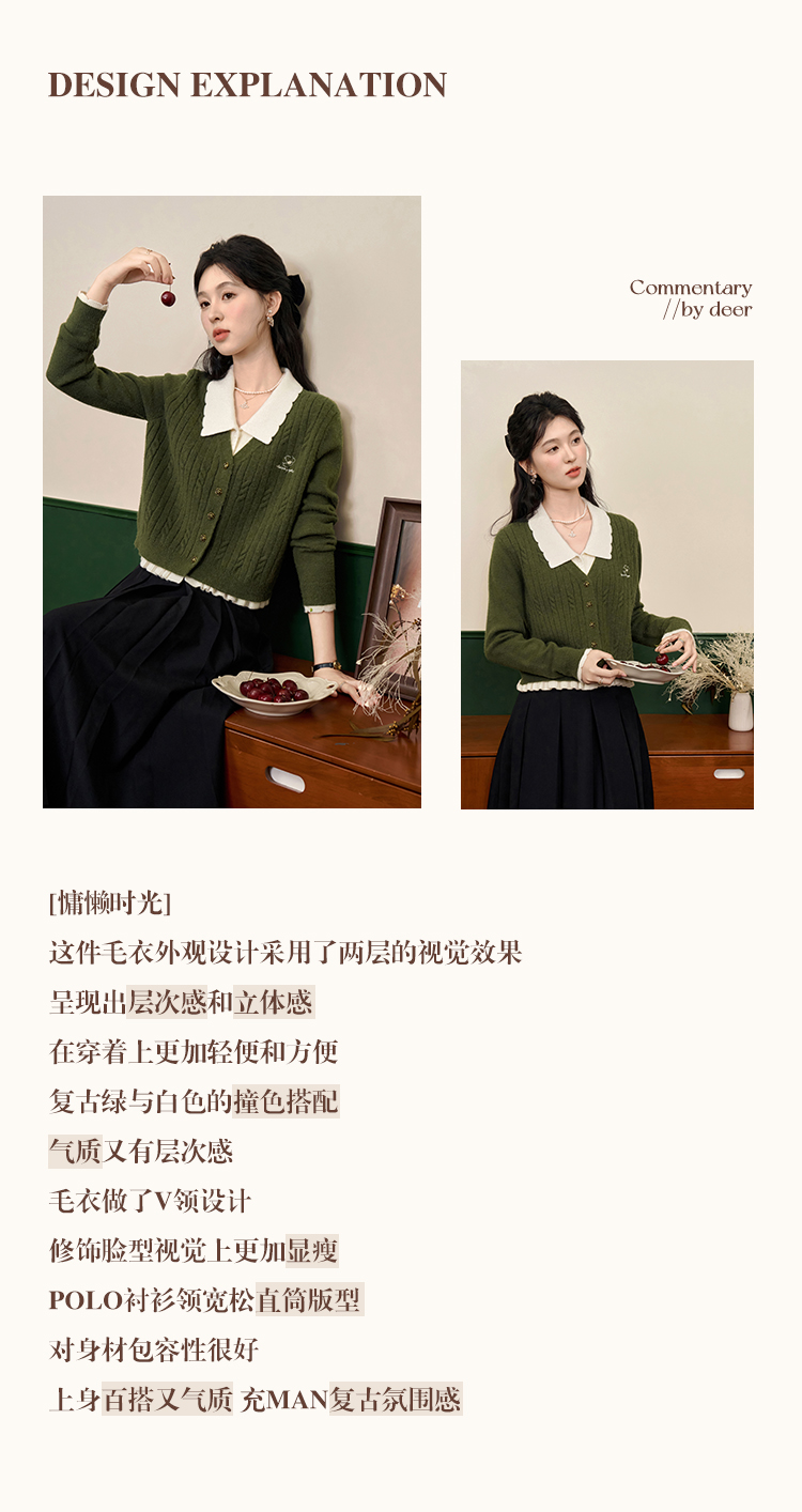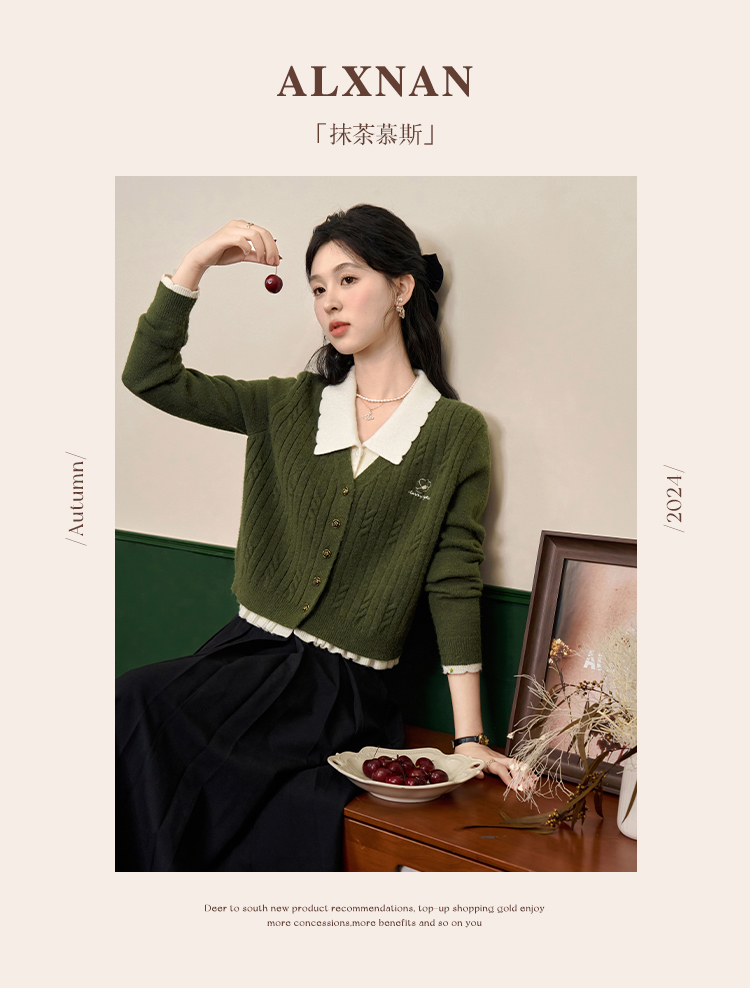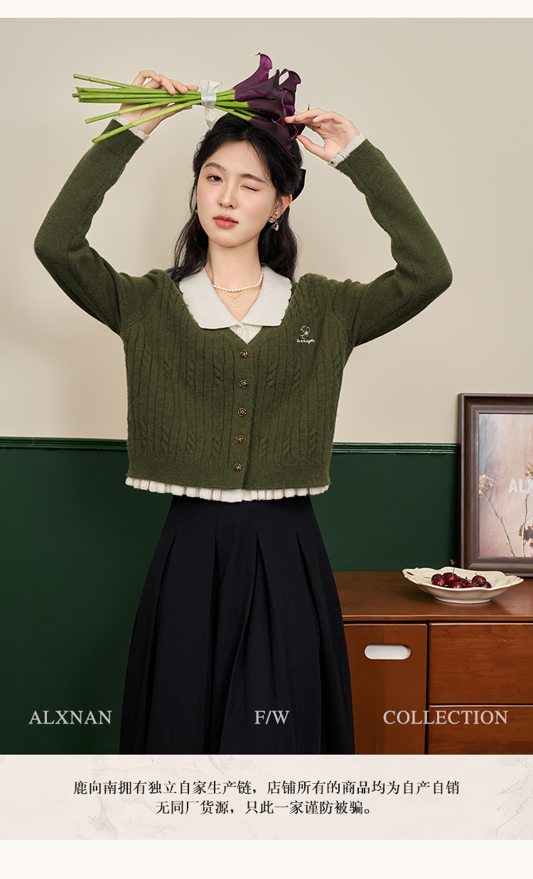 鹿向南「抹茶慕斯」慵懒风宽松毛衣2025秋冬季女装撞色假两件开衫