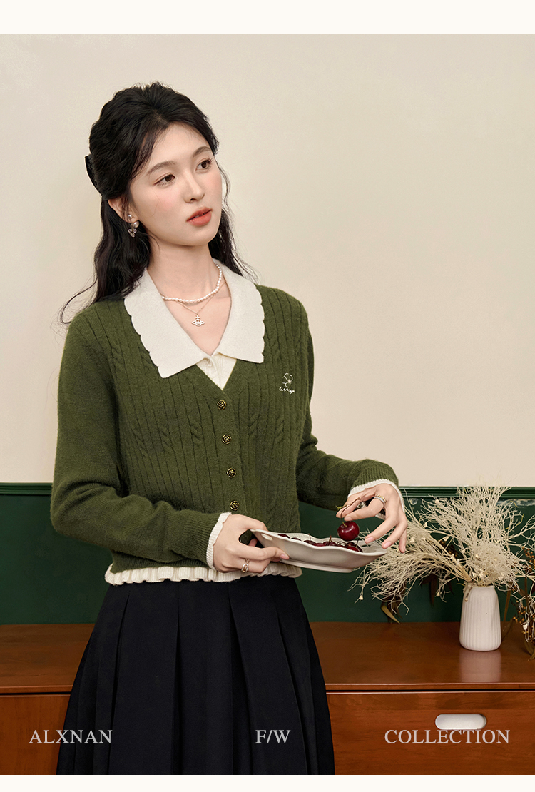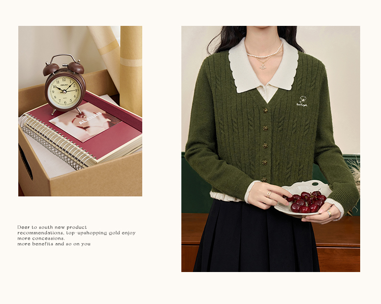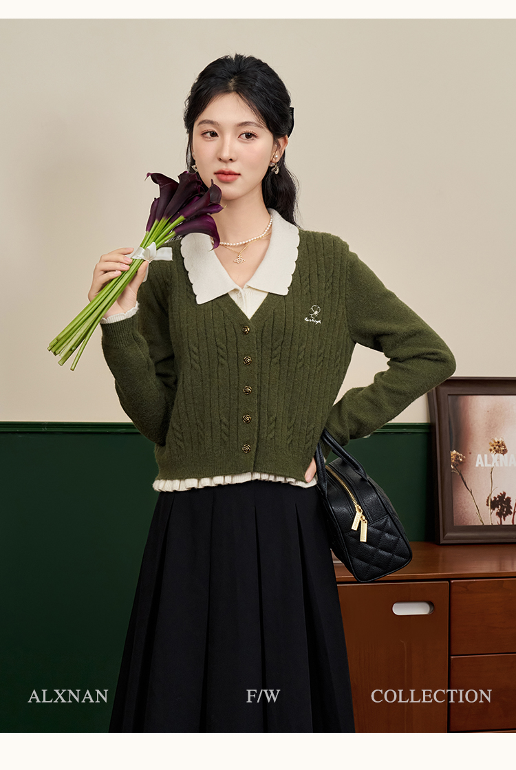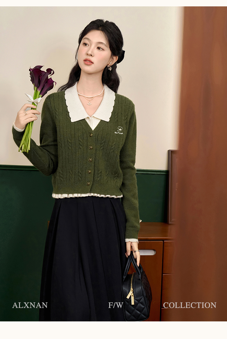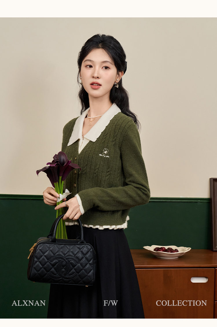 鹿向南「抹茶慕斯」慵懒风宽松毛衣2025秋冬季女装撞色假两件开衫