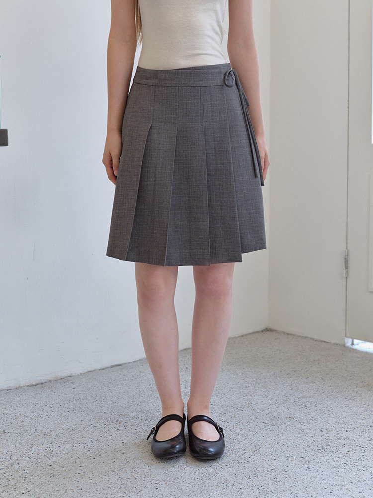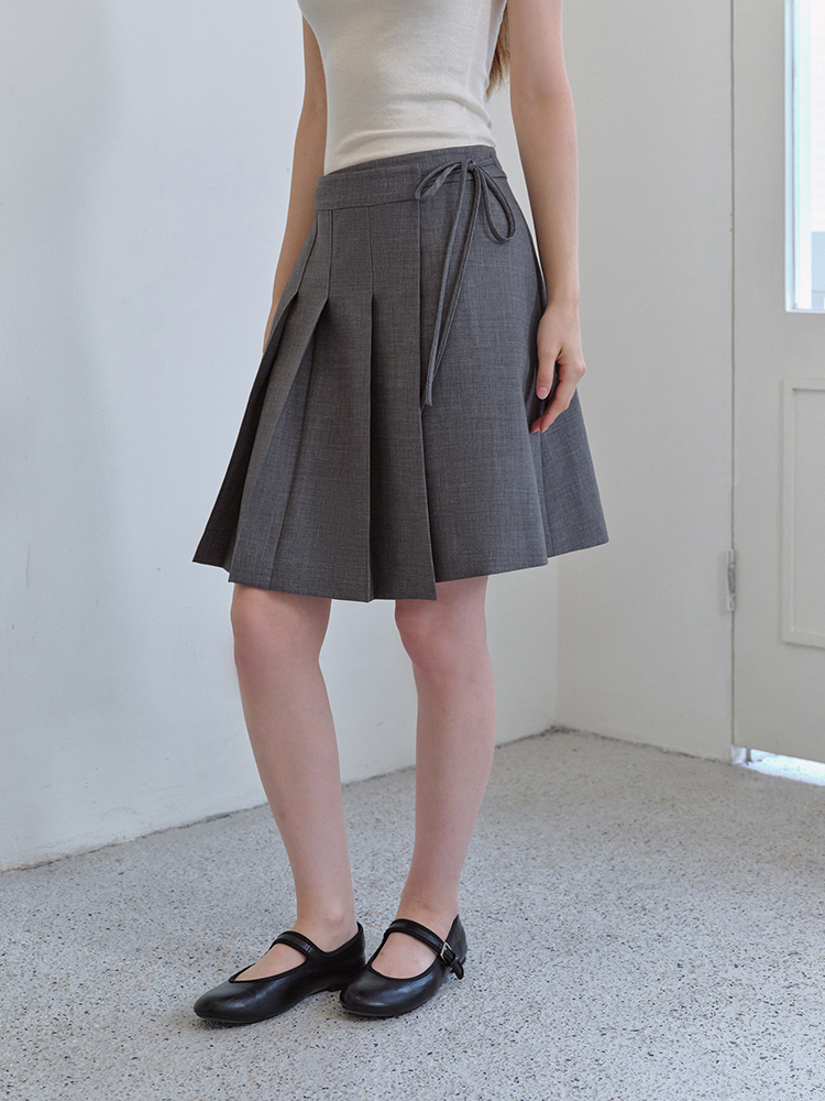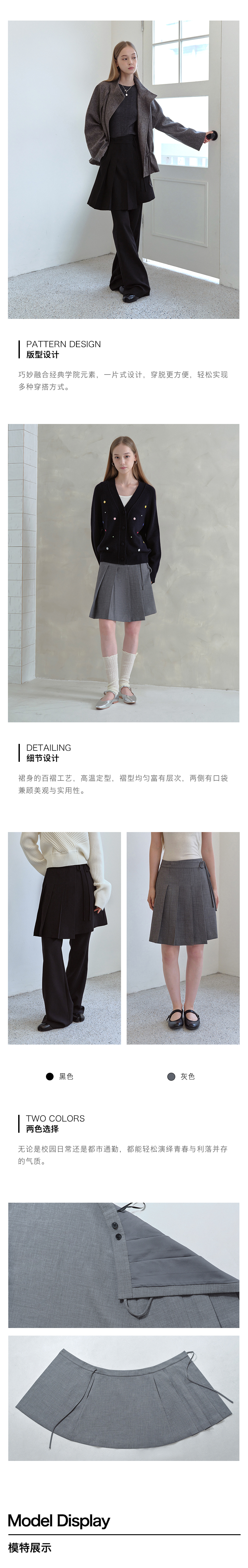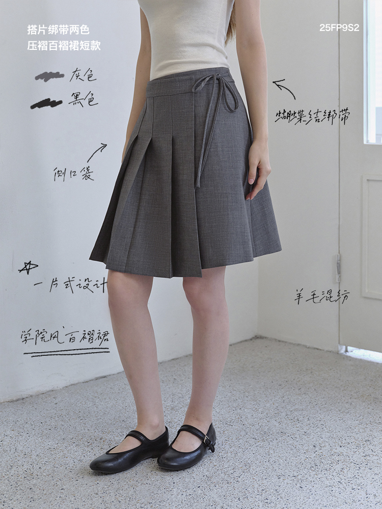 ForPoem 现货 25/FW原创设计搭片绑带两色百搭百褶裙短款A字半身裙女