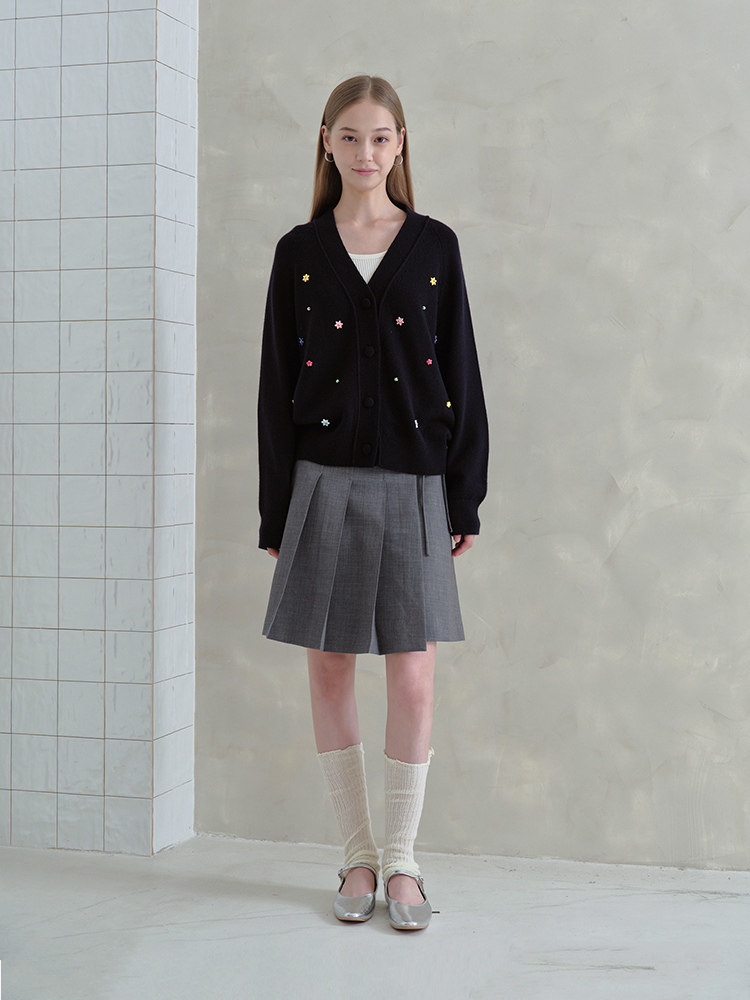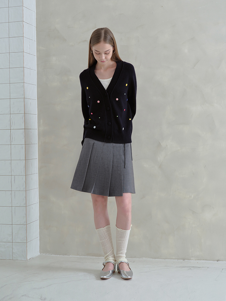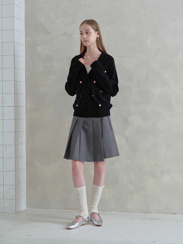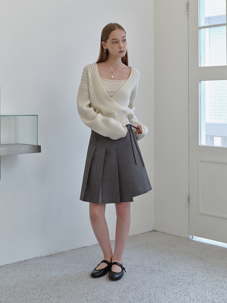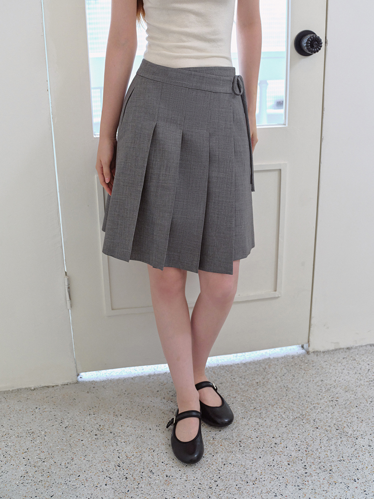 ForPoem 现货 25/FW原创设计搭片绑带两色百搭百褶裙短款A字半身裙女