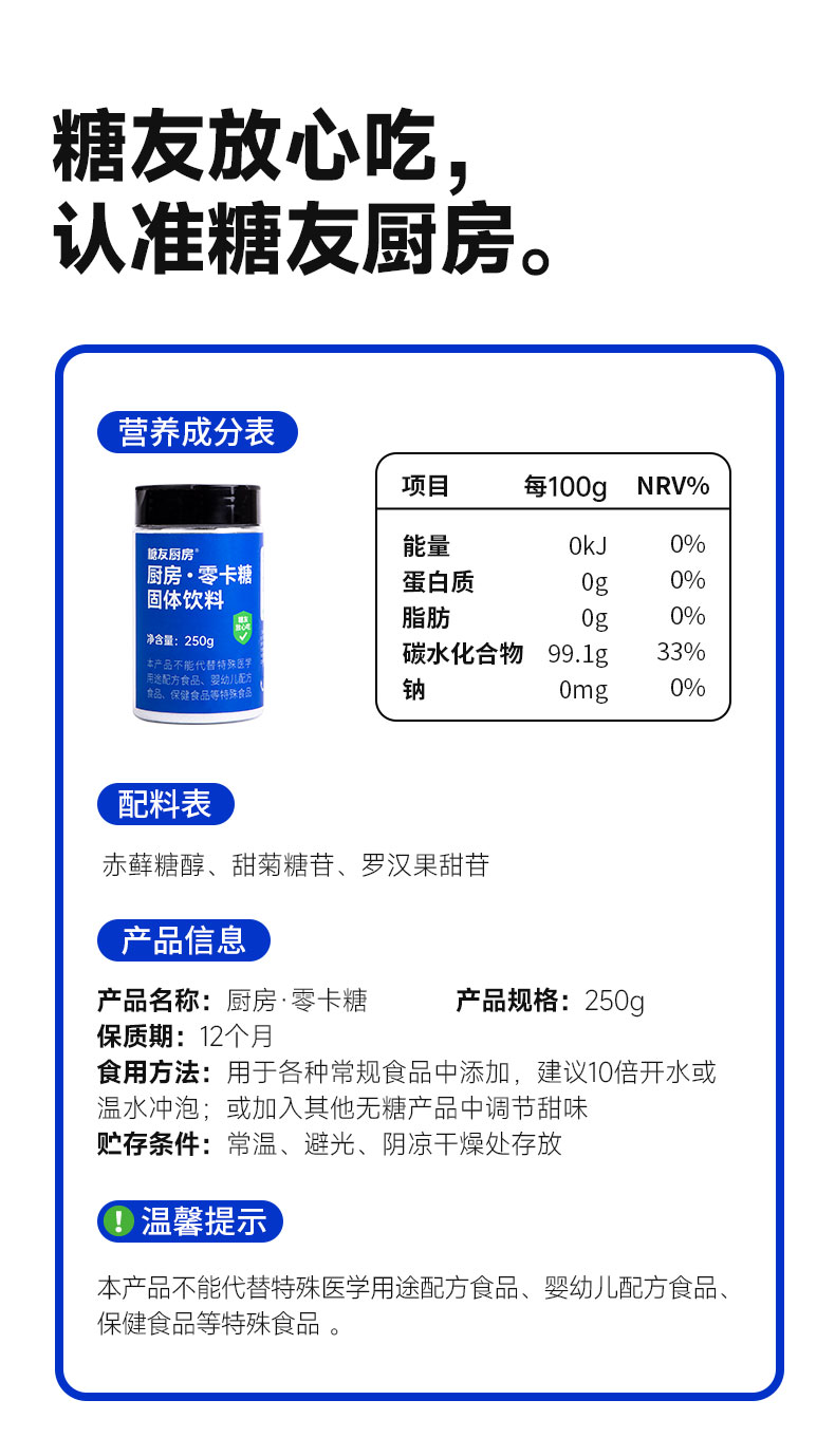 糖友厨房代糖-0卡糖250g×1罐