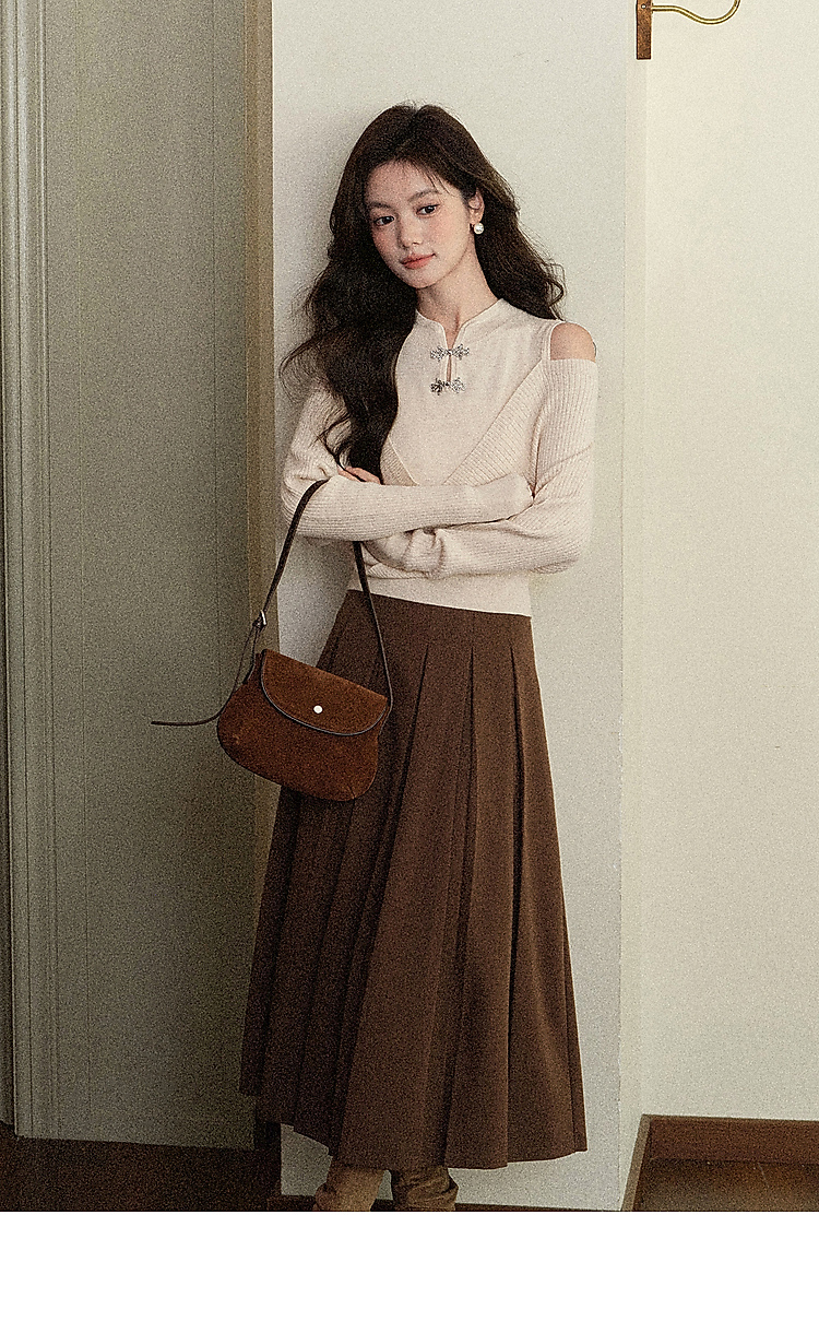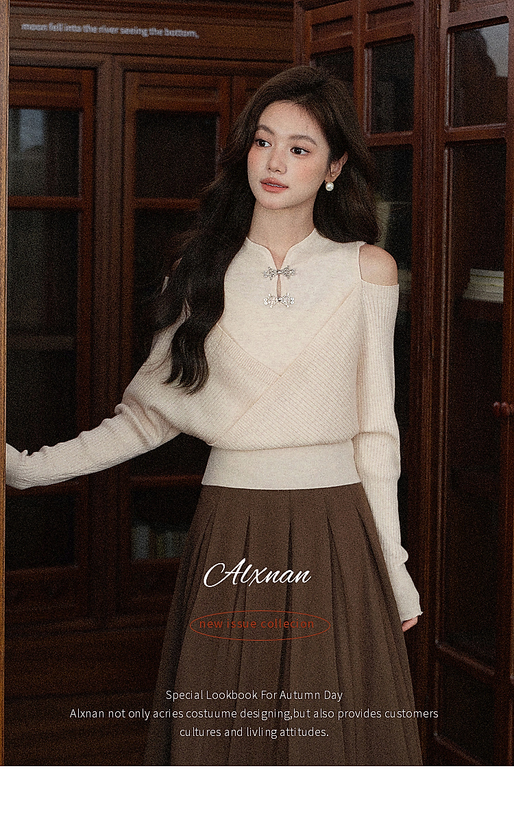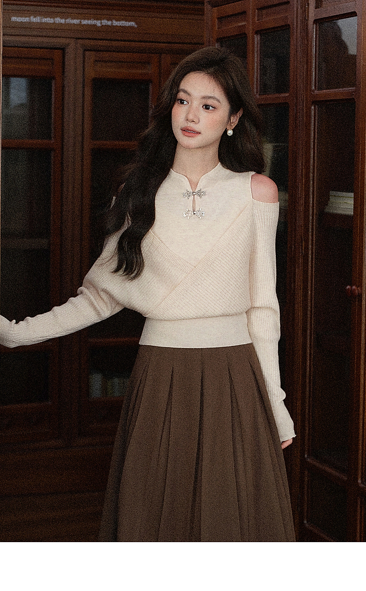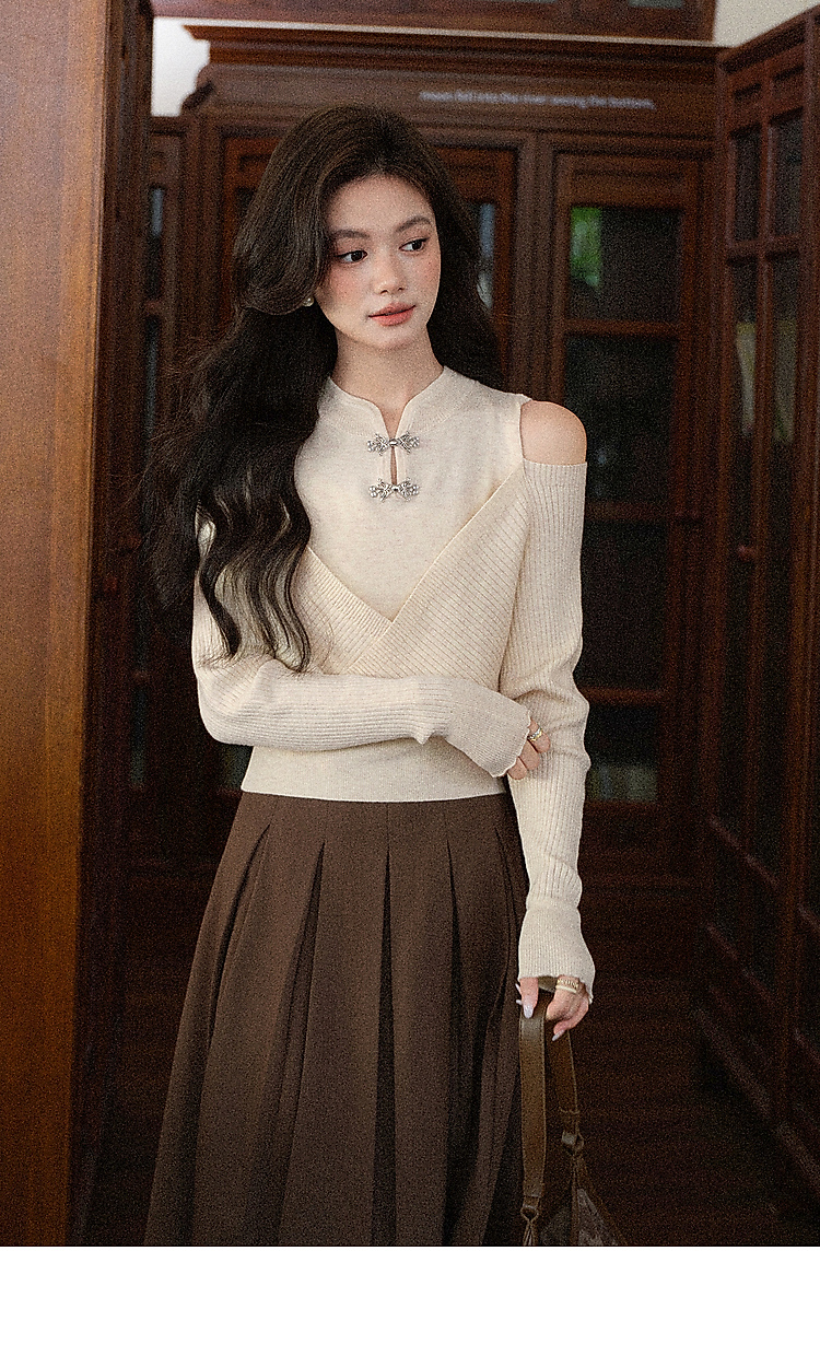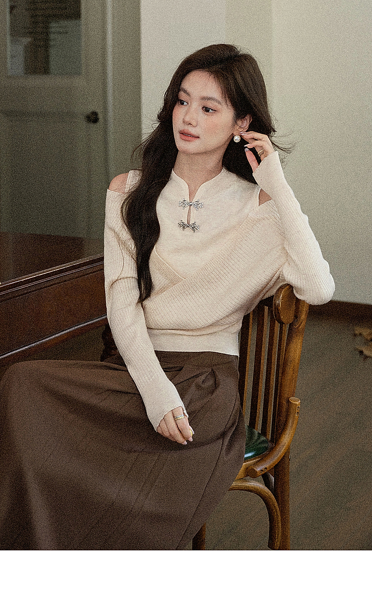 鹿向南「洛梨清茶」新中式国风杏色长袖针织衫秋季复古长袖上衣女