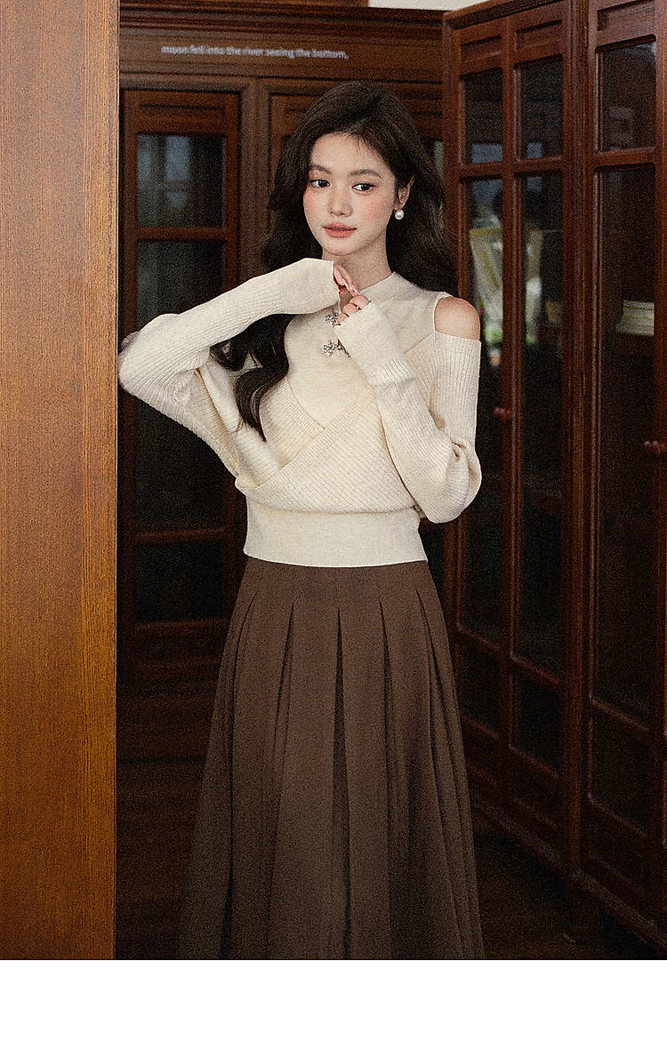 鹿向南「洛梨清茶」新中式国风杏色长袖针织衫秋季复古长袖上衣女 商品图1