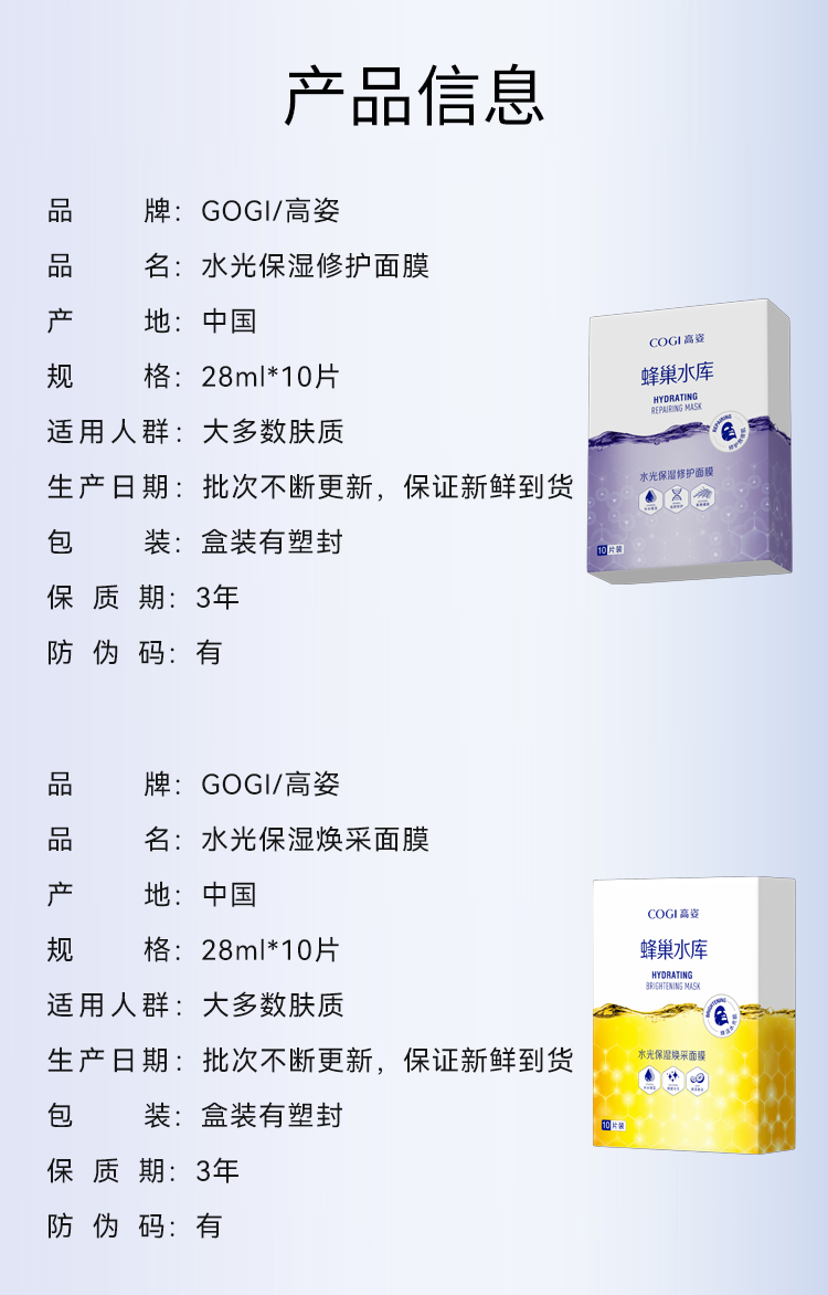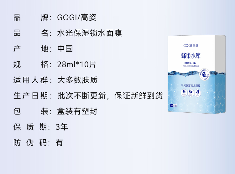 GOGI/高姿 水光保湿修护面膜 蜂巢水库面膜