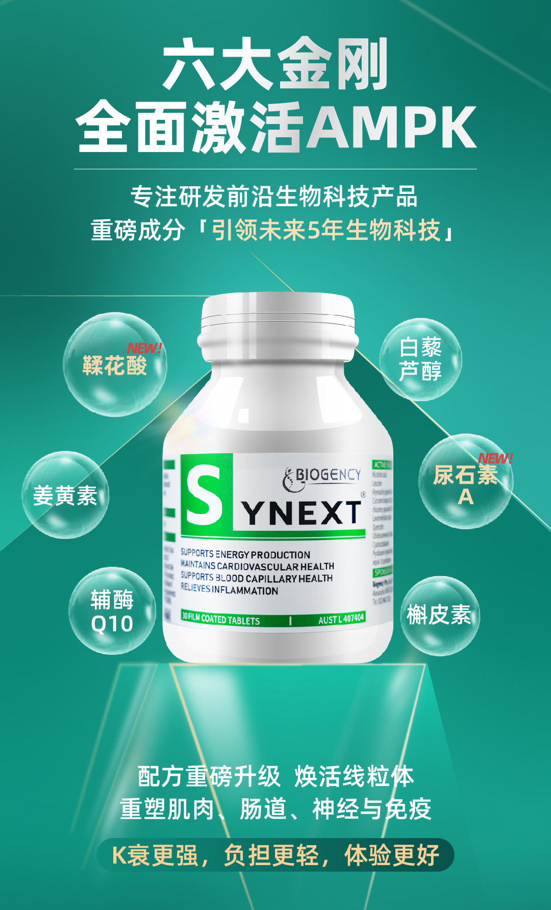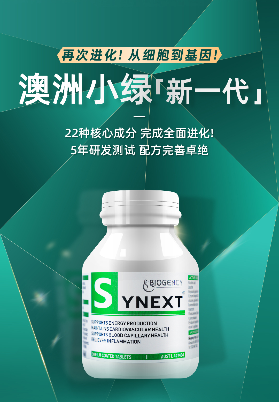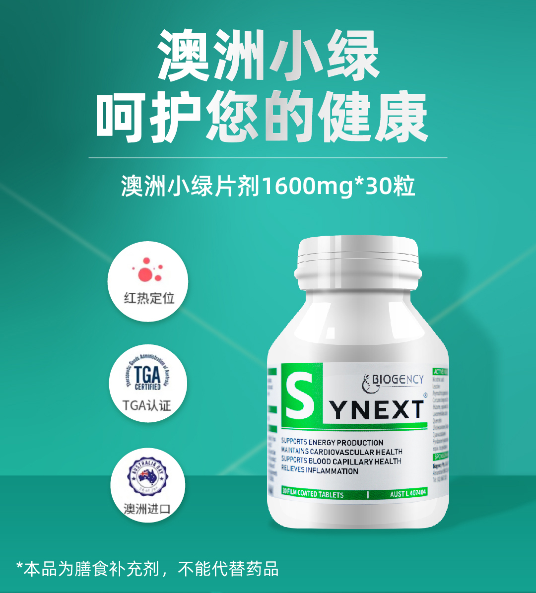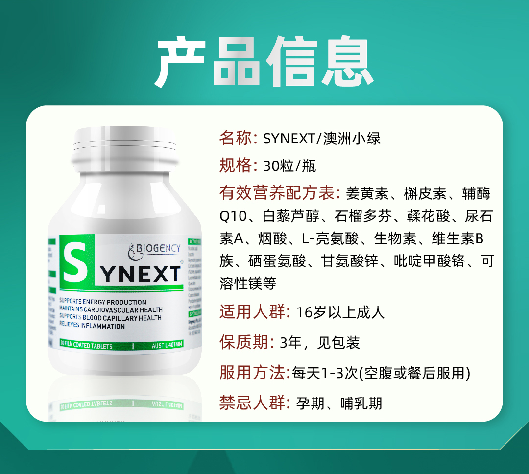 【12瓶特惠】Synext新一代澳洲小绿逆龄秘宝辅酶Q10槲皮素30粒/瓶
