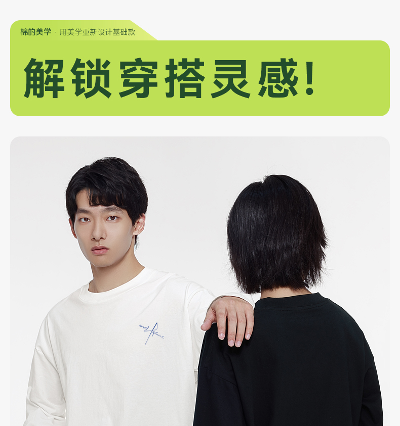 「棉的美学」自由慵懒感艺术印花~秋季新款宽松纯棉打底衫情侣款