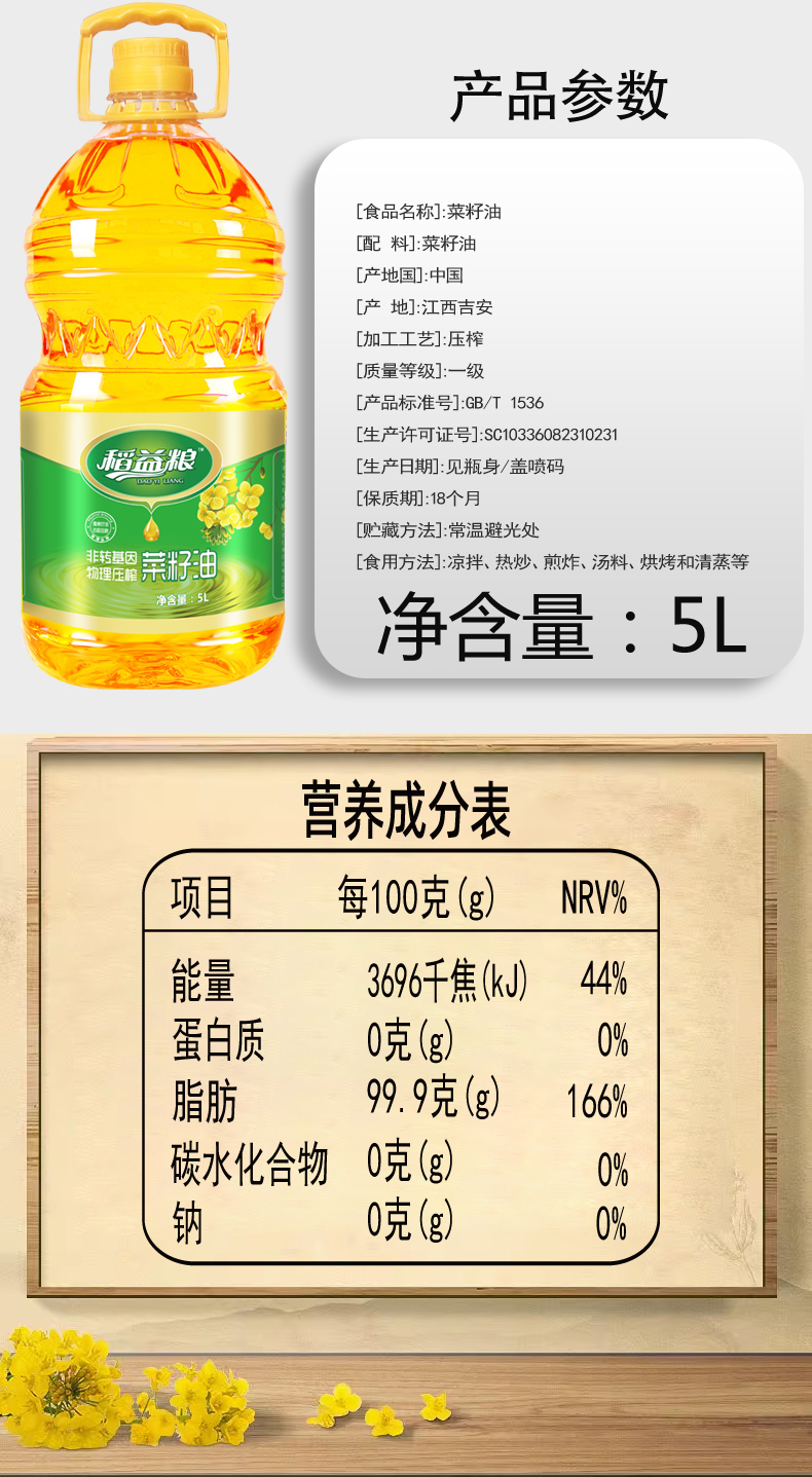 稻益粮压榨一级菜籽油5L