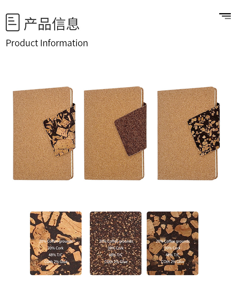 咖啡渣软木搭扣笔记本礼盒 A5商务礼品记事本套装可印logo