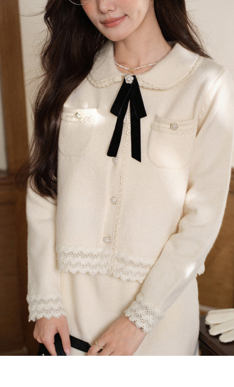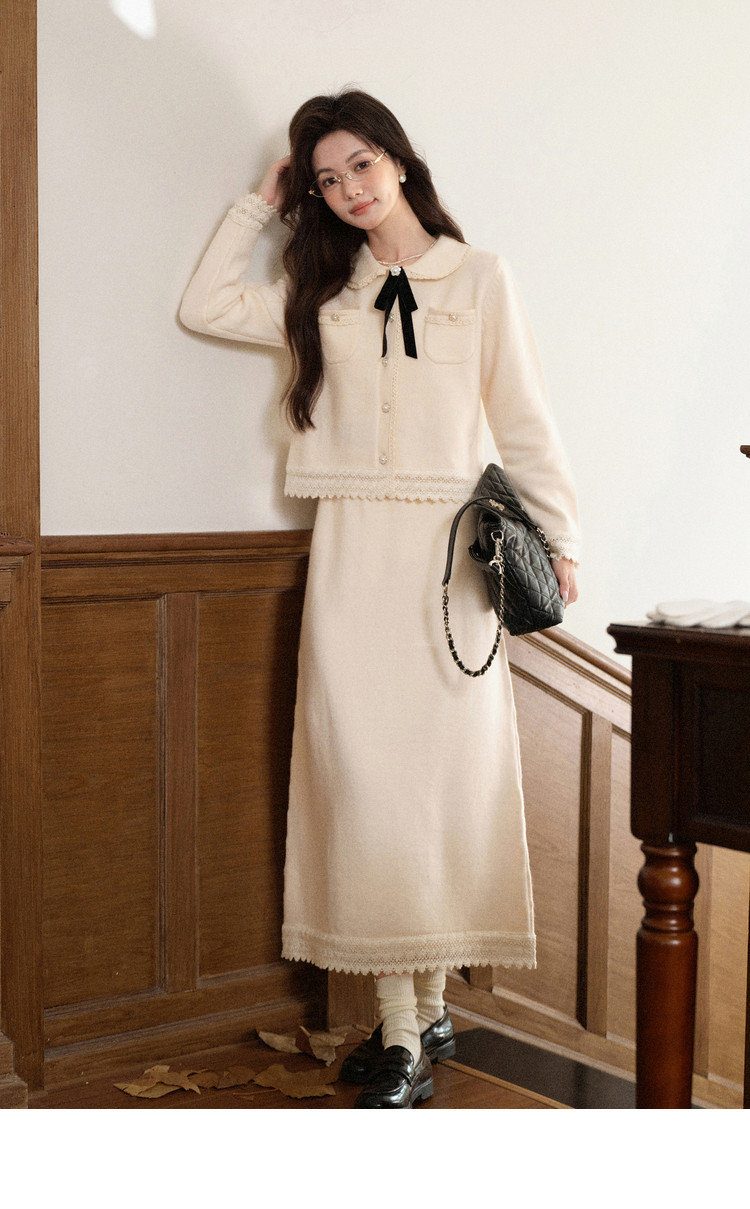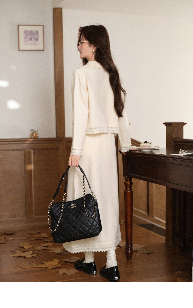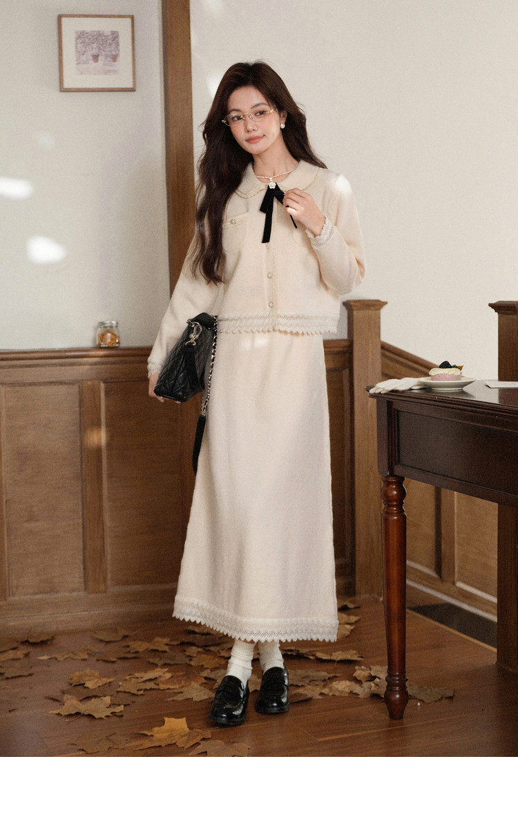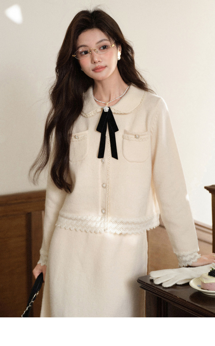 鹿向南「无声浪漫」小香风杏色气质外套高级感毛衣开衫上衣女秋季