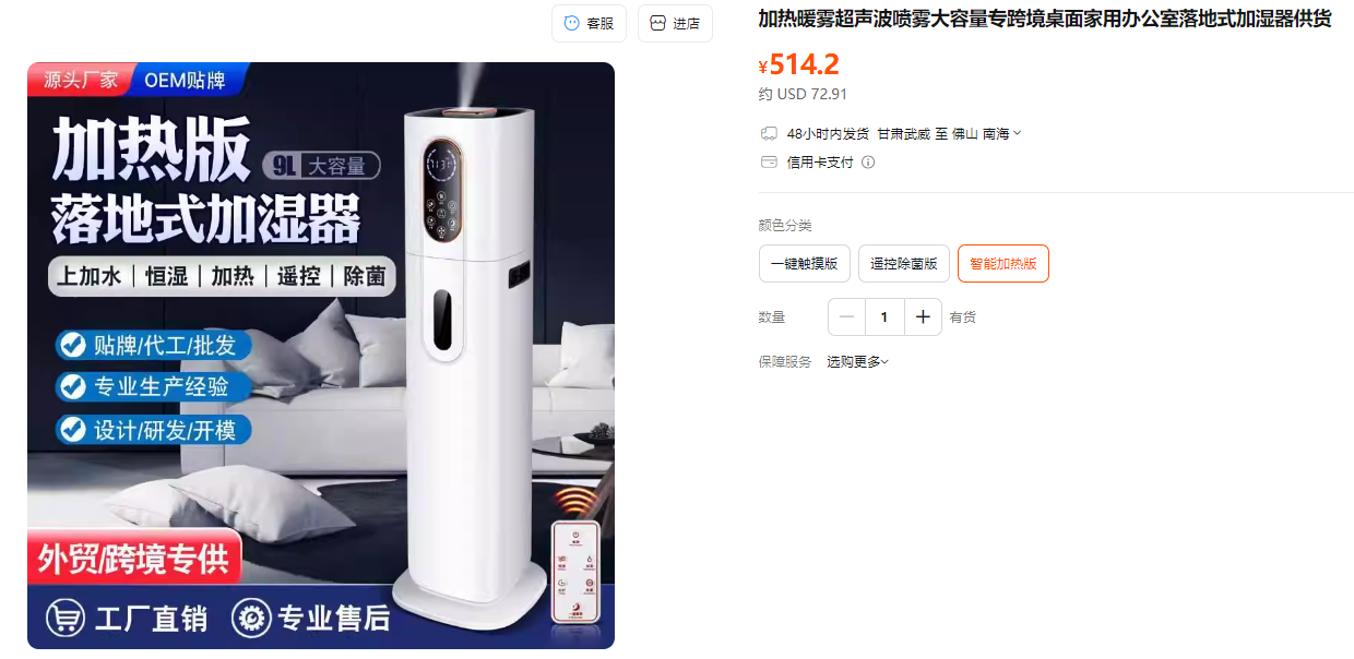 商物 智能杀菌 落地加湿器 超声波加热喷雾功能 卧室加湿器 SP-21