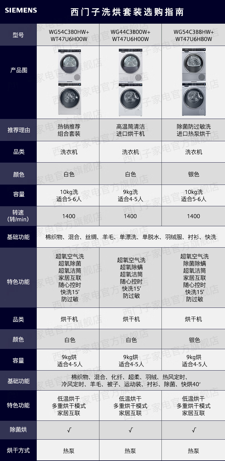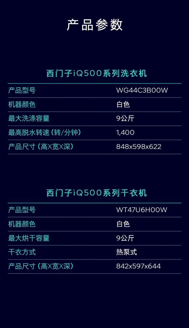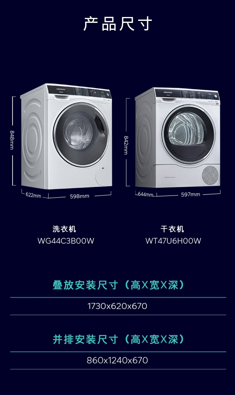 西门子(SIEMENS)洗烘套装 9公斤全自动滚筒洗衣机超氧空气洗 除菌WG44C3B00W+WT47U6H00W菌除螨 热泵烘干机 进口干衣机 WG44C3B00W+WT47U6H00W