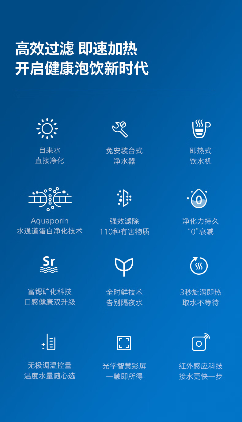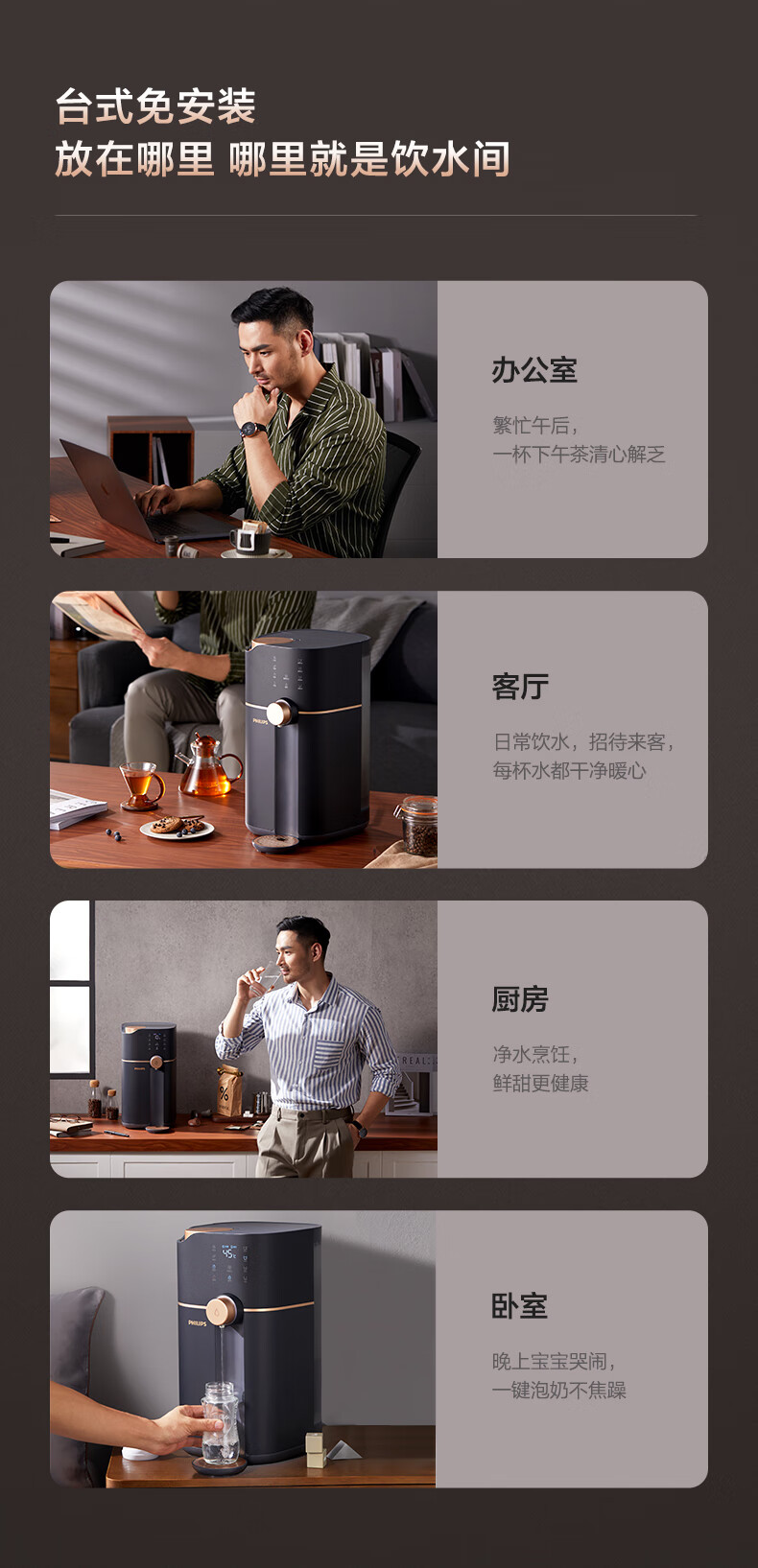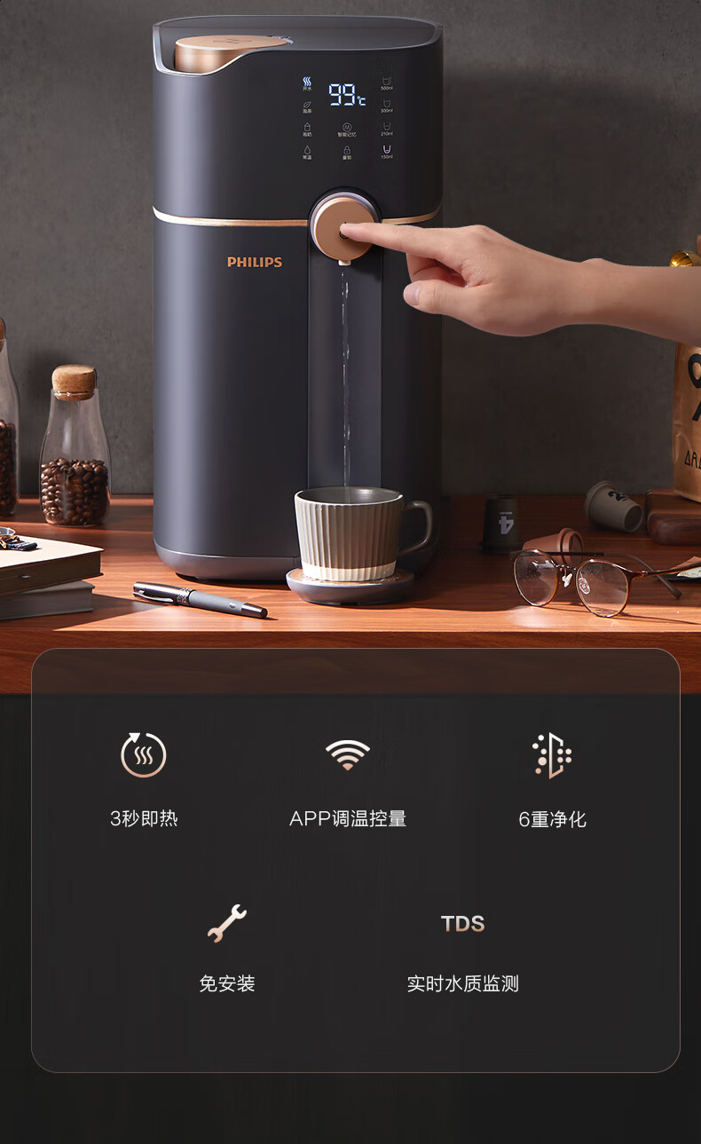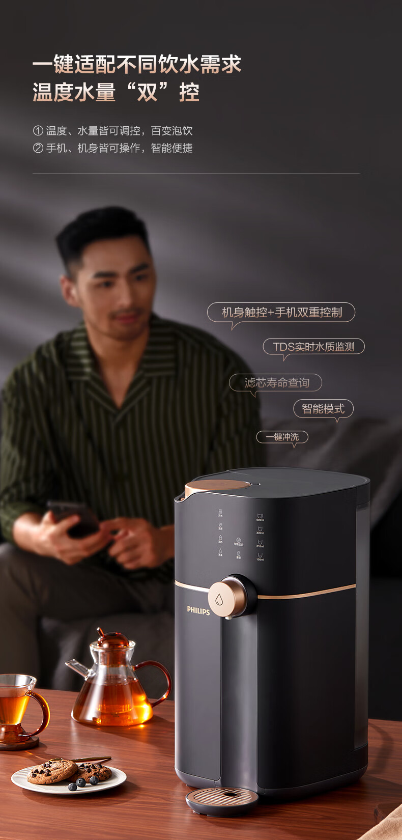 飞利浦(PHILIPS) 净水器家用直饮加热一体机速热即热家用台式免安装净饮机反渗透直饮机