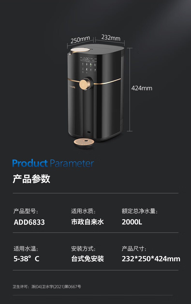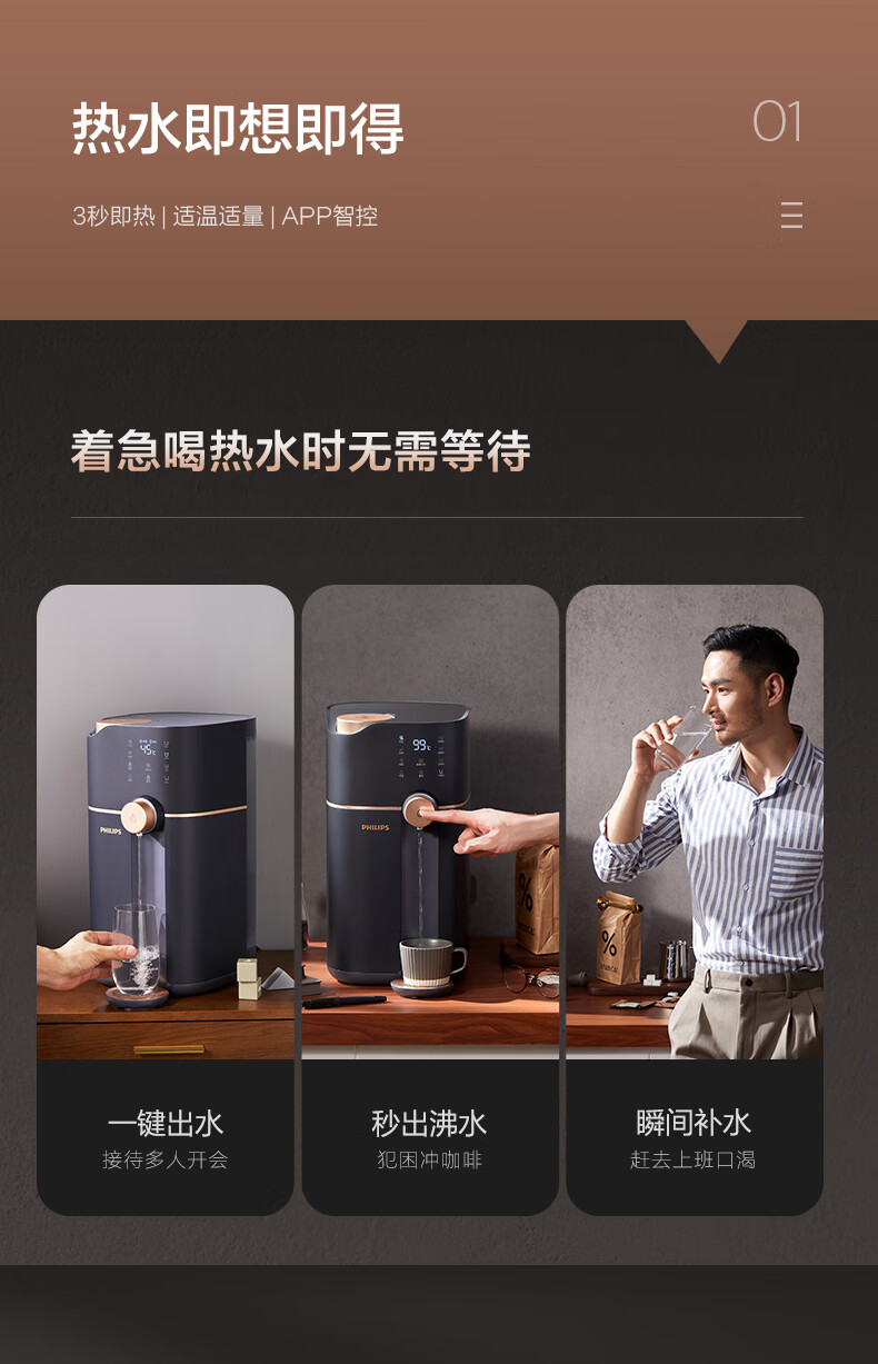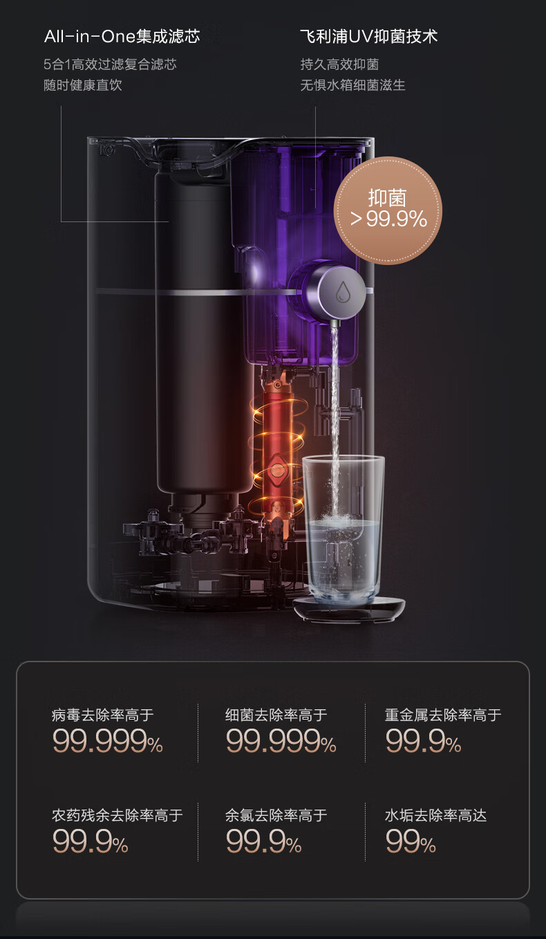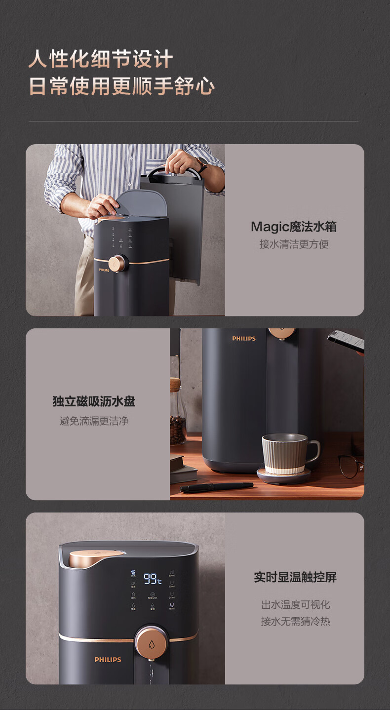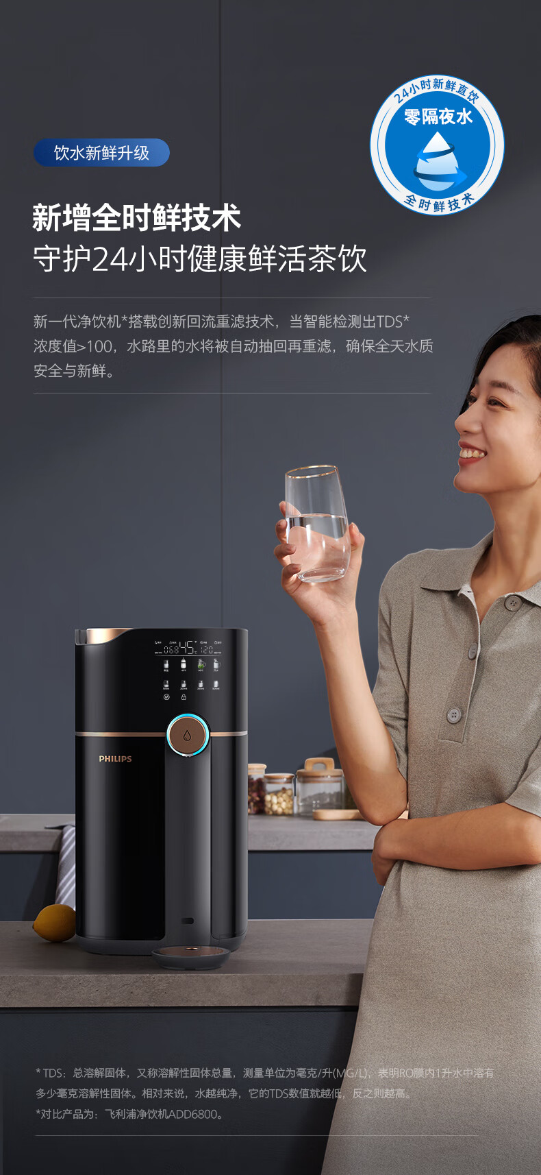 飞利浦(PHILIPS) 净水器家用直饮加热一体机速热即热家用台式免安装净饮机反渗透直饮机