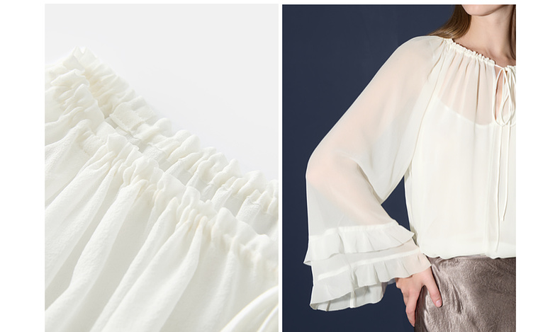 三彩2025夏季新款真丝小衫桑蚕丝圆领系带喇叭袖上衣两件套S