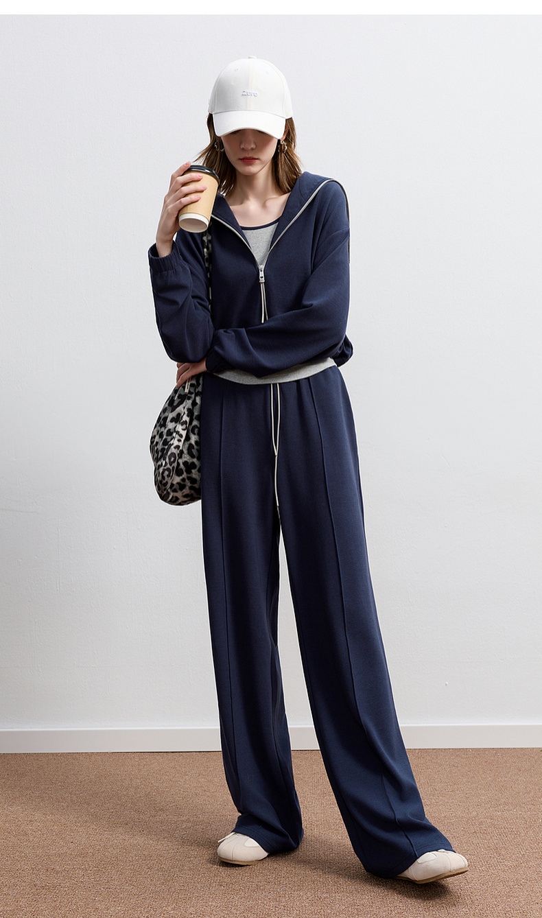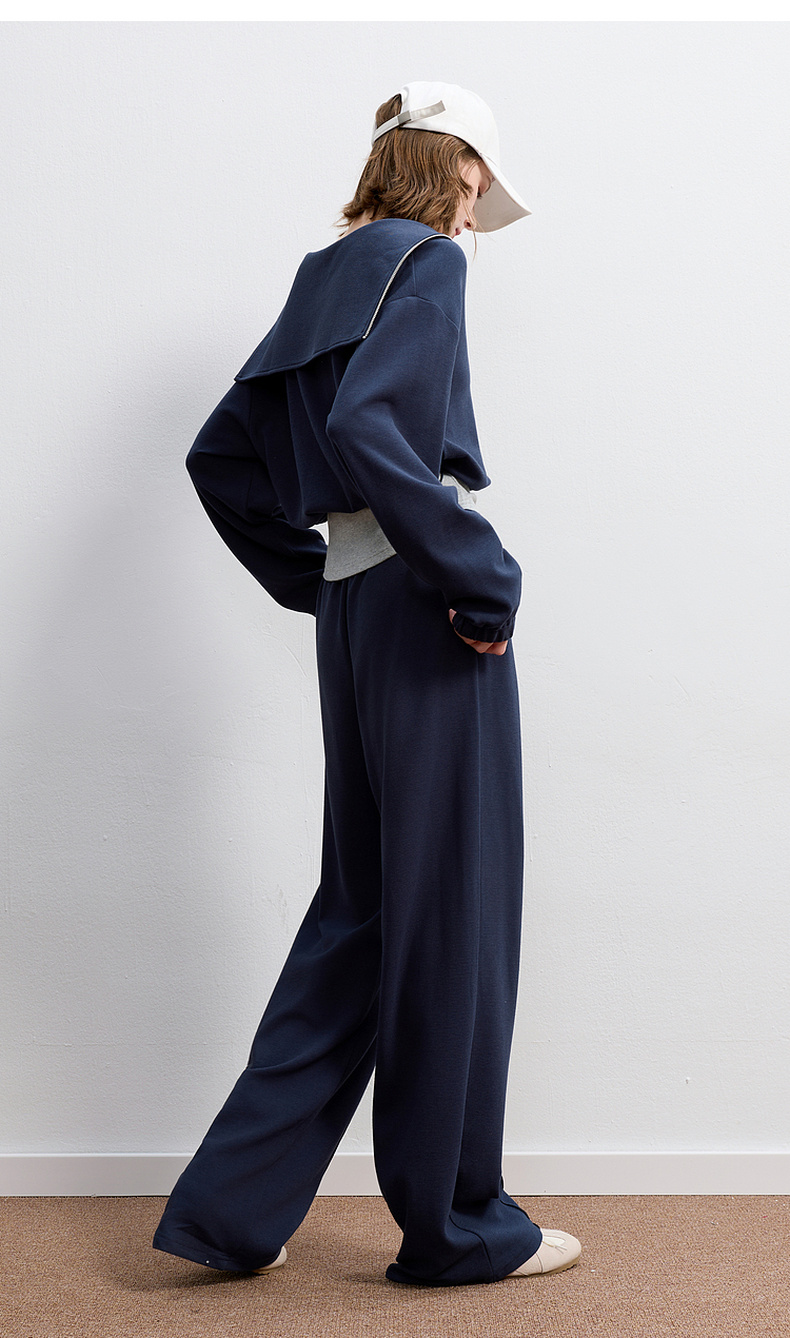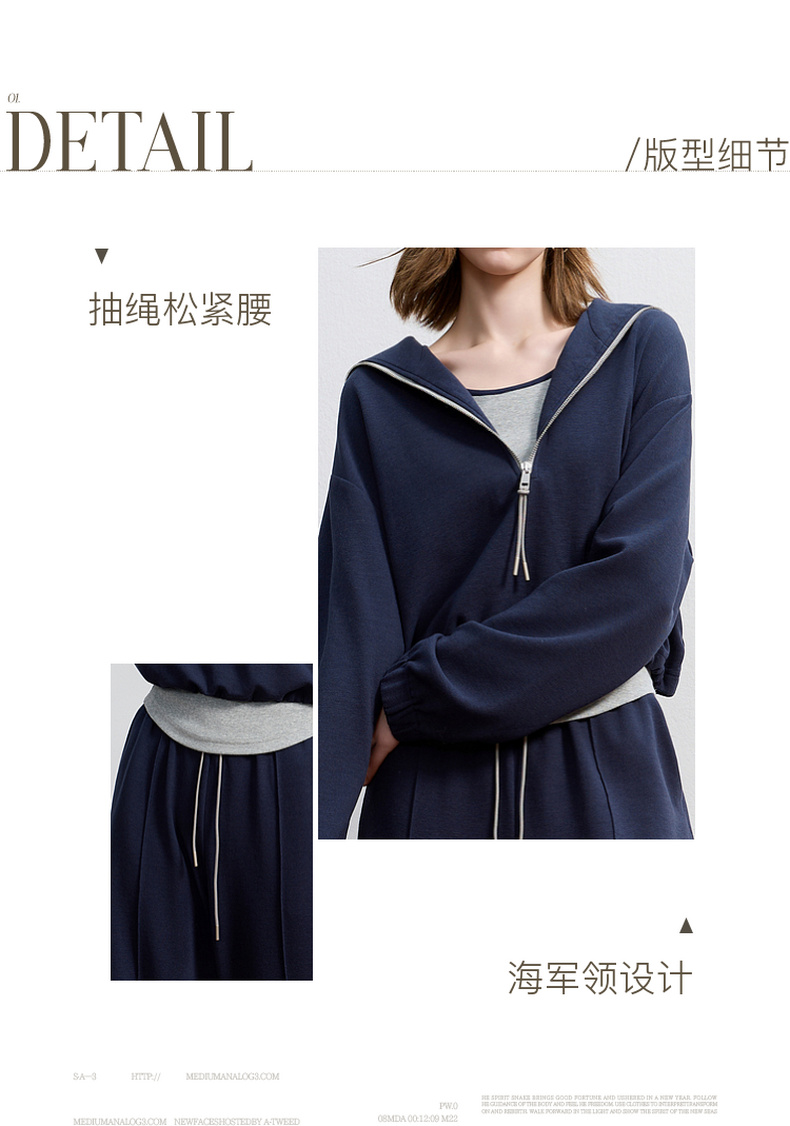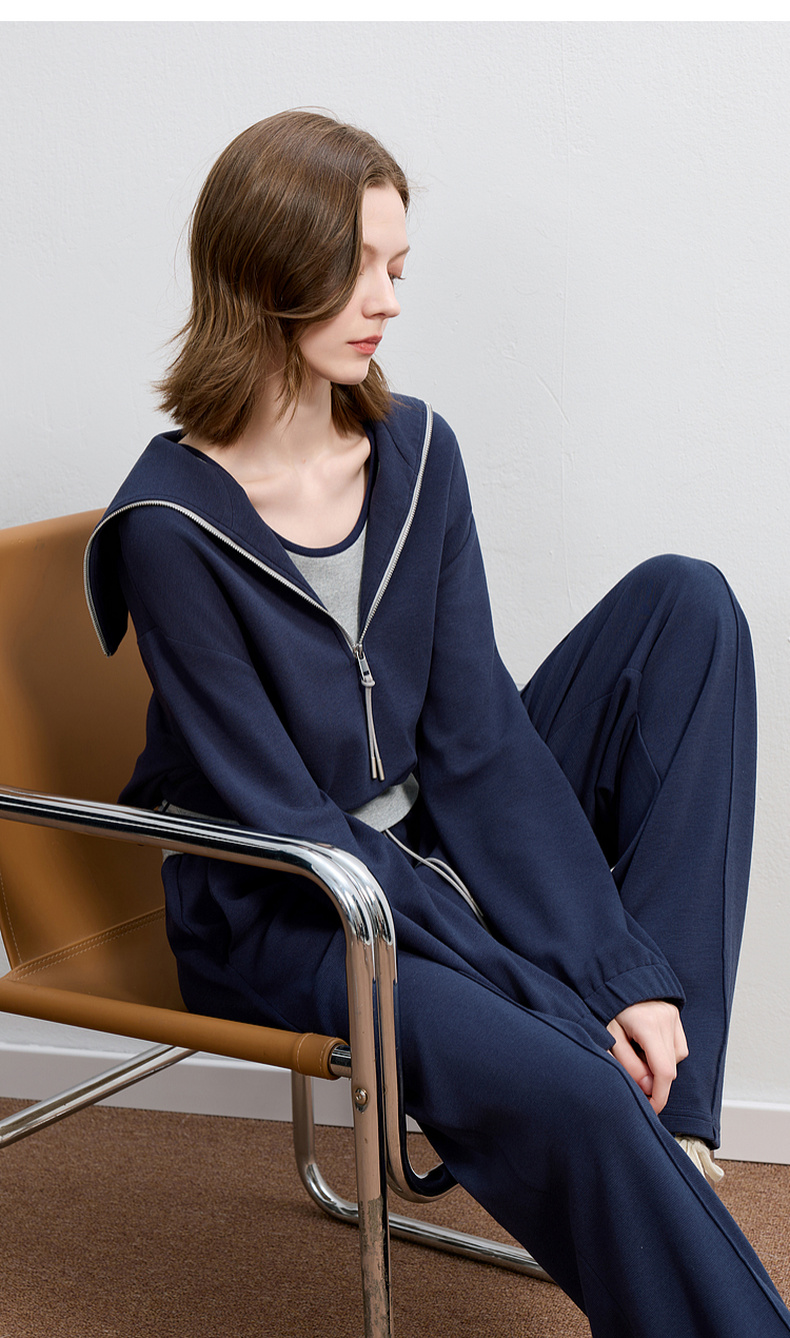 三彩2026春季新款休闲三件套海军领外套T恤直筒裤套装长裤M
