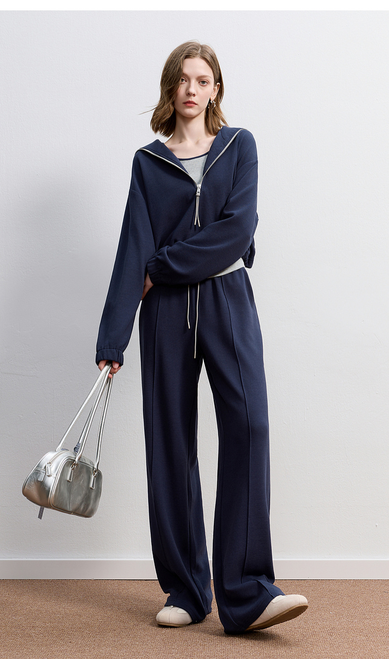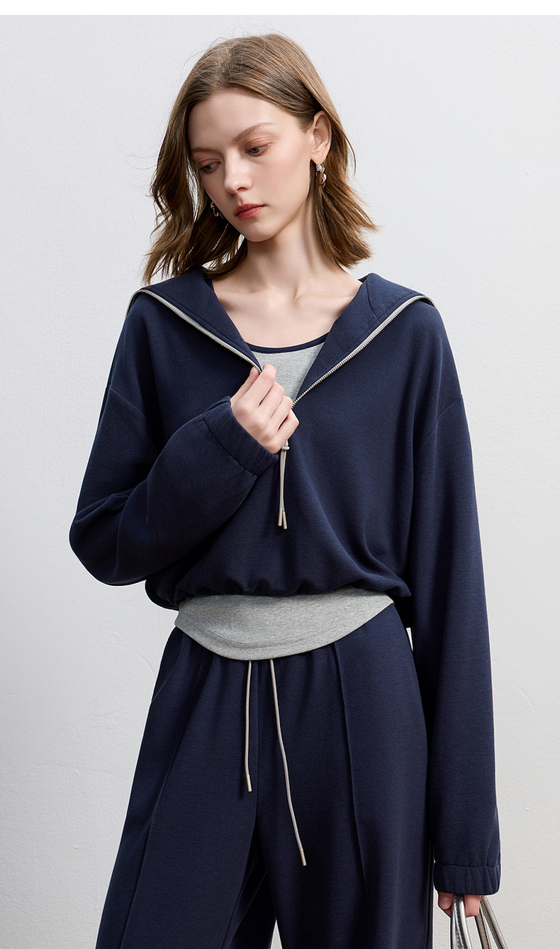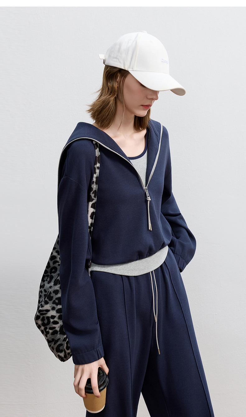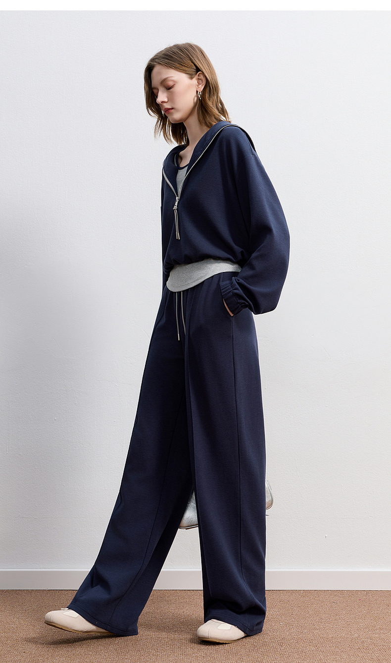 三彩2026春季新款休闲三件套海军领外套T恤直筒裤套装长裤M